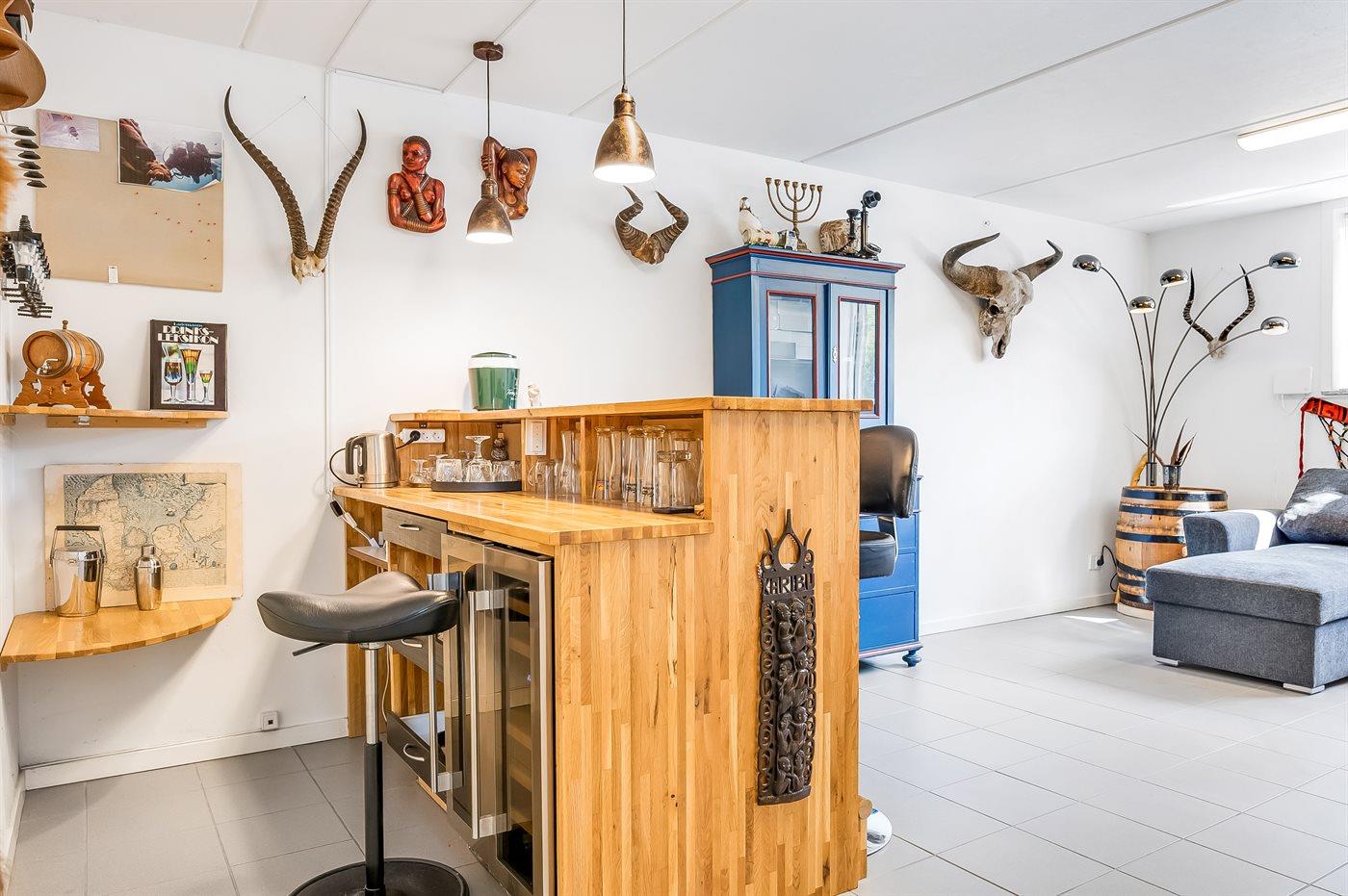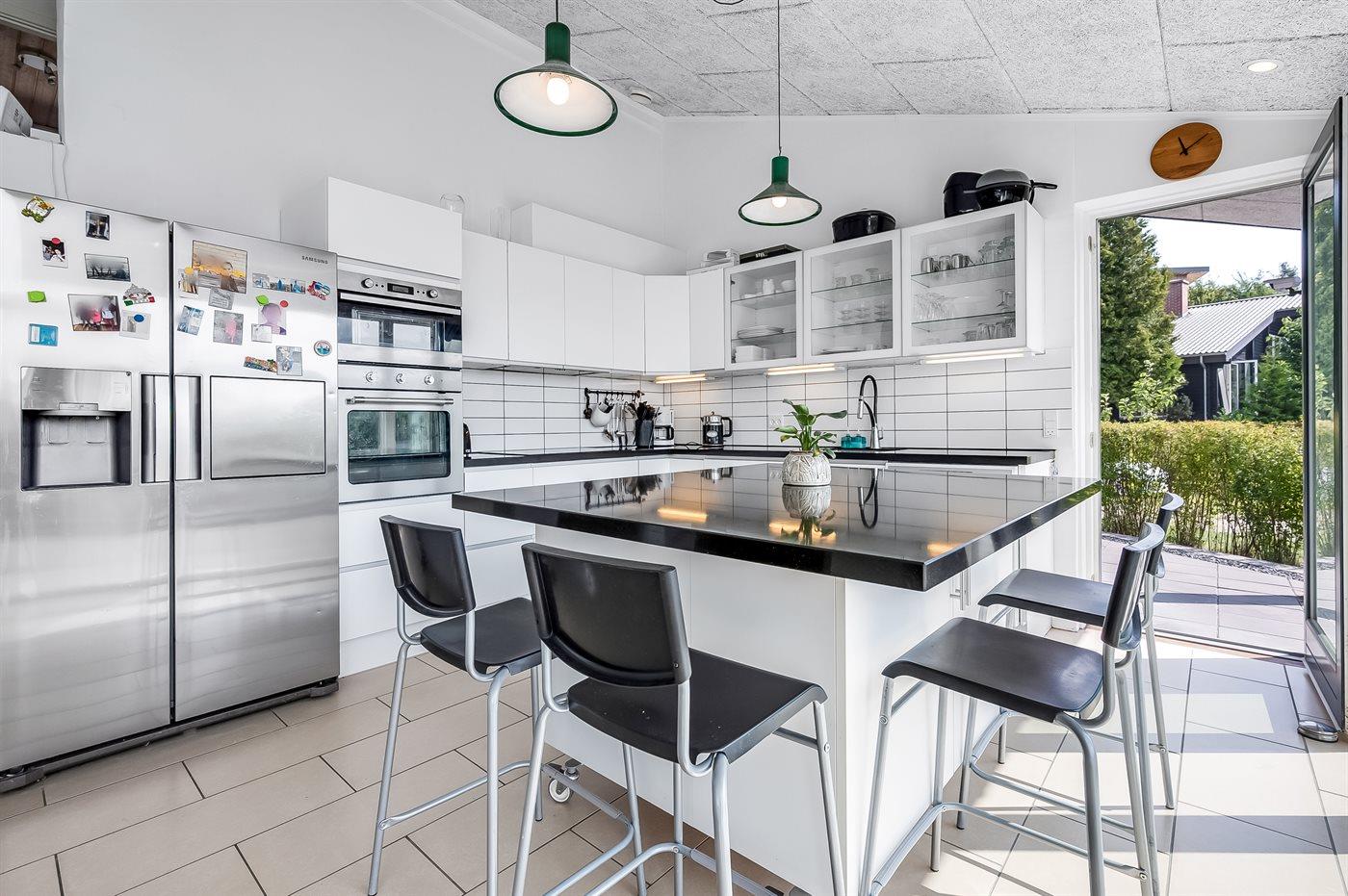 Køkkenet er udstyret med 1 køleskab. Der er 4 induktionskogeplader, varmluftovn, mikrobølgeovn, Airfryer samt opvaskemaskine.