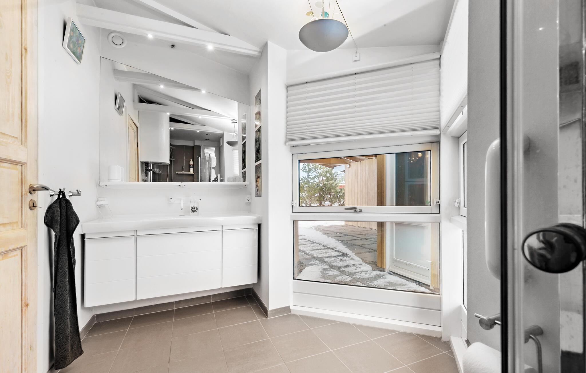 Smid fødderne op i havemøblerne og nyd udsigten! Den storslåede kulisse bliver jeres følgesvend på jeres ferie ved Handrup Strand. I kan også nyde udsigten fra stuen, der får et utrolig flot lysindfald gennem panoramavinduerne. Boligens indretning fremstår både varm, moderne og komfortabel, og ikke mindst i det store fællesrum har I mange hyggeaftener i vente. Nogen kan piske familiens livretter sammen i køkkenet, mens andre læser en god bog i sofaen eller lægger puslespil ved spisebordet.