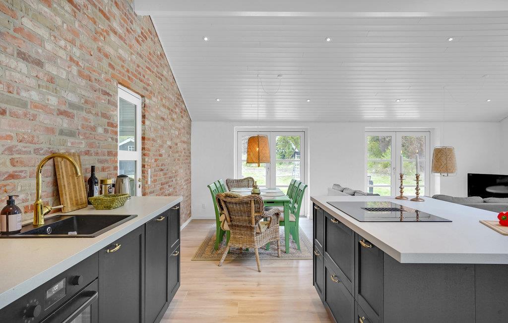 Dette charmerende feriehus består af smarte, moderne løsninger, som tilfører huset en masse karakter og behagelige rammer. Indretningen byder på gode kvalitetsvalg med elementer som rå murstensvægge og lækre materialer. I det store opholdsrum kan I samles omkring måltiderne og slappe af mellem alle jeres oplevelser ude på spændende Djursland. Huset er også indrettet med sauna og jacuzzi, og fra stuen er der udgang til en åben og overdækket terrasse samt grill og liggestole, så der er mange måder at nyde ferien på.