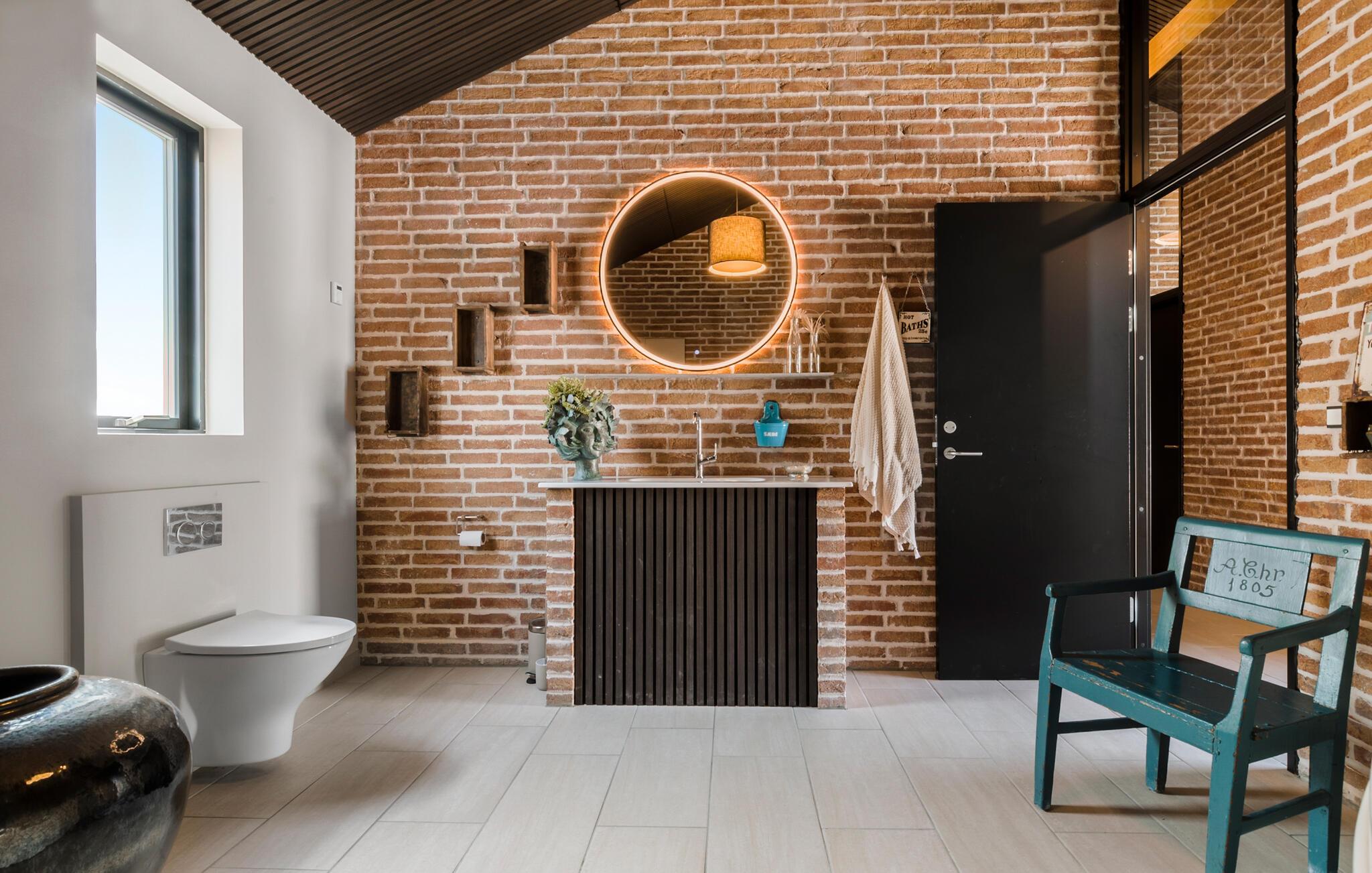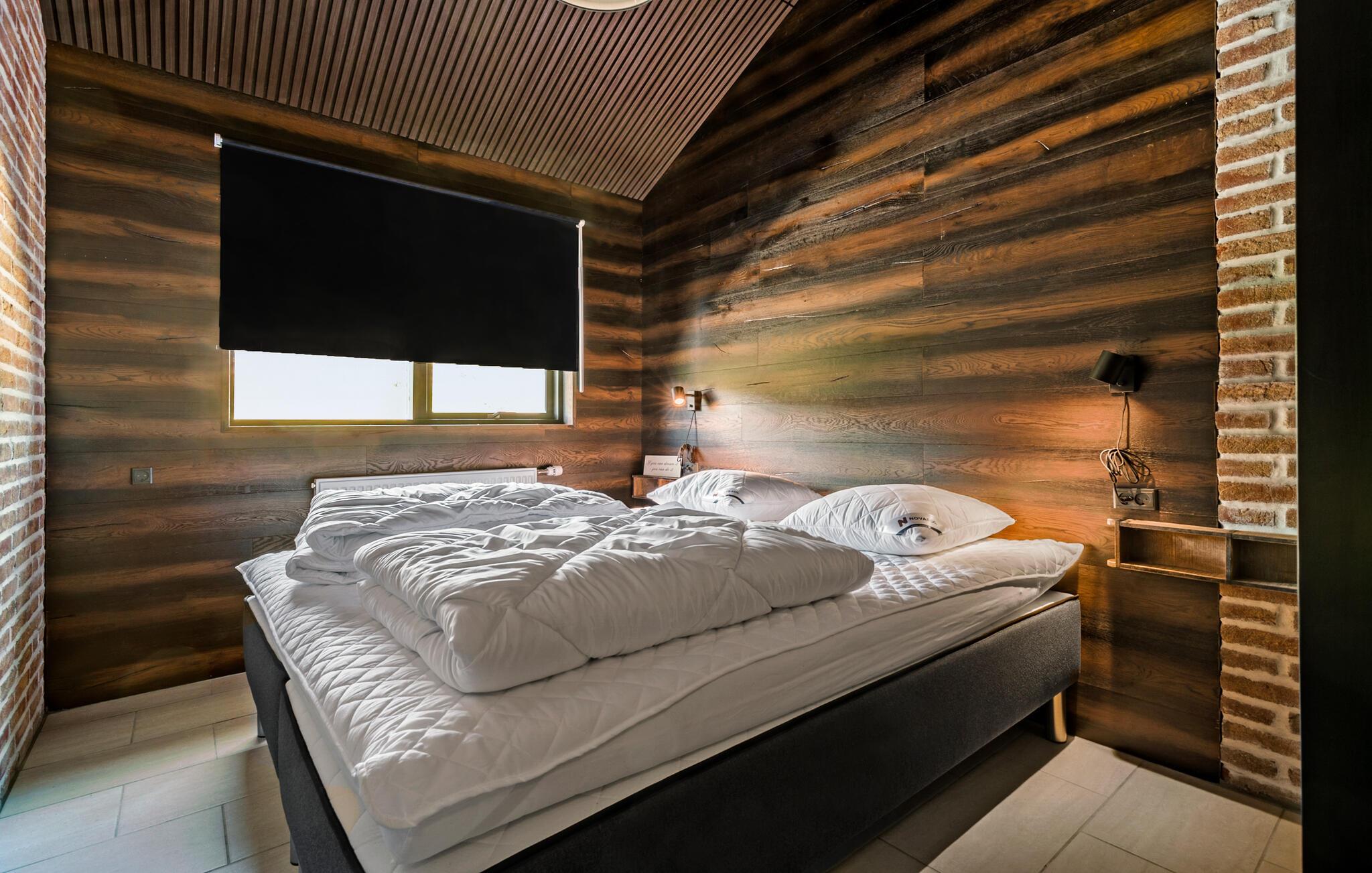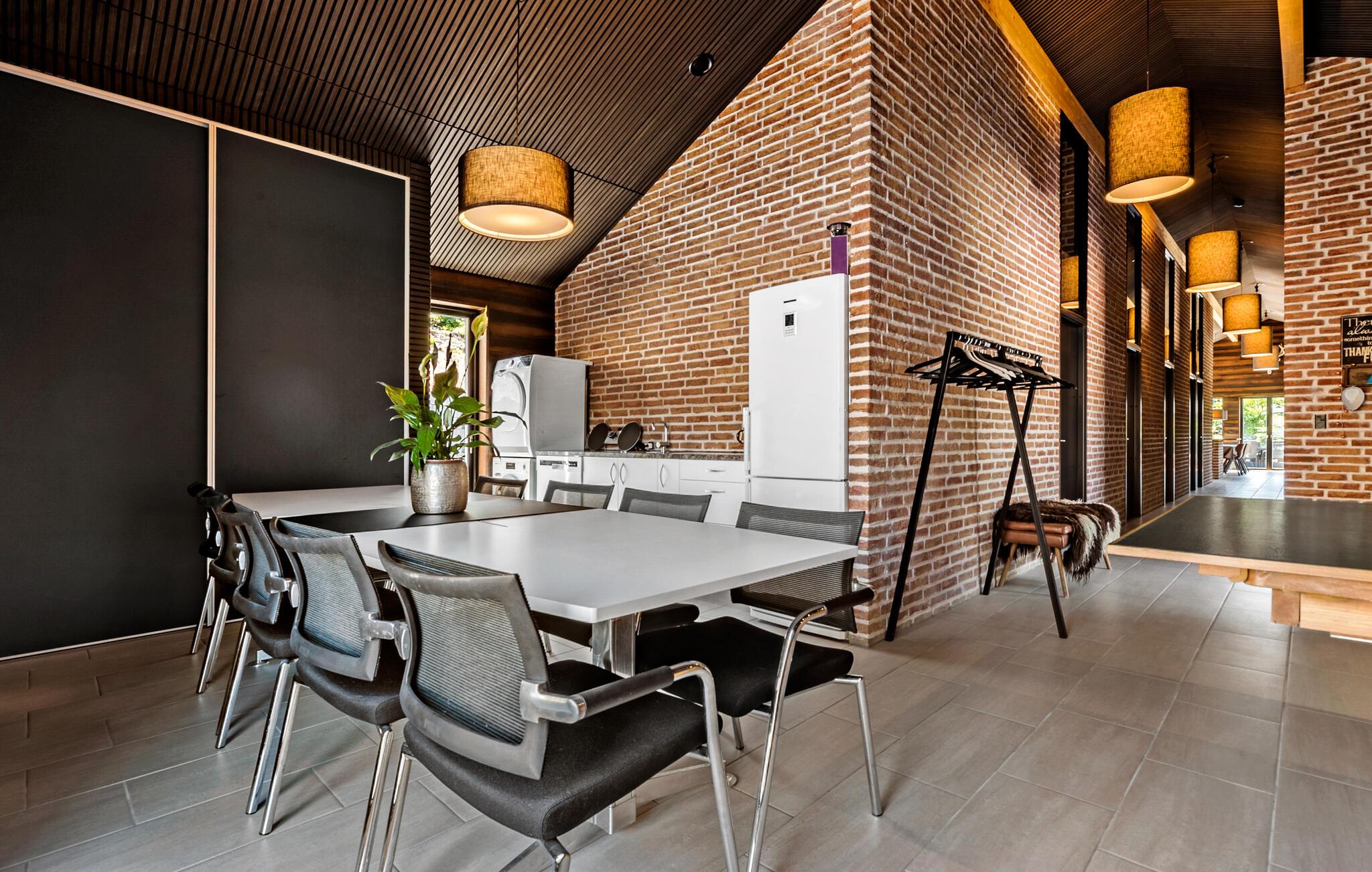 Hvis I er på udkig efter en bolig til årets sammenkomst med den store familie eller en vennefamilie, og hvis I ikke går af vejen for komfort og underholdning på tværs af generationerne, er I kommet til det helt rette sted. Dette flotte og familievenlige hus ligger kun en kort gåtur fra stranden, og indretningen fremtræder virkelig attraktivt med loft til kip, rå murstensvægge og store vinduespartier, der giver den åbne stue et lyst og luftigt udtryk. Hvis vejret viser lidt tænder, kan I tænde op i brændeovnen, der giver varme og stemning til madlavningen i det moderne køkken, mens andre duellerer ved bordtennisbordet eller dækker op ved spisebordene med plads til alle og en dejlig udsigt. Lad en dejlig dag gå på hæld med snacks og en hyggelig filmaften i det komfortable sofaområde, mens I lægger planer for de kommende dage.