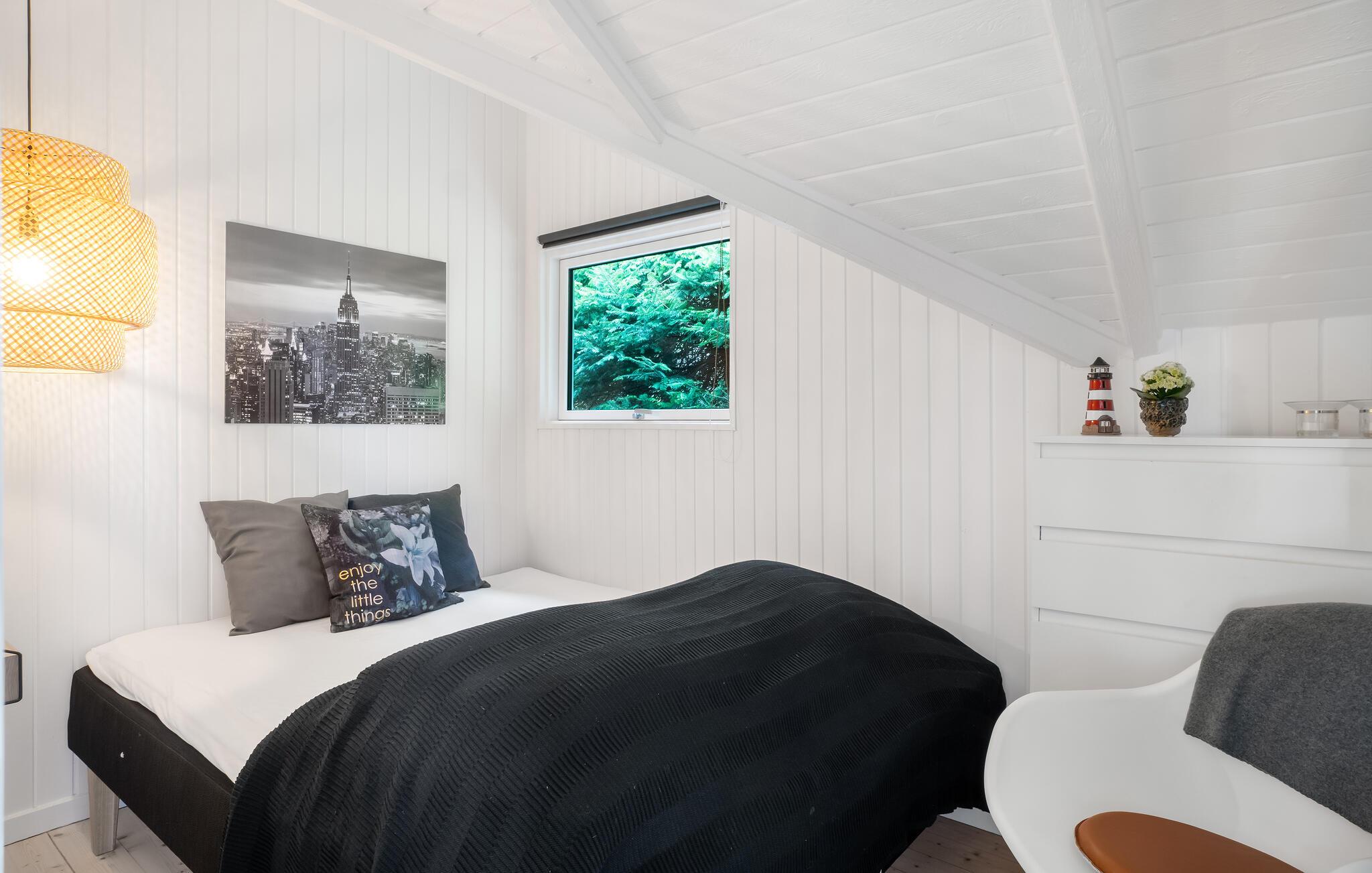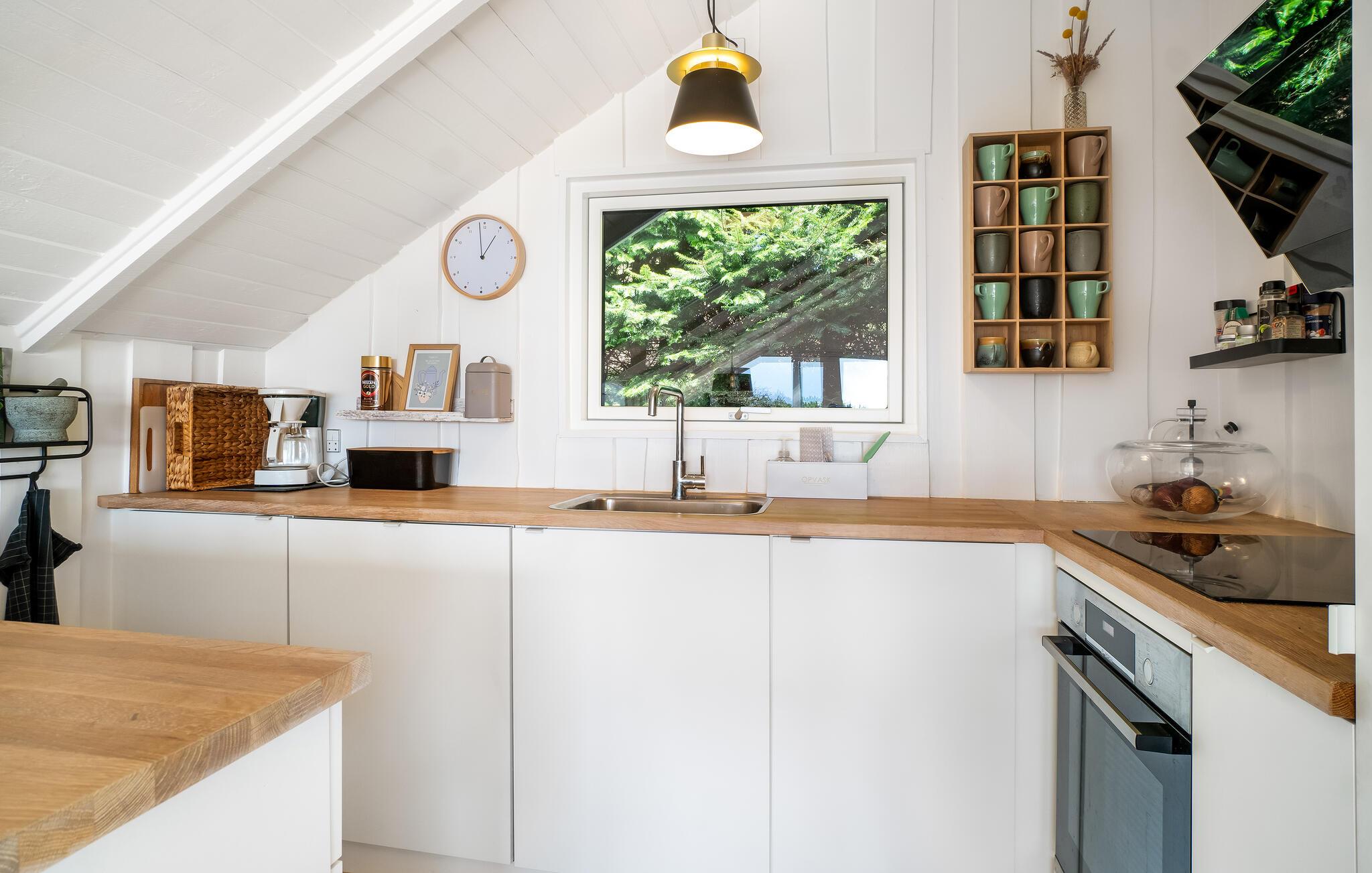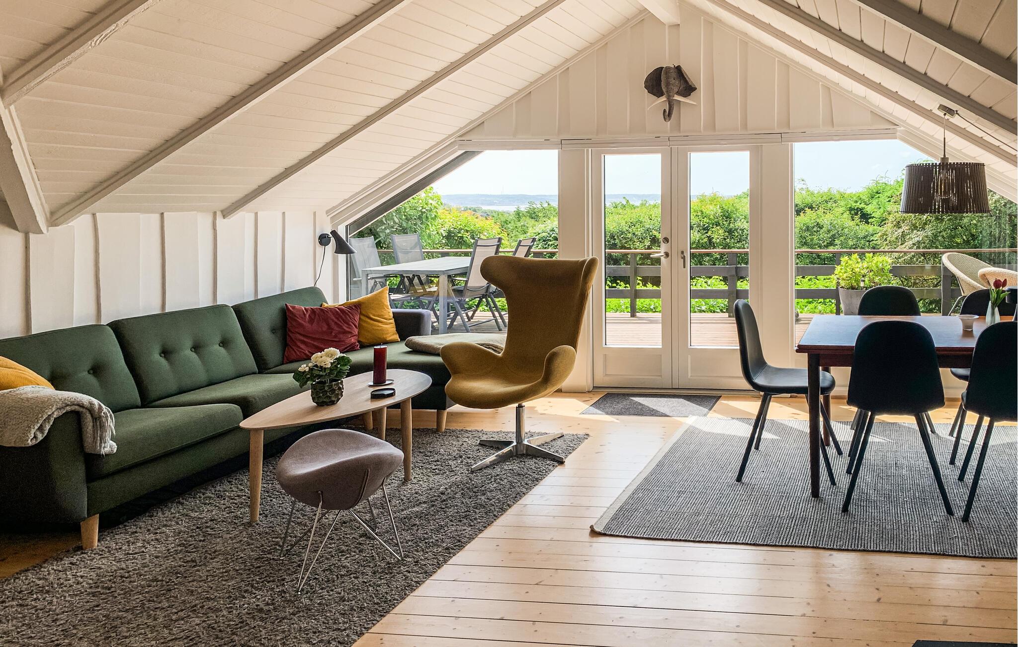 Velkommen til dette idyllisk beliggende hus, hvor alt er designet til at sikre, at I får en uforglemmelig tid sammen. De lyse og komfortable rum lægger op til en afslappende pause fra hverdagen. Husets store vinduer giver en vidunderlig udsigt over den omkringliggende natur. Spis her med en vidunderlig udsigt udendørs. Sæt jer til rette i den bløde sofa efter en begivenhedsrig dag og tal om alle de bedste oplevelser, mens ilden blusser i brændeovnen.