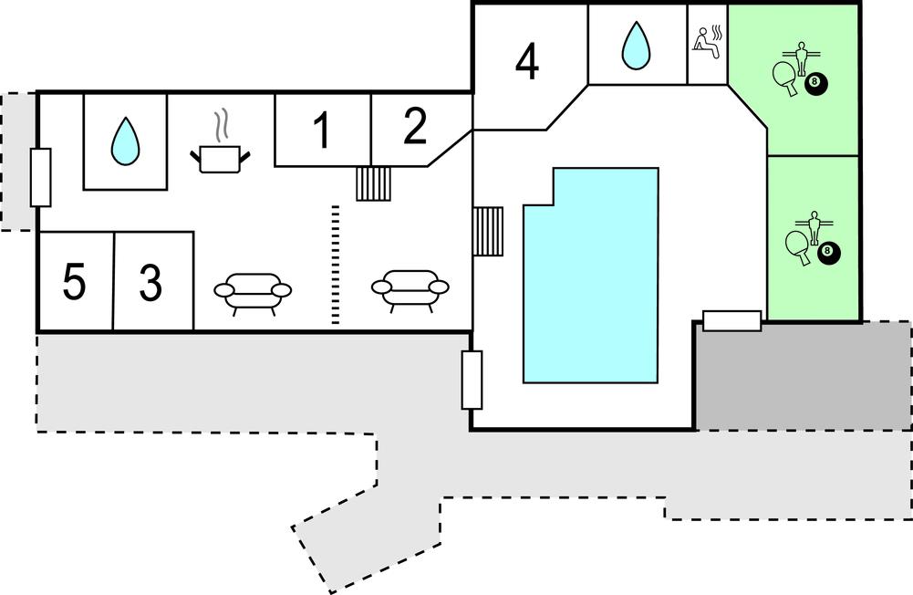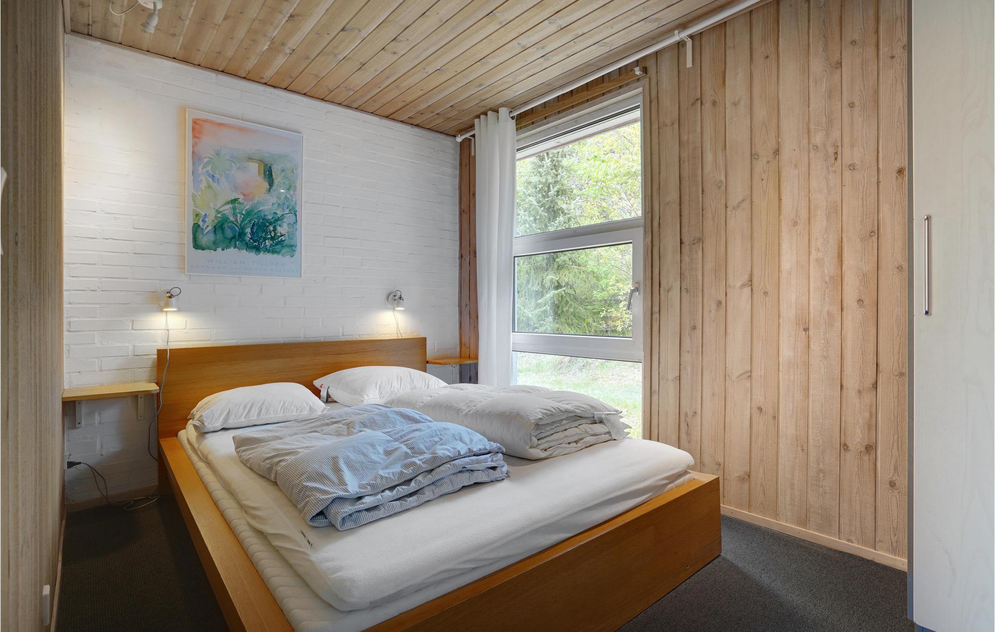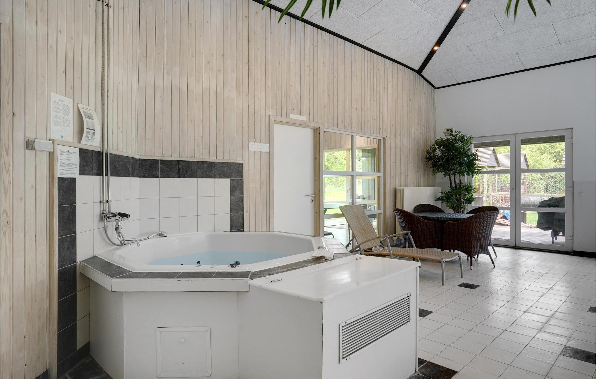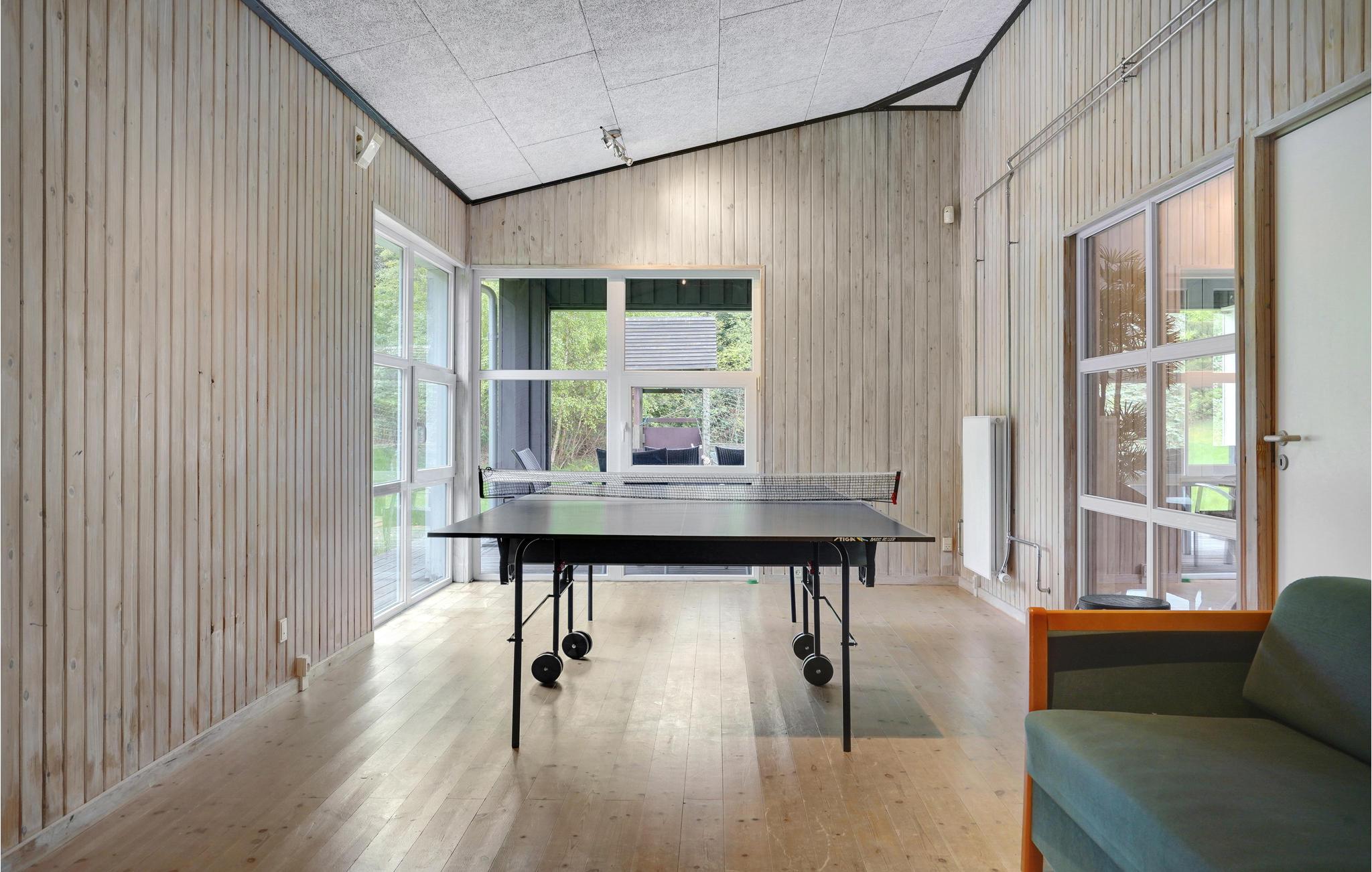 Et virkeligt spændende feriehus. Er I til aktiviteter og en dejlig svømmetur i poolen, så er huset her absolut et godt valg. I det store aktivitetsrum findes der både poolbord, fodboldspil, bordtennis og dart. Feriehuset er beliggende i et stort og skønt naturområde i de flotte Handrup Bakker. Til huset hører en stor grund med masser af plads til boldspil og leg. Huset er med sin størrelse og indretning velegnet til flere familier med det meget stort poolrum, hvor der er plads til både de 'vandglade' og til at sidde og hygge sig sammen. Sydvestvendt terrasse hvor solen kan nydes det meste af dagen. Al opvarmning af såvel huset som poolen foregår meget energi- og miljøvenligt med et jordvarmeanlæg. Brænde kan købes ved huset.