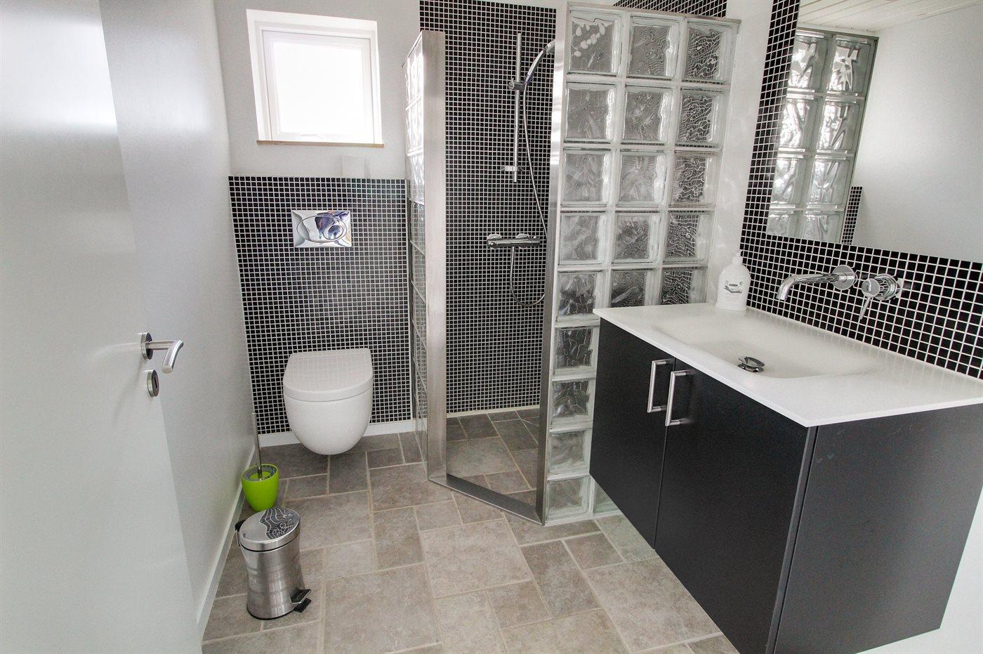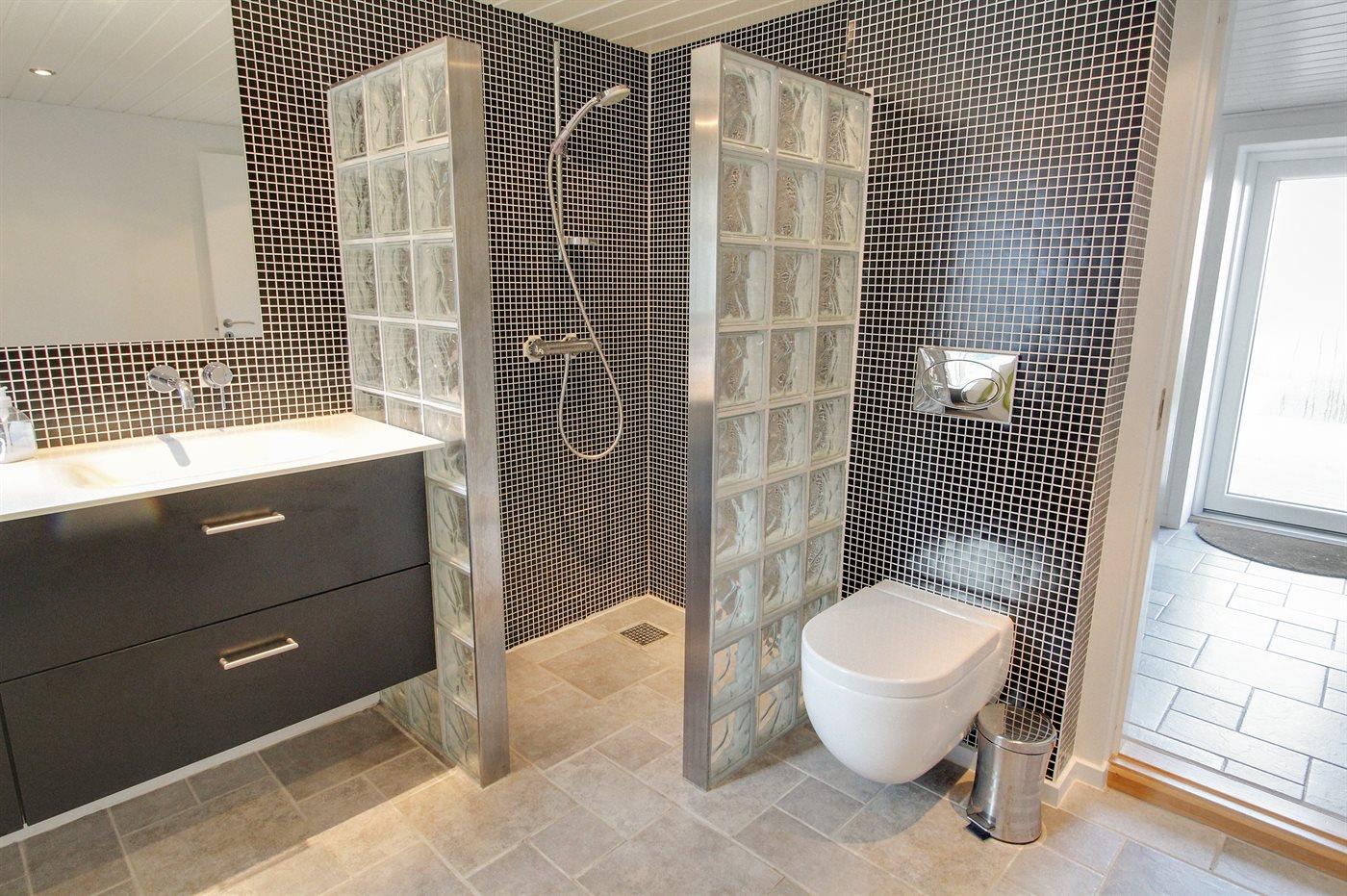 Der er 2 badeværelser med bruseniche og 2 toiletter. Der er gulvvarme på 2 badeværelser.. Badekar.