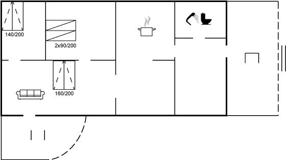 Der er i alt 2 soveværelser. Sovepladserne fordeler sig på: 2 sovepladser i enkeltsenge. 4 sovepladser i sovesofa (dobbelt). 2 af disse sovepladser befinder sig i stuen. Derudover er der 1 stk. barneseng.
