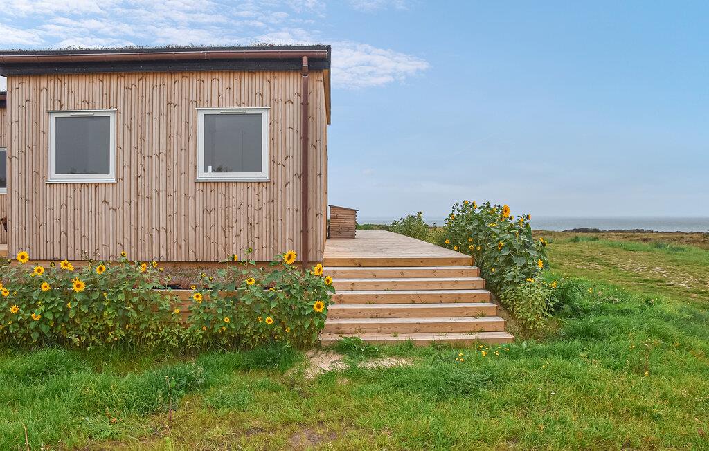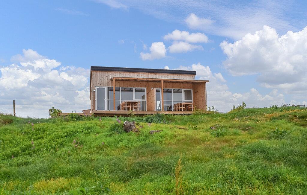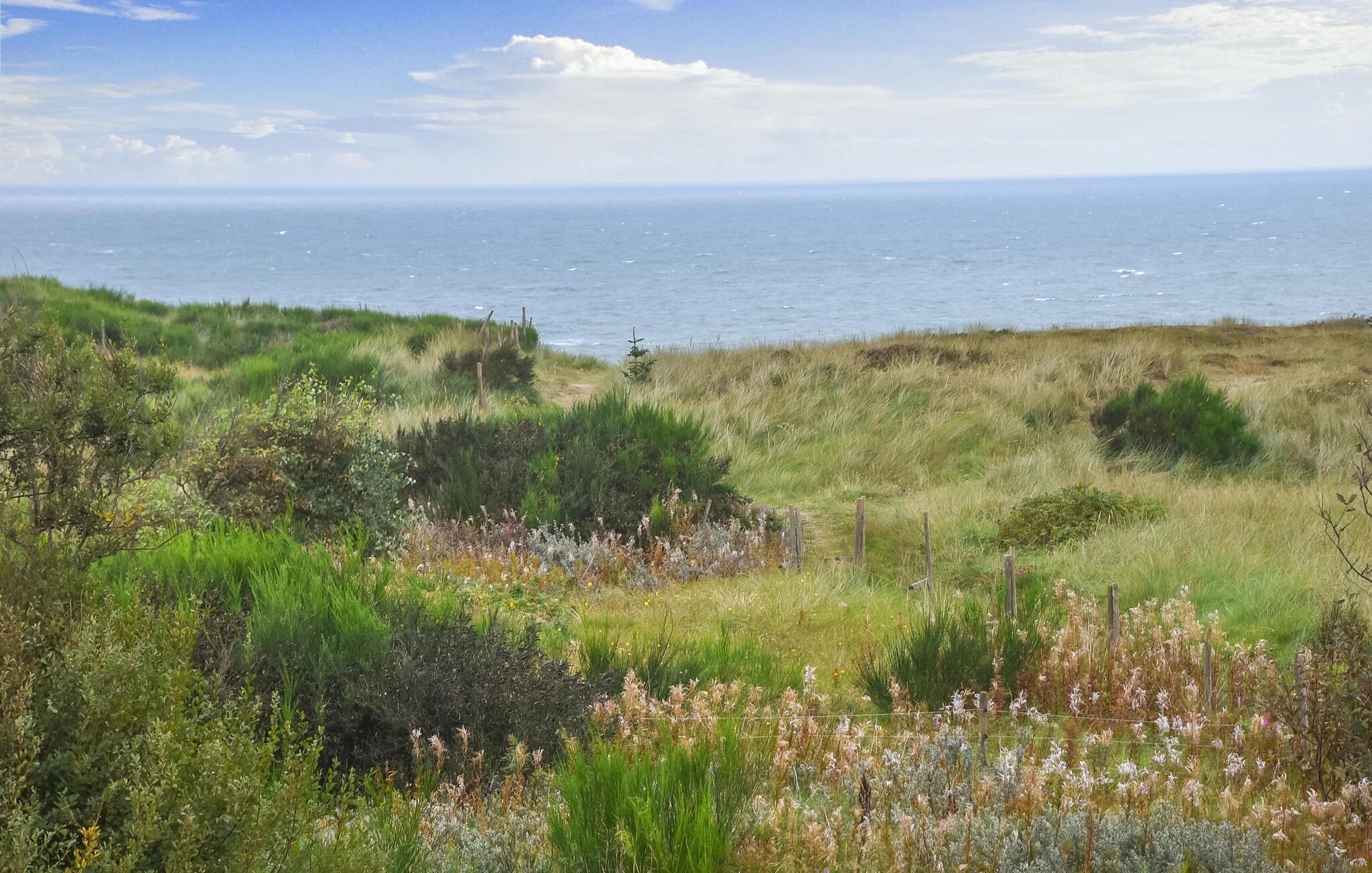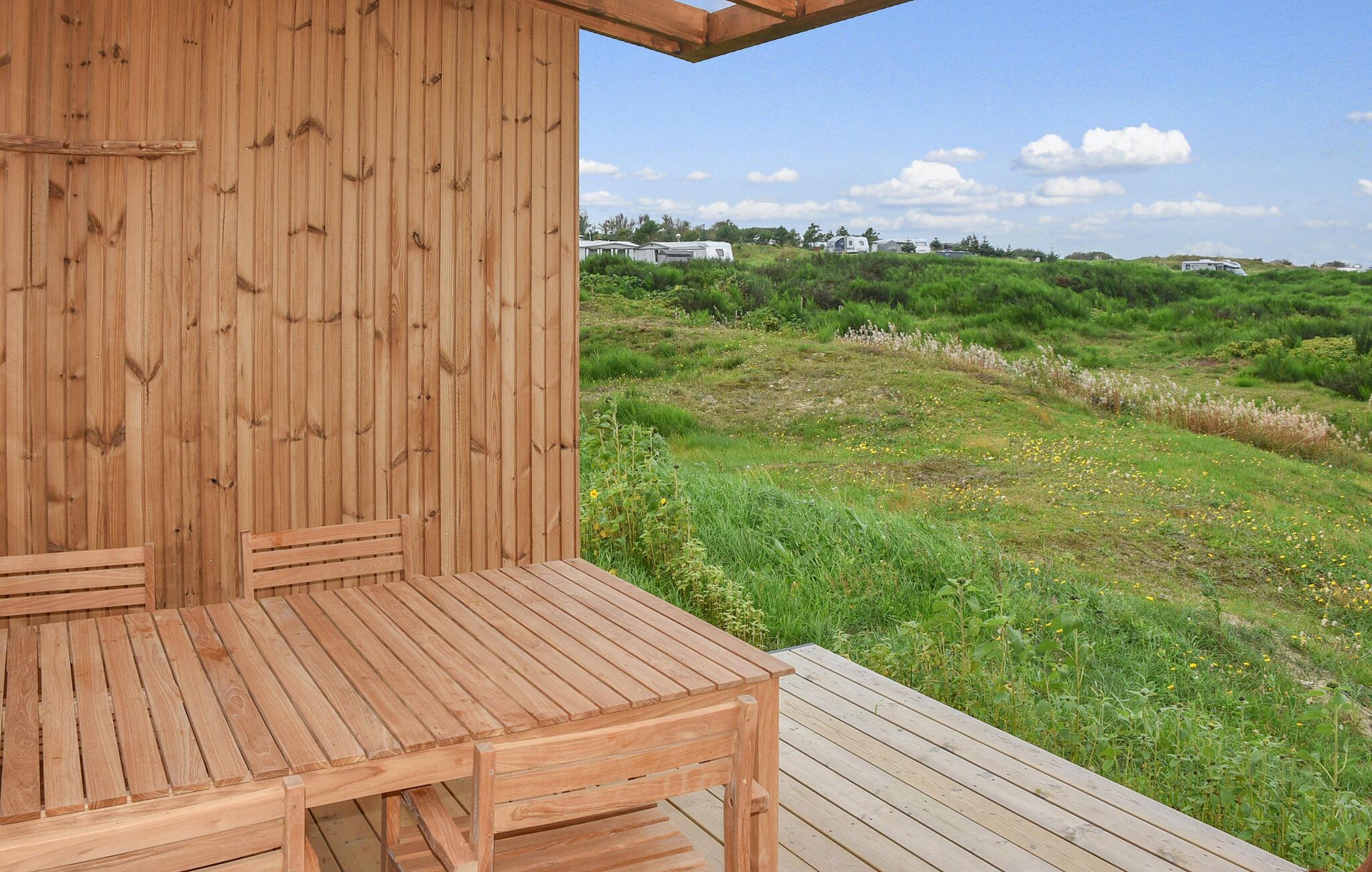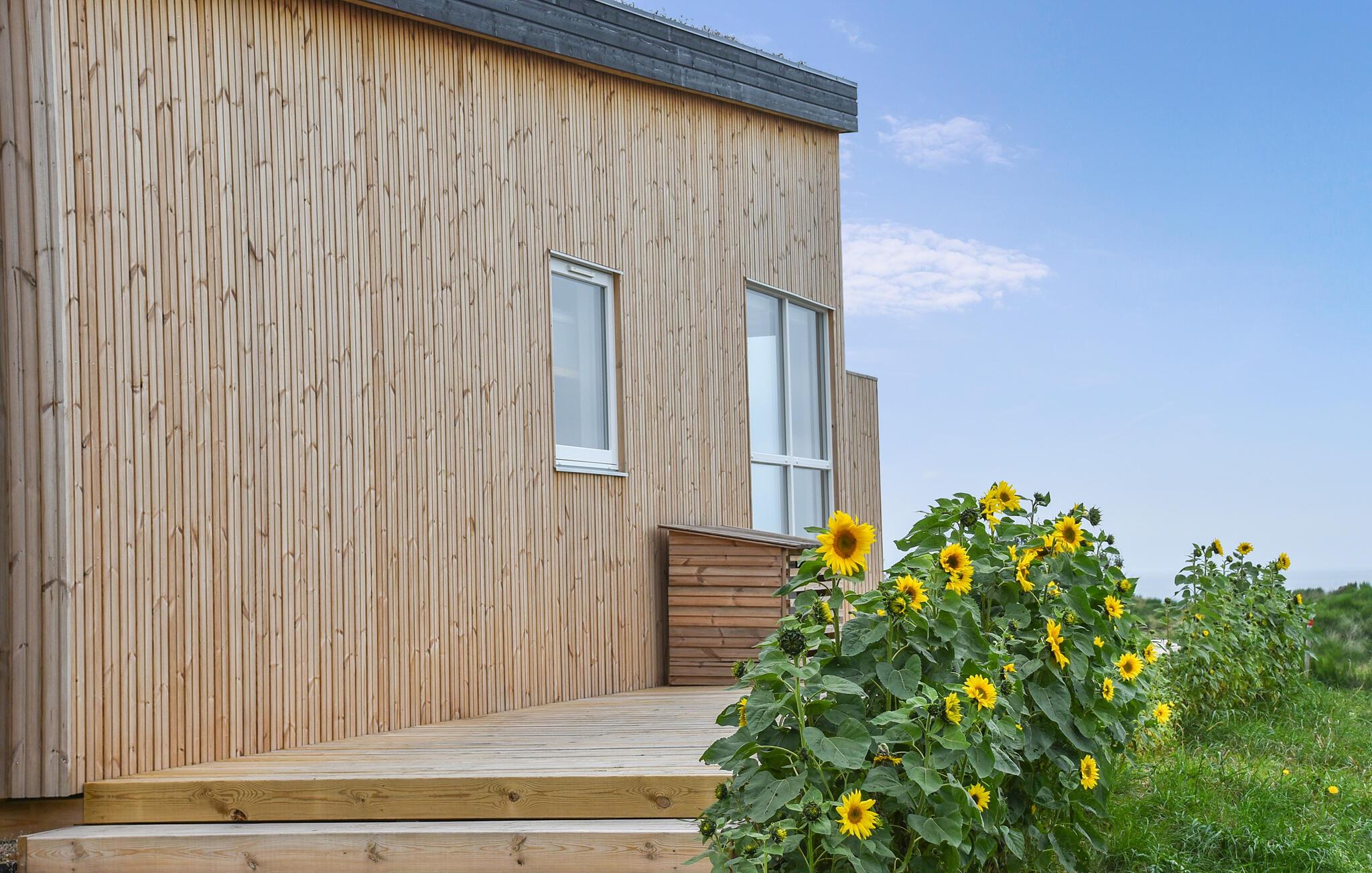 Nyd en fredelig ferie i et moderne træhus med panoramaudsigt over Vesterhavet og kun 300 meter fra stranden.