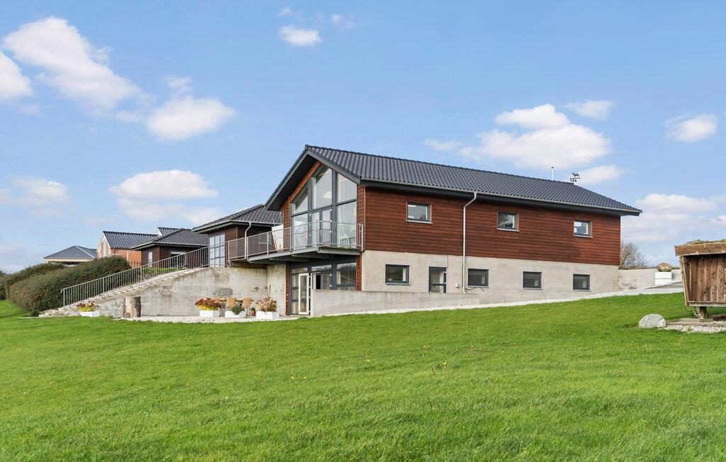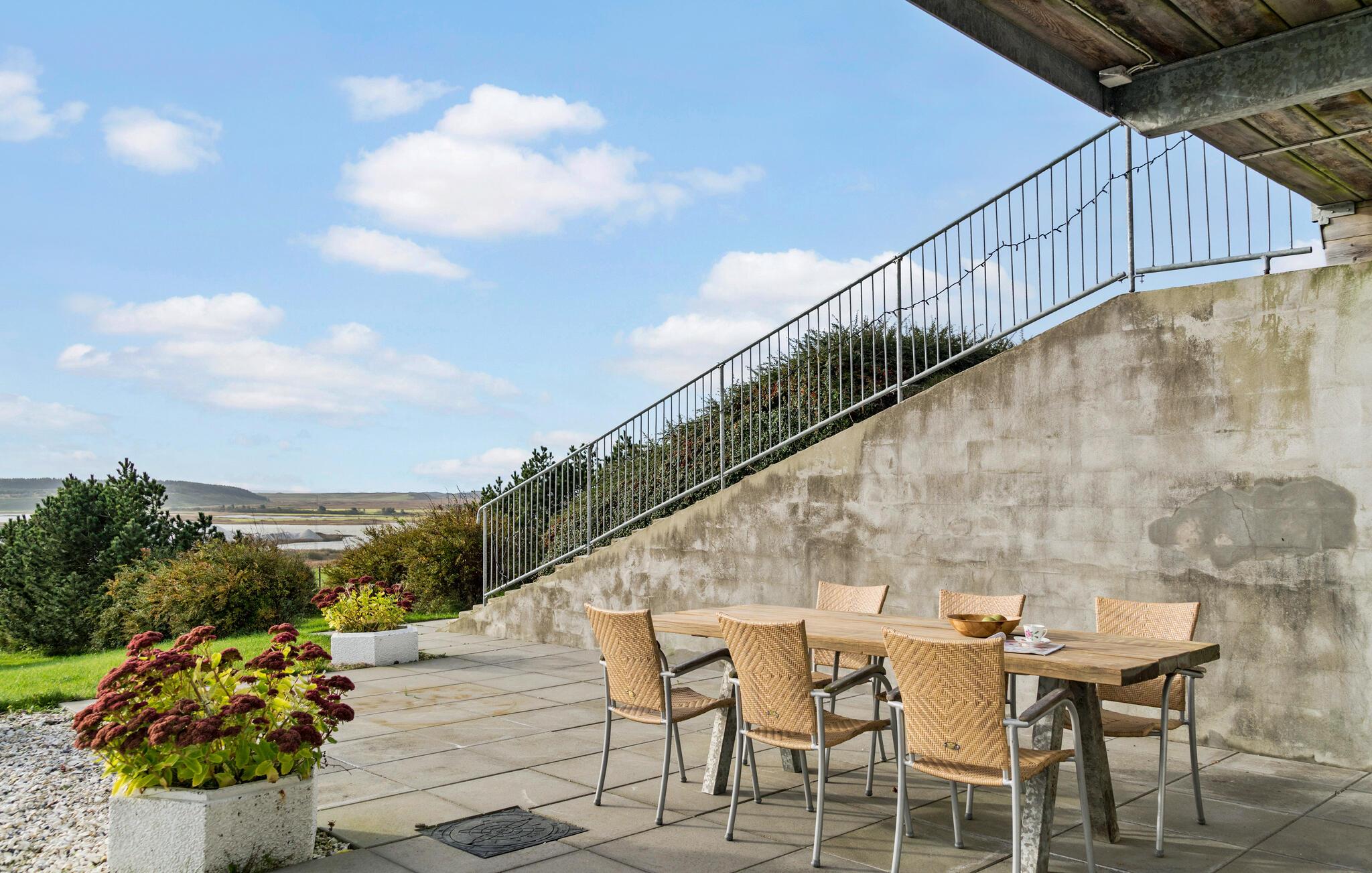 Oplev ro og vidder i moderne feriehus nær Hanstholm med panoramaudsigt og shelter i haven.