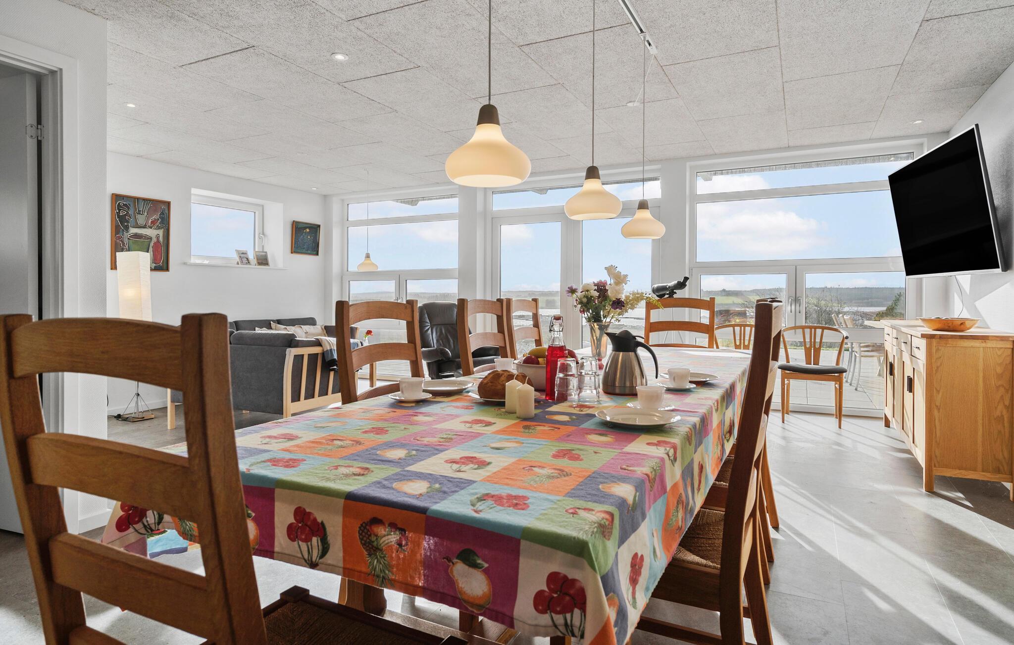 Tilbring en uforglemmelig pause i dette feriehus i Ræhr nær Hanstholm og nyd den danske naturs vidder. Start dagen med morgenmad på den rummelige terrasse og lad blikket glide over det omkringliggende landskab. Den klare luft og roen lægger op til afslapning. Indendørs møder I en lys og venlig atmosfære. Stuen med sine store vinduer byder på en skøn udsigt og masser af plads til at slappe af. Læn jer tilbage, læs en god bog, eller se en film om aftenen.