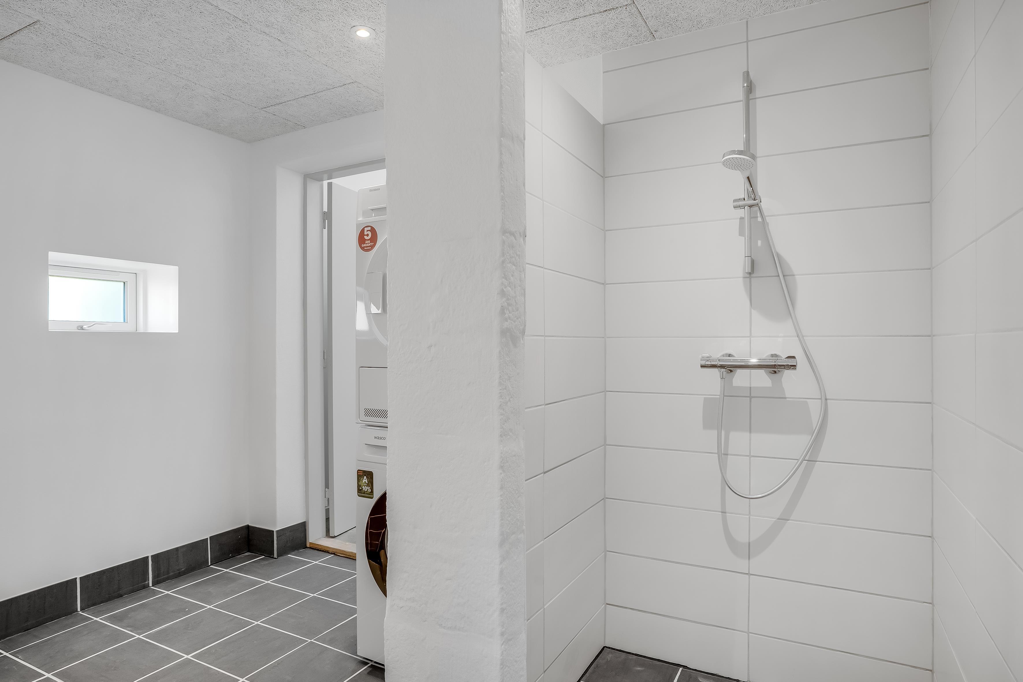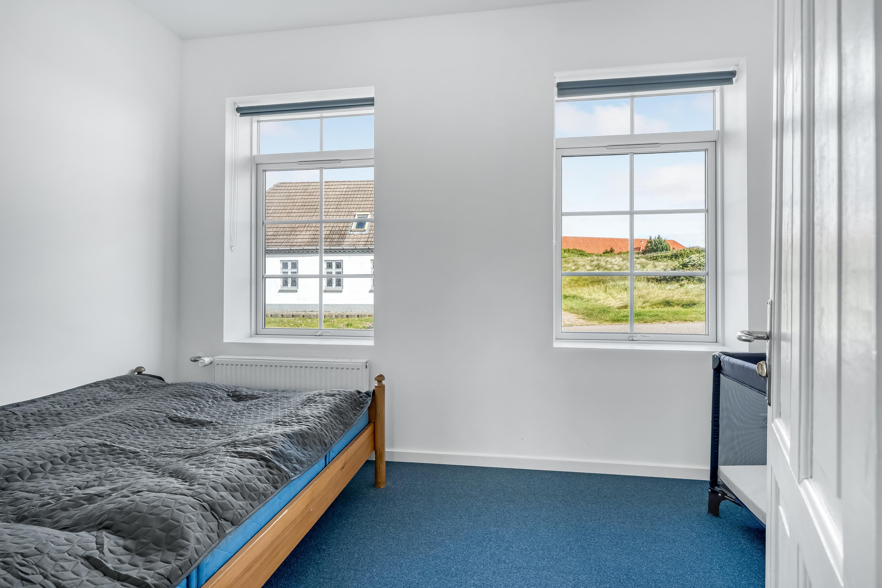 Boligen har i alt 4 soveværelser, alle med dobbeltsenge, hvilket giver masser af sovepladser til op til 8 personer. Der er også en barneseng og barnestol til rådighed, hvilket gør huset perfekt til familier med små børn. Badeværelset er moderne og komfortabelt, udstyret med gulvvarme, bruser og to toiletter for at sikre, at alle har den plads, de har brug for, selv i travle tider.