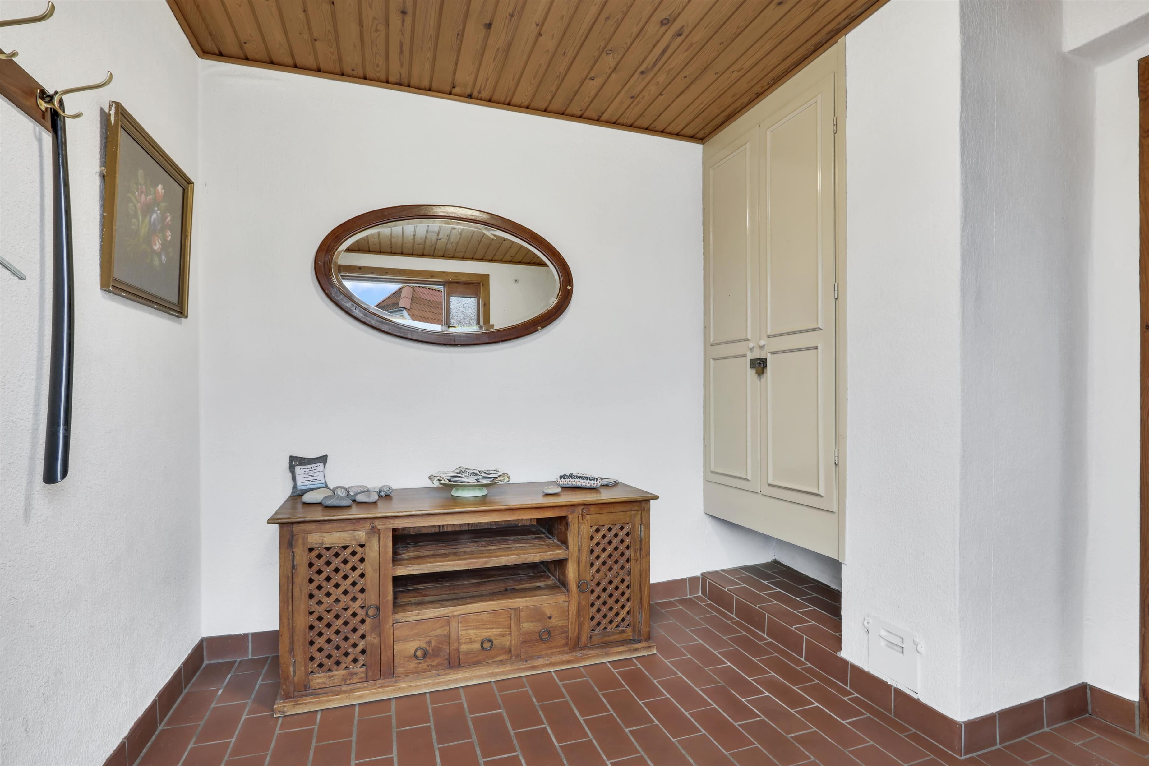 Fra bryggers er der en trappe til 1. sal. Her er der 2 soveværelse (2ES og 1DS). For at komme til det bagerste værelse er det nødvendigt at gå igennem værelse med de 2 enkeltsenge.