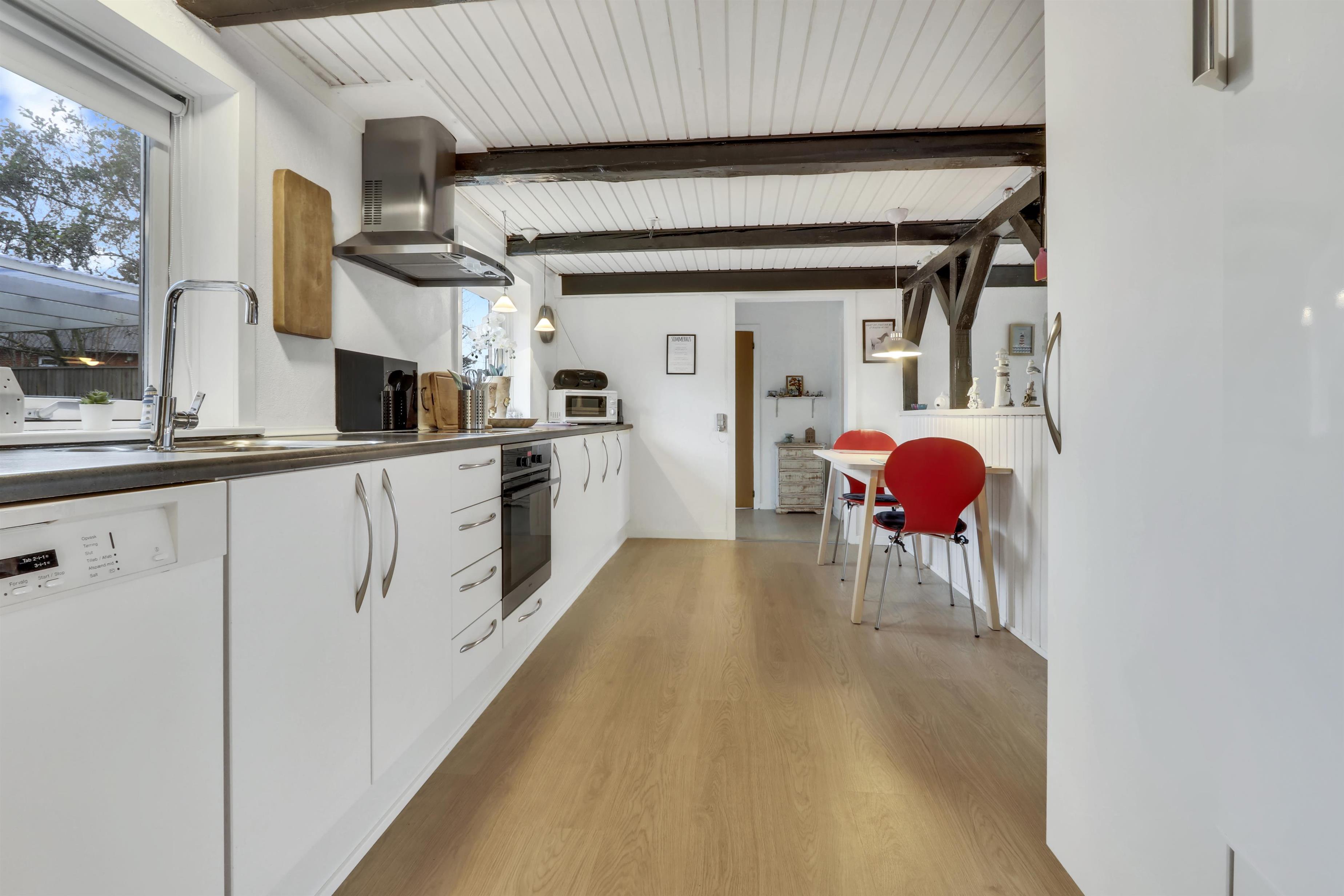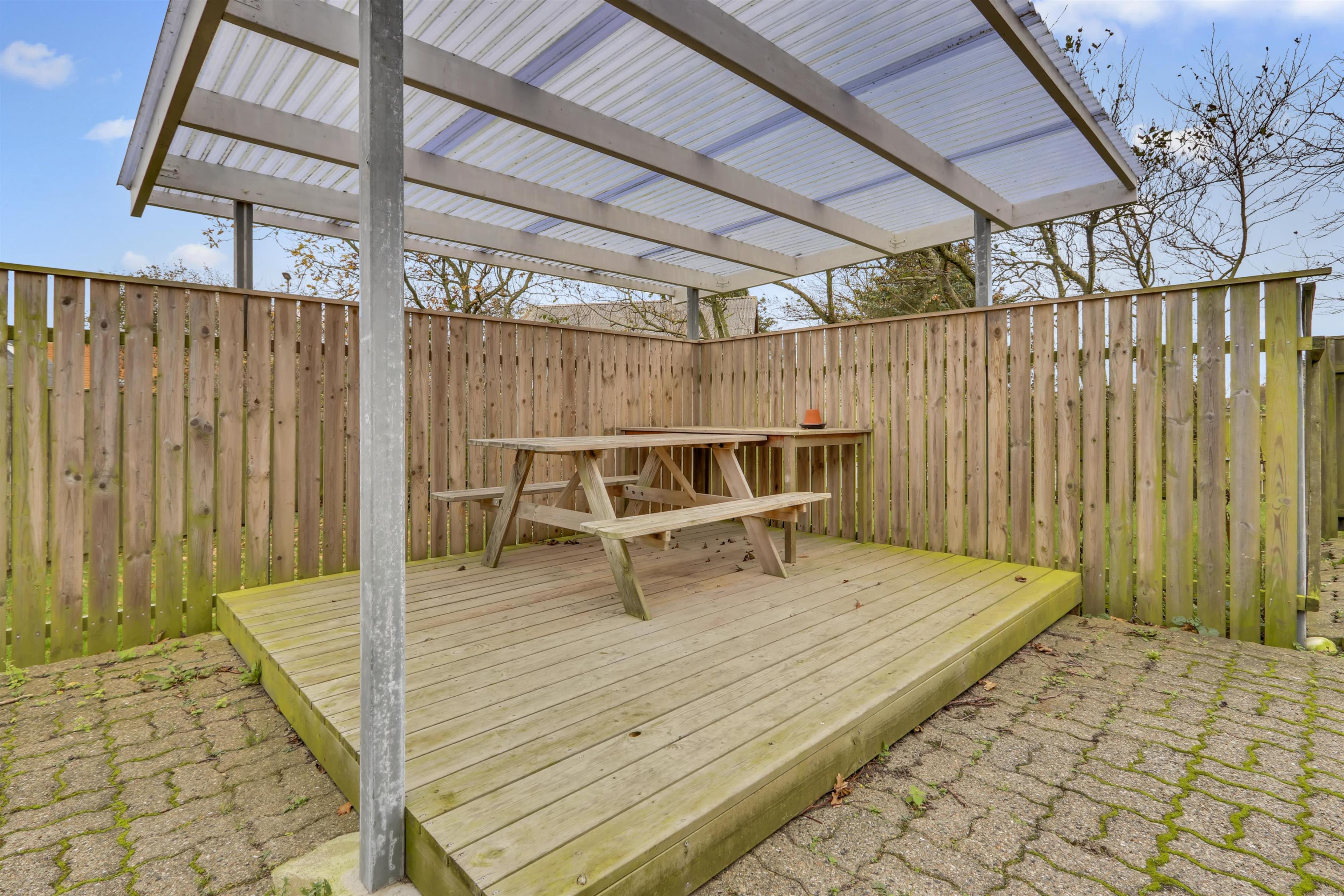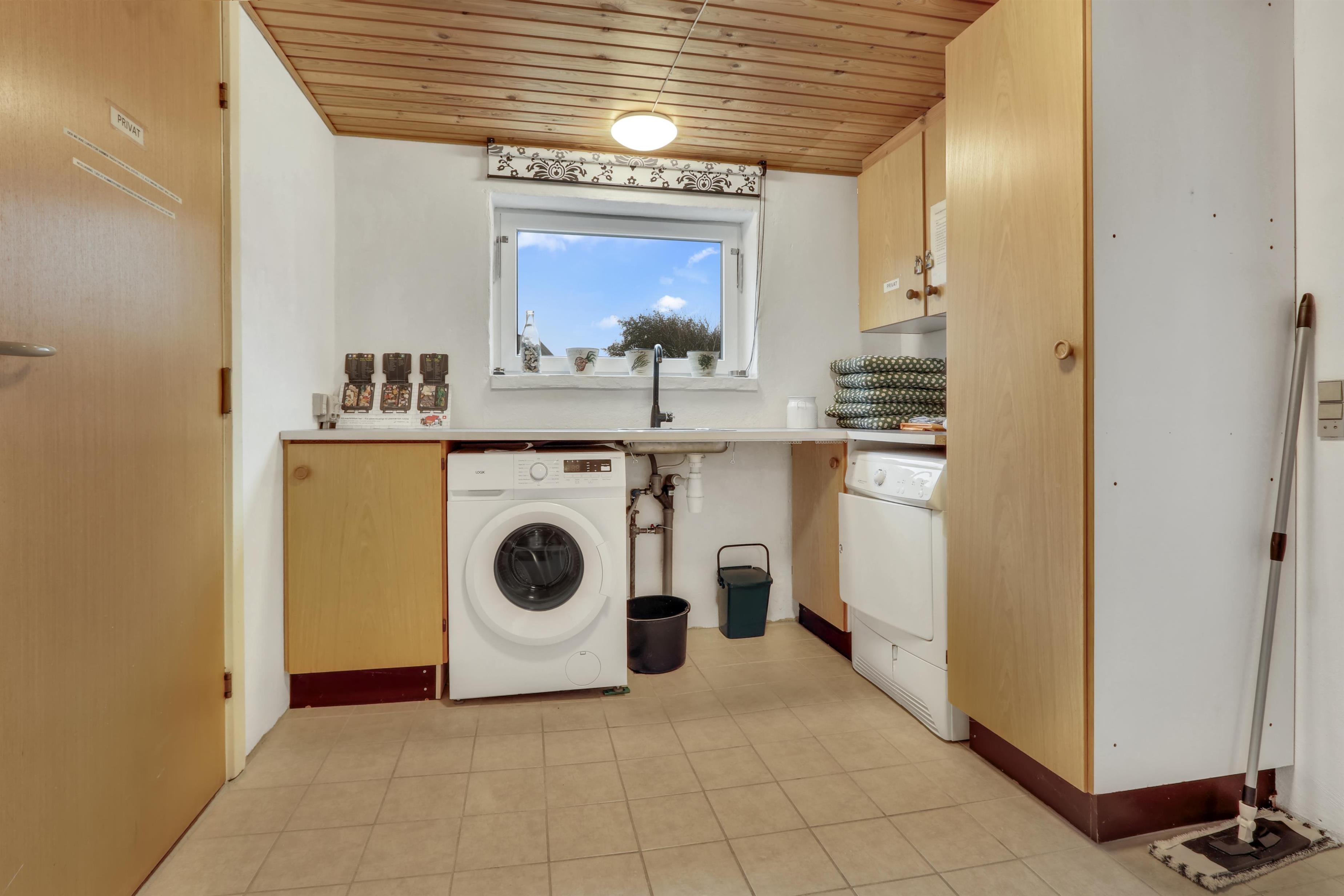 Fra den lille mellemgang ved køkkenet og fra bryggers er der udgang til en indhegnet terrasse med havemøbler, solvogne og grill. På terrassen er der altid læ og god mulighed for en plads i solen ligesom der er et udekøkken med stålbord og rindende vand. Dette gør huset til det perfekte valg, hvis man godt kan lide at fiske og har behov for renseplads og ekstra fryseplads til feriens fangst. Huset ligger kun ca. 200 m fra indkøbsmuligheder og her findes der mulighed for at hente morgenbrød og købmandsvarer. Tæt på huset ligger også Harboøre centret hvor der er mulighed for afhentning af mad samt massere af aktivitetsmuligheder. Indenfor 10 - 15 km fra huset kan flere seværdigheder, aktiviteter og shoppingmuligheder nås.