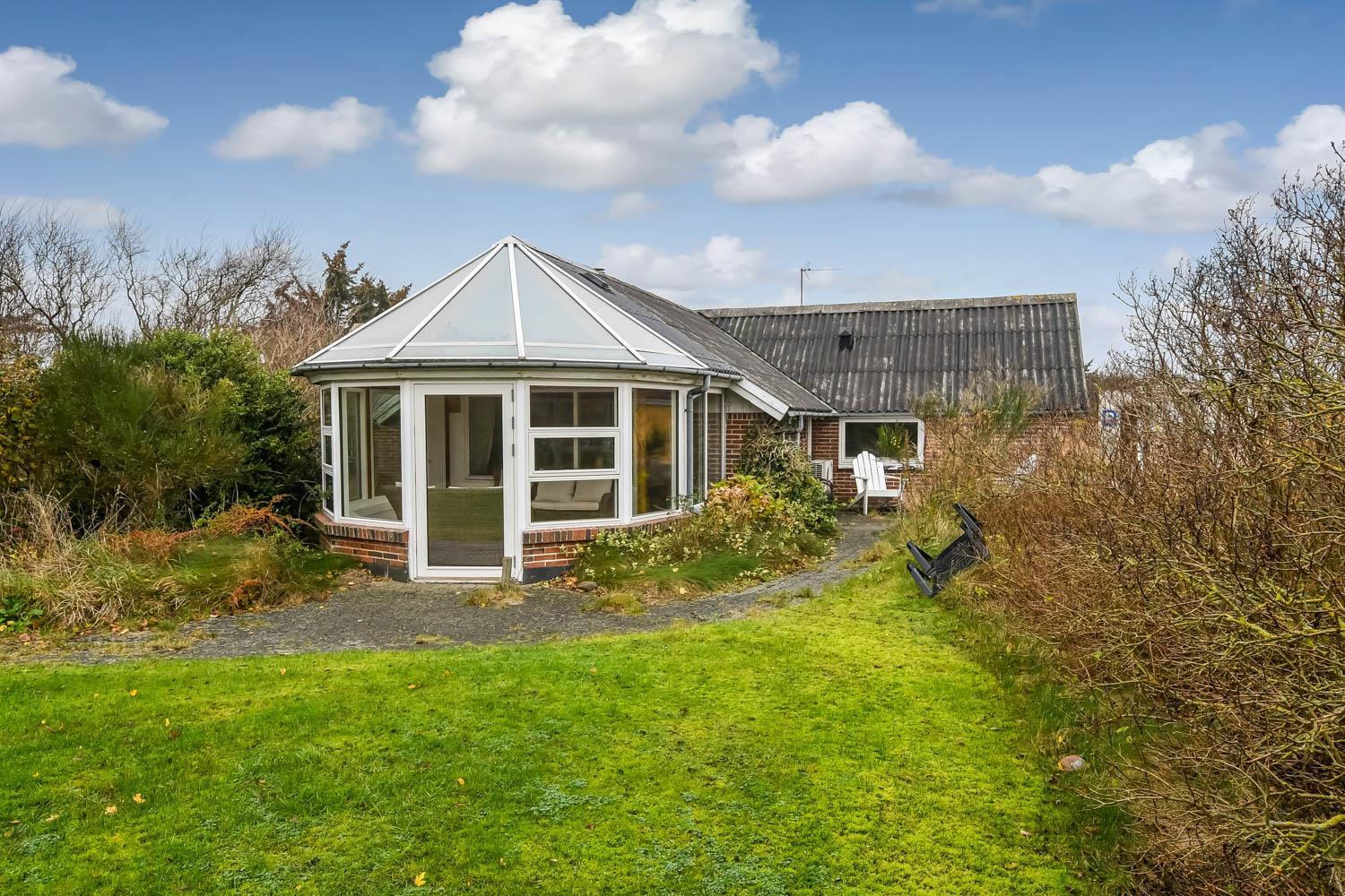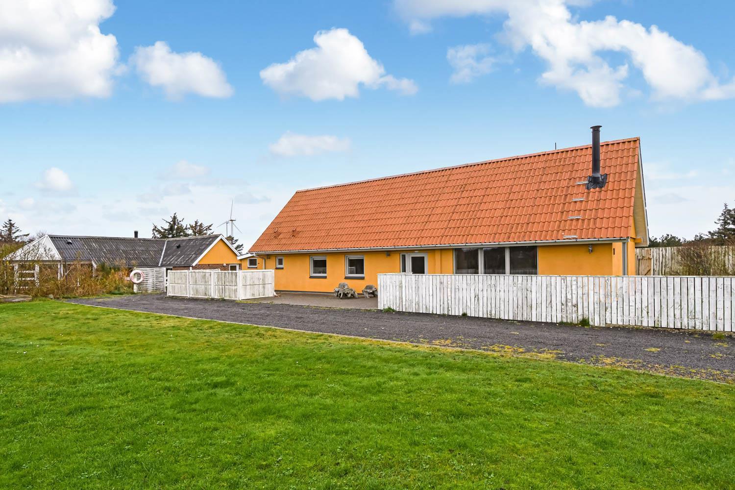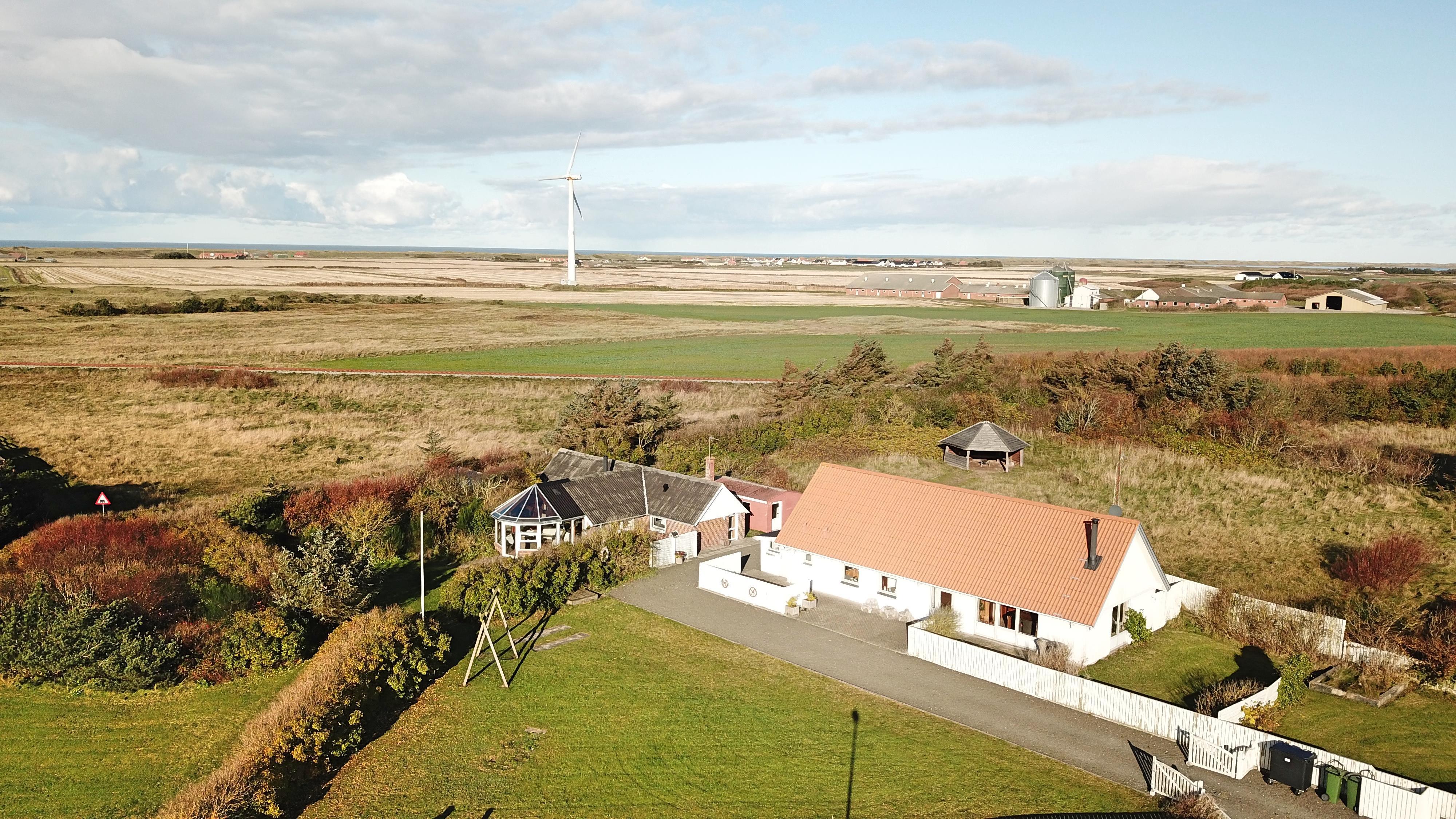 Her er muligheden for at bo sammen 2 familier i 2 feriehuse på samme grundstykke kun 1300 meter fra Vesterhavet. De 2 huse ligger ved siden af hinanden i en stor have og der er 6 sengepladser, køkken, stue og badeværelser i hvert feriehus, så alle essentielle behov kan opfyldes i hvert hus.Her er naturligvis også gratis internet i hovedhuset. Selve haven er en mindre opdagelsesrejse værd: Her mange forskellige terrasser og hyggehjørner, så læ er altid muligt at finde. Der findes sågar også et shelter eller bålhytte på grunden med overdækket grillsted.