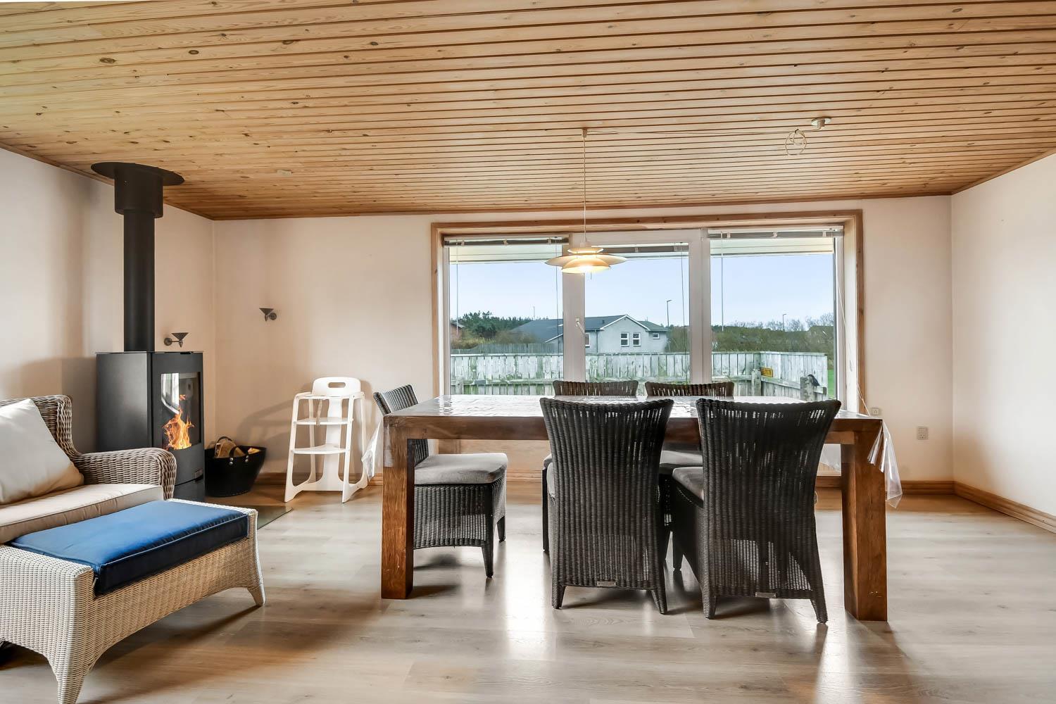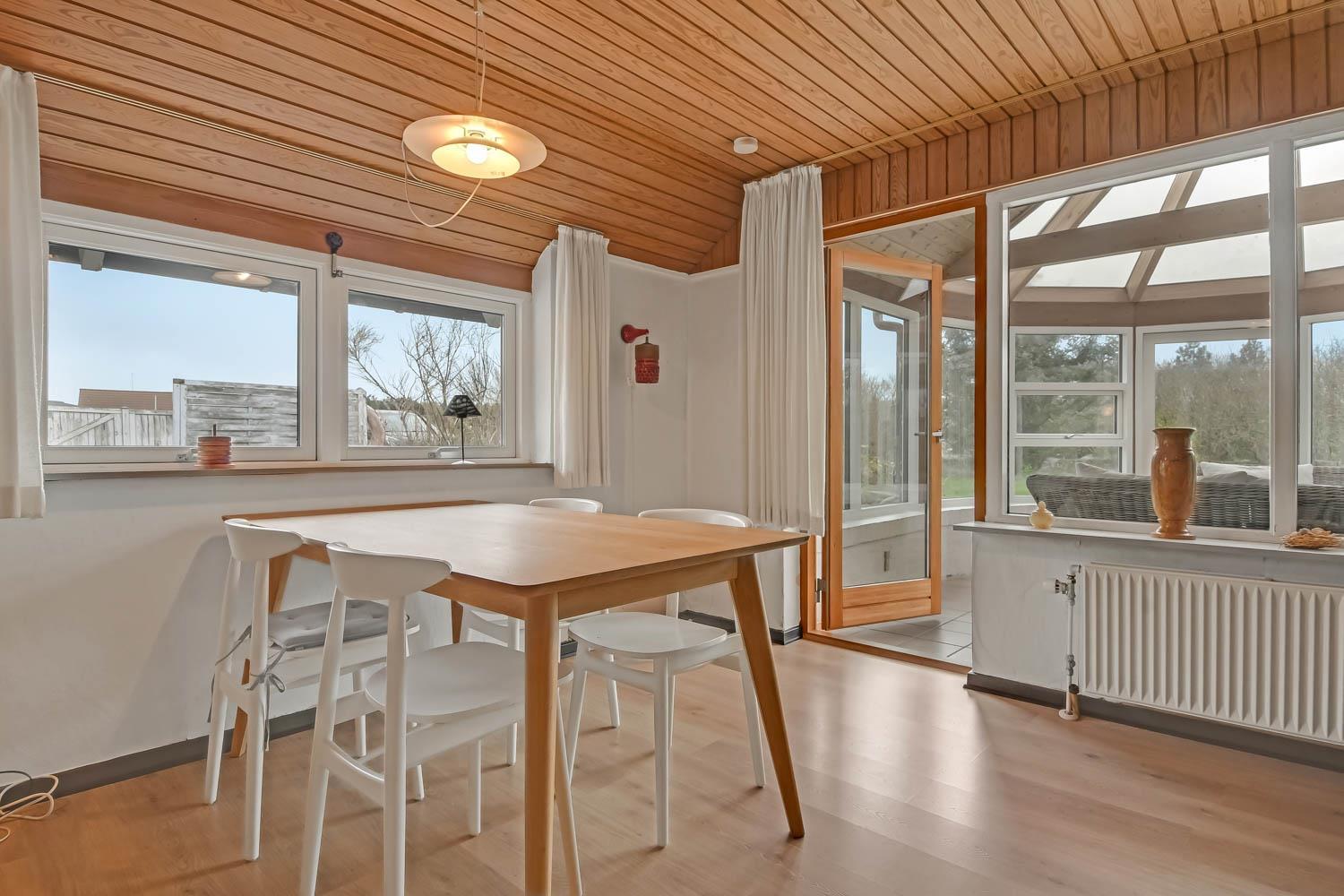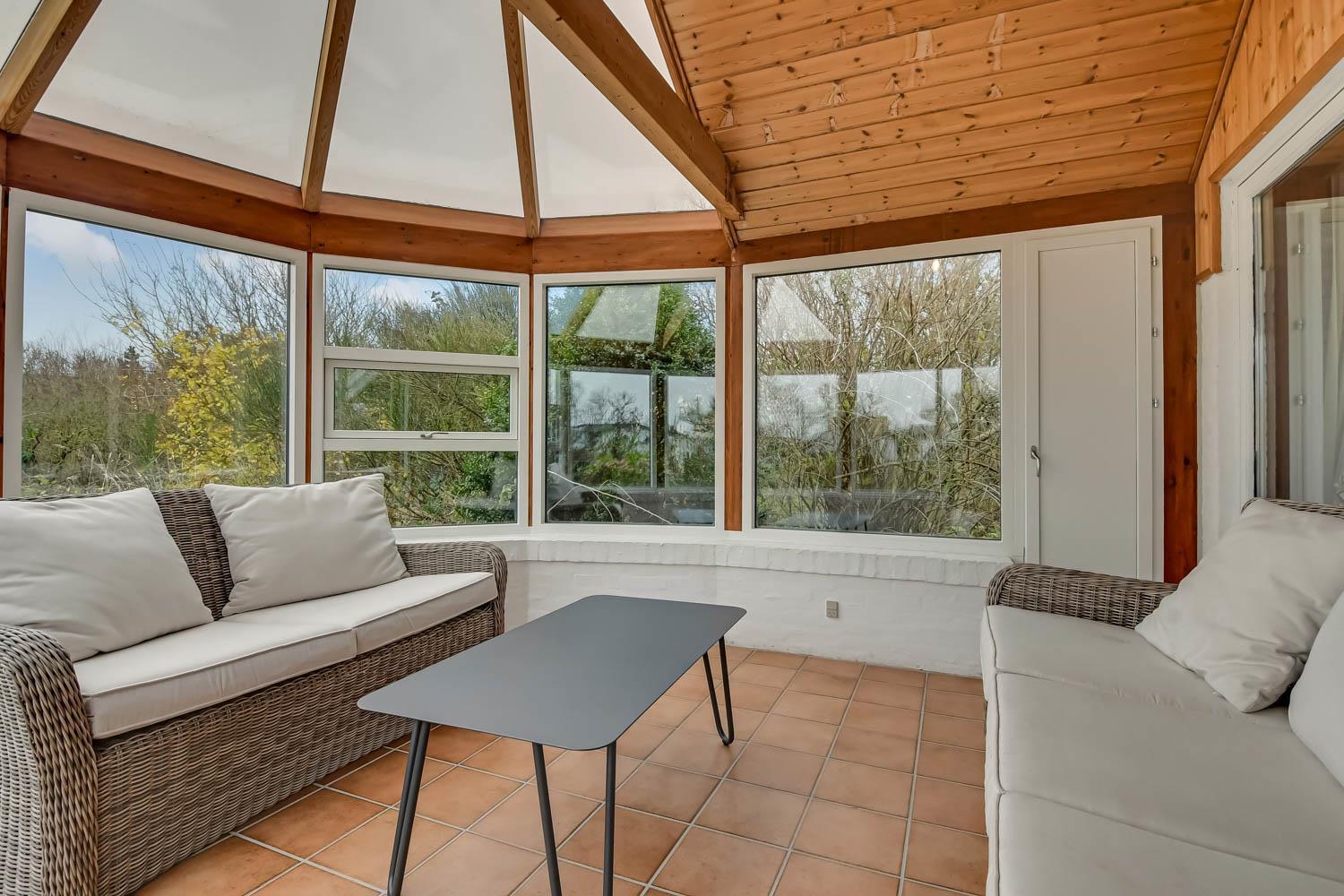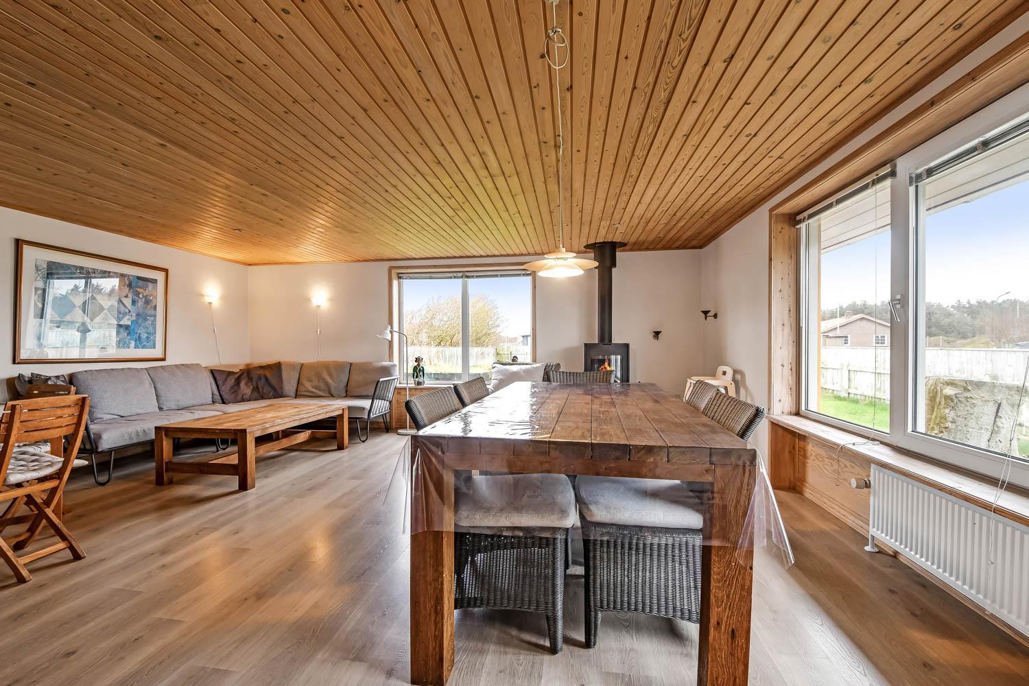 Her er muligheden for at bo sammen 2 familier i 2 feriehuse på samme grundstykke kun 1300 meter fra Vesterhavet. De 2 huse ligger ved siden af hinanden i en stor have og der er 6 sengepladser, køkken, stue og badeværelser i hvert feriehus, så alle essentielle behov kan opfyldes i hvert hus.Her er naturligvis også gratis internet i hovedhuset. Selve haven er en mindre opdagelsesrejse værd: Her mange forskellige terrasser og hyggehjørner, så læ er altid muligt at finde. Der findes sågar også et shelter eller bålhytte på grunden med overdækket grillsted.