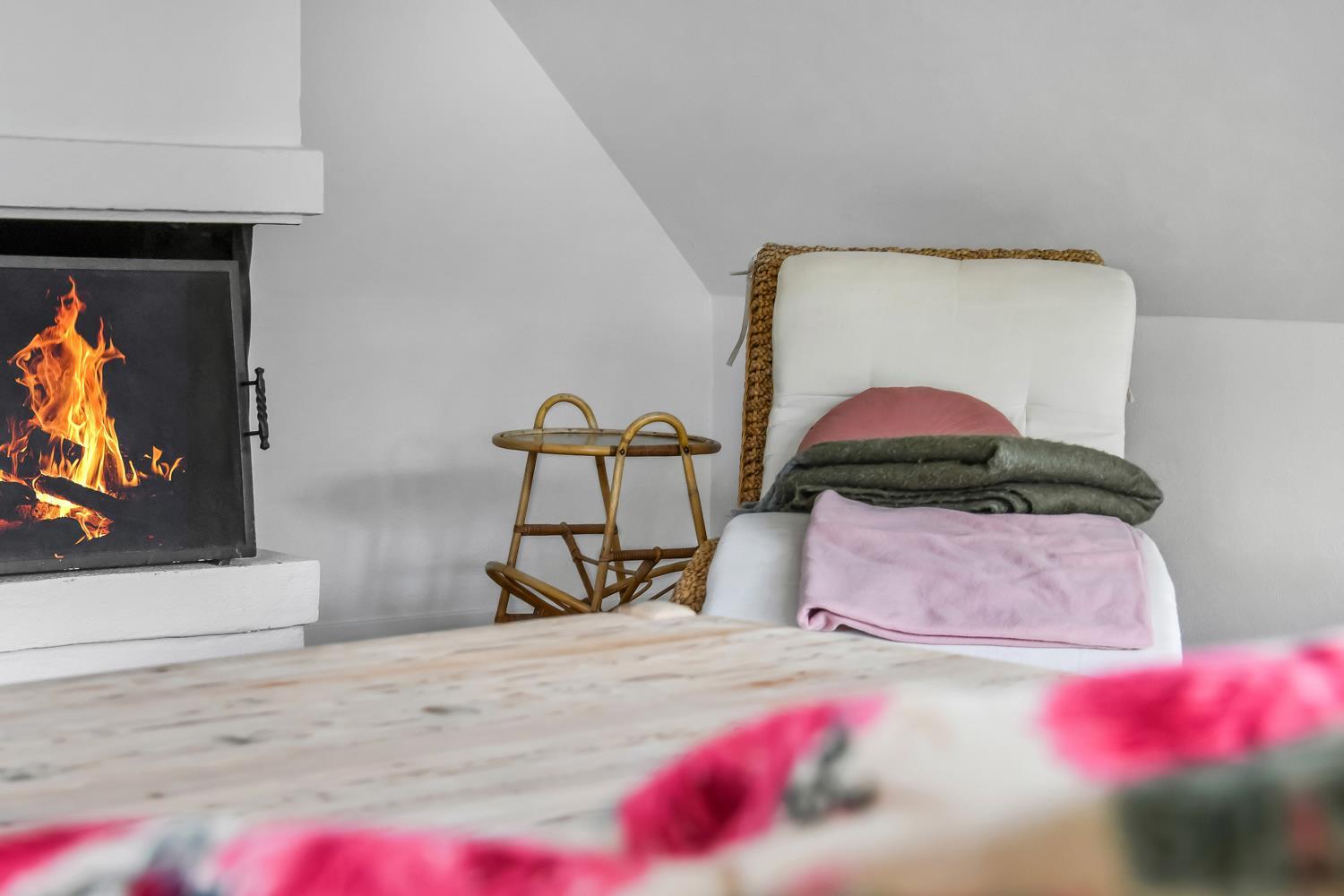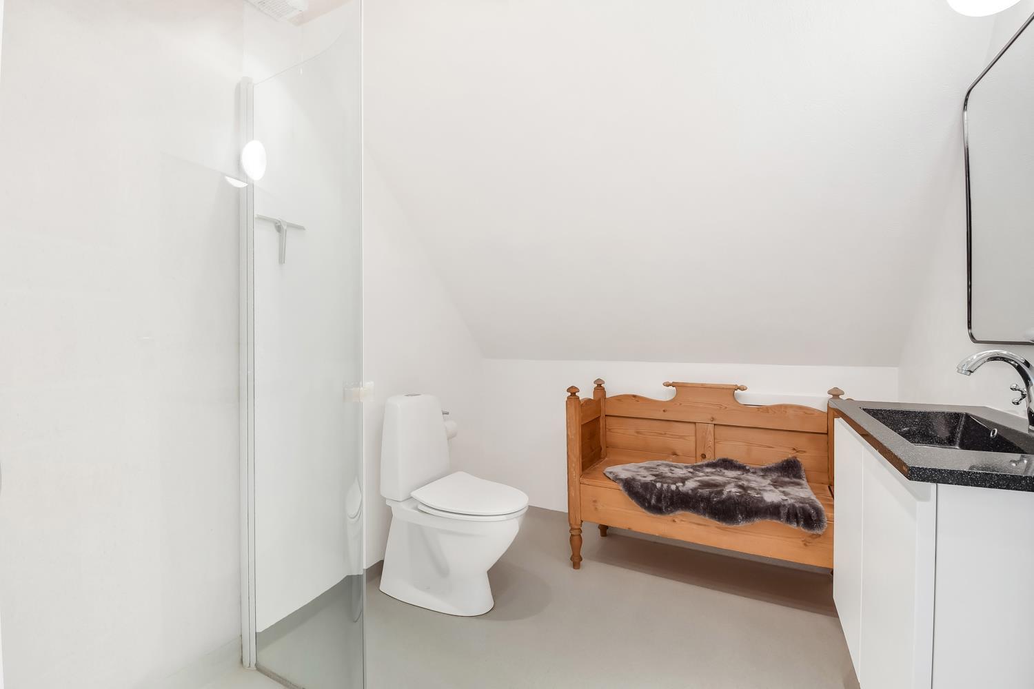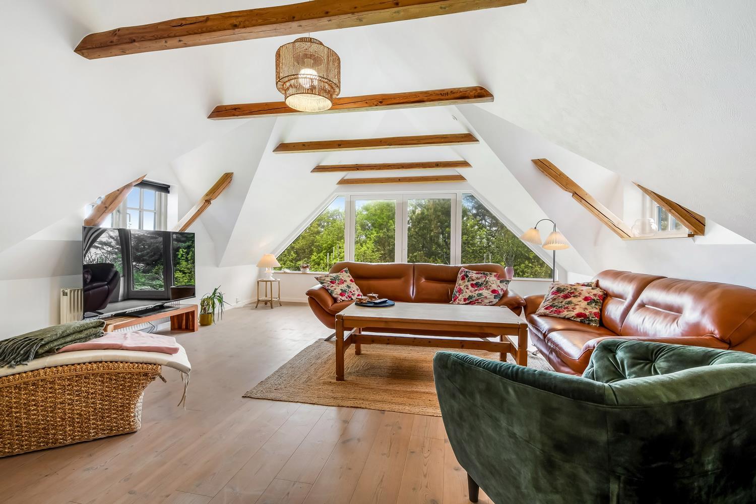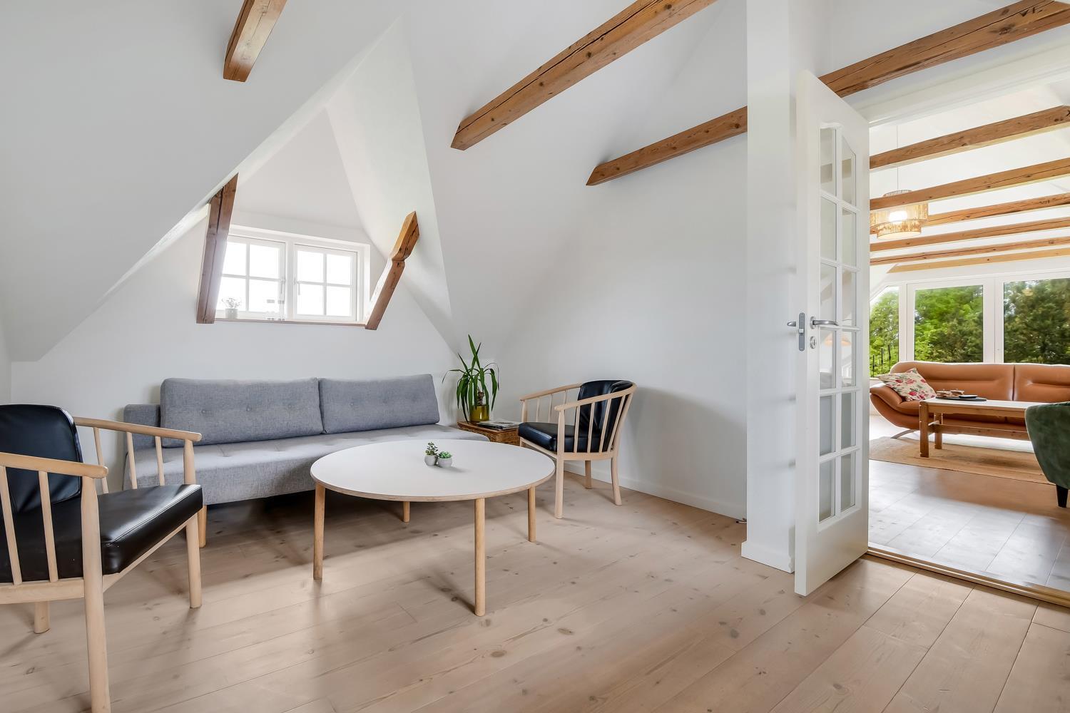 Via trappen ved køkkenet kommer I op på 1. etage. Her er der en åben repos med dobbelt sovesofa (1DS). Dejlig opholdsstue med en fantastisk udsigt over landskabet og fjordkig. Opholdsstuen er indrettet med dejlige møbler, Smart-TV med danske og tyske programmer samt mulighed for streaming af TV / Radio / Apps via Chromecast. Badeværelse med toilet, håndvask og bruser. Stor soveværelse med (1DS) og TV i loftet med danske og tyske kanaler samt udgang til en pragtfuld altan med vandkig og udsigt til landskabet.
