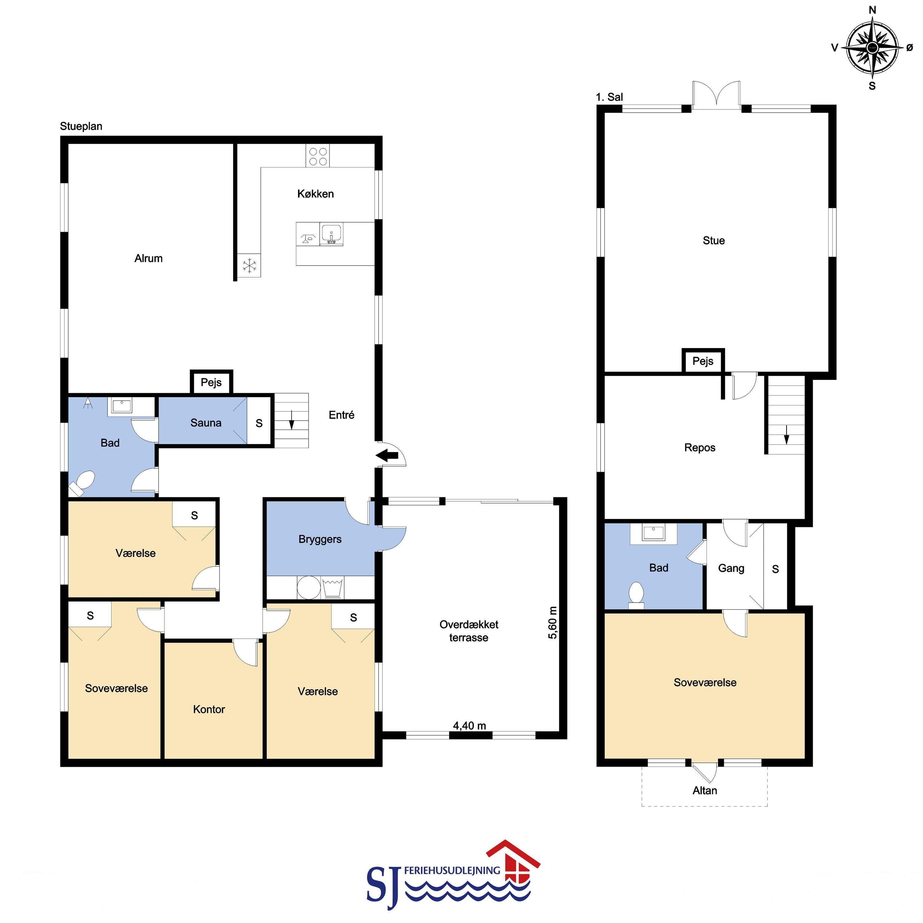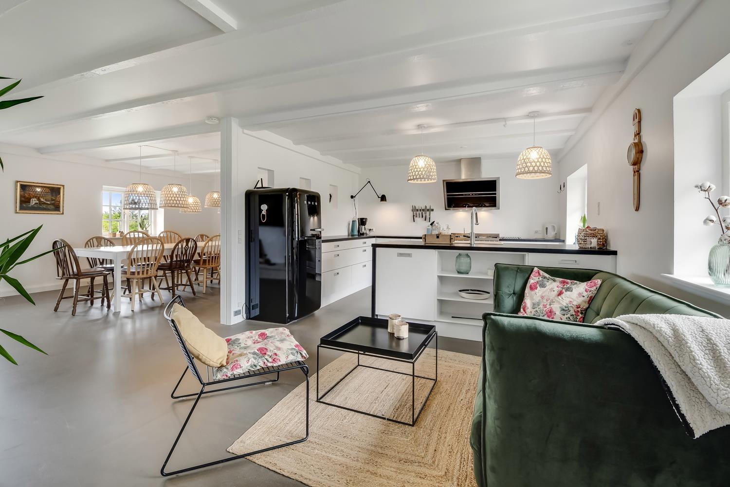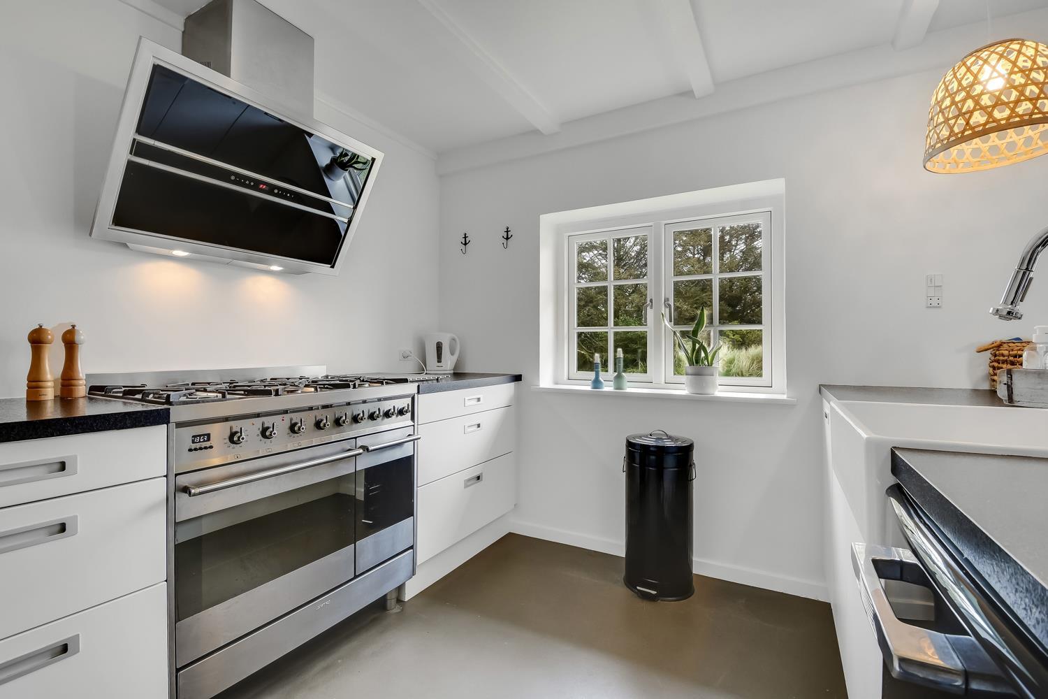 Huset er 209 m2 stort, moderniseret i 2012 og 2022. I stueplan er der 4 gode soveværelser (1DS, 1DS, 1DS, 2ES) og på 1. sal er der et soveværelse (1DS) + en dobbelt sovesofa på den åbne repos. Spisestue med stort spisebord hvor der plads til alle mand, amerikaner køleskab, Smart-TV med danske og tyske kanaler og en dejlig pejs med indsats så den kan bruges som normal brændeovn. Spisestuen, er bygget sammen med køkkenet, og er stilfuld indrettet. Utrolig flot og veludstyret køkken med gaskomfur med bageovn, emhætte, opvaskemaskine, mikroovn og dejlig køkkenø med masser af ekstra bordplads. Bryggers med separat fryser (200 L), og vaskemaskine. Badeværelse med bruser, toilet, håndvask, og direkte adgang til saunaen. Lækker udestue med siddepladser, udgang til haven og adgang til aktivitetsrum med poolbord / Billard, airhockey og dart. Max. 2 husdyr tilladt, Ikke-ryger hus.