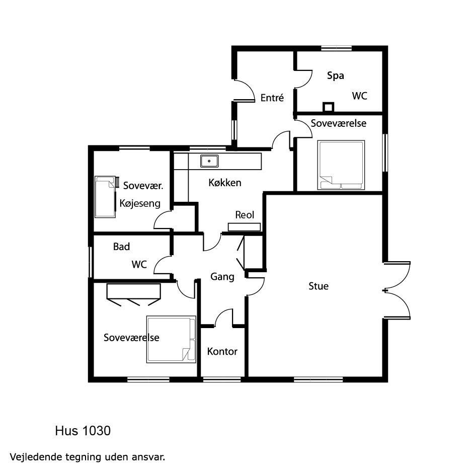 Godt indrettet helårshus på 117 m2 med 3 soveværelse (1DS, 1DS, 1KS). Opholdsstue med polstermøbler, spiseplads, brændeovn, TV med danske og tyske kanaler samt chromecast som giver mulighed for streaming af radio, TV og app´s. Veludstyret køkken med Glaskeramisk kogeplader, indbygningsovn, mikroovn, emhætte, opvaskemaskine og køleskab og fryser på 70 l. Brygges ekstra afhængeplads. Dejligt badeværelse, toilet, håndvask, spabad med håndbruser, pusleplads, vaskemaskine og tørretumbler samt klinkegulv med gulvvarme. Ekstra toilet med håndvask og bruser. Lille charmerende arbejdsværelse med udsigt til landskabet. Huset har fjernvarme. Ikke ryger hus. Max. 2 husdyr tilladt.