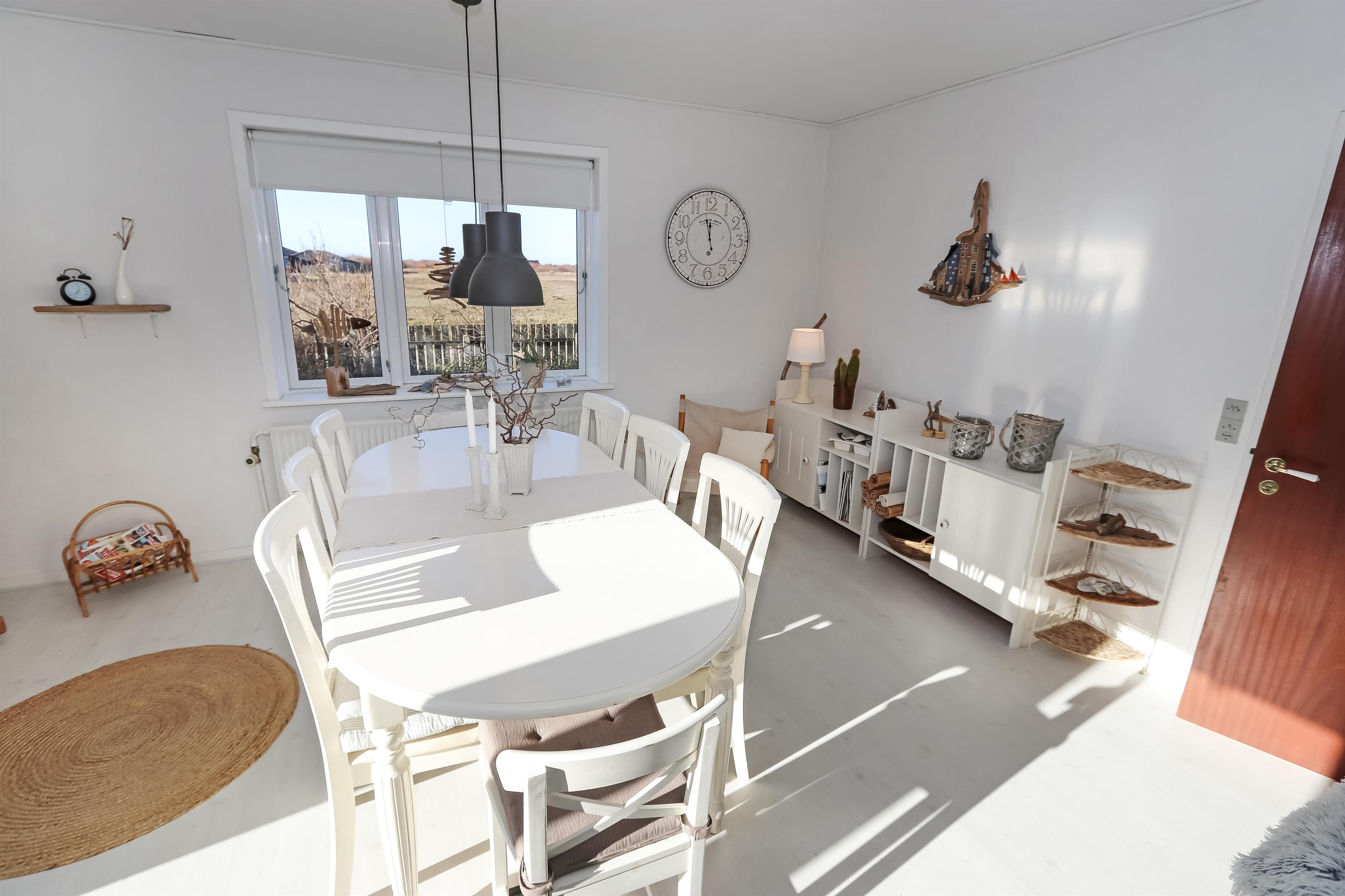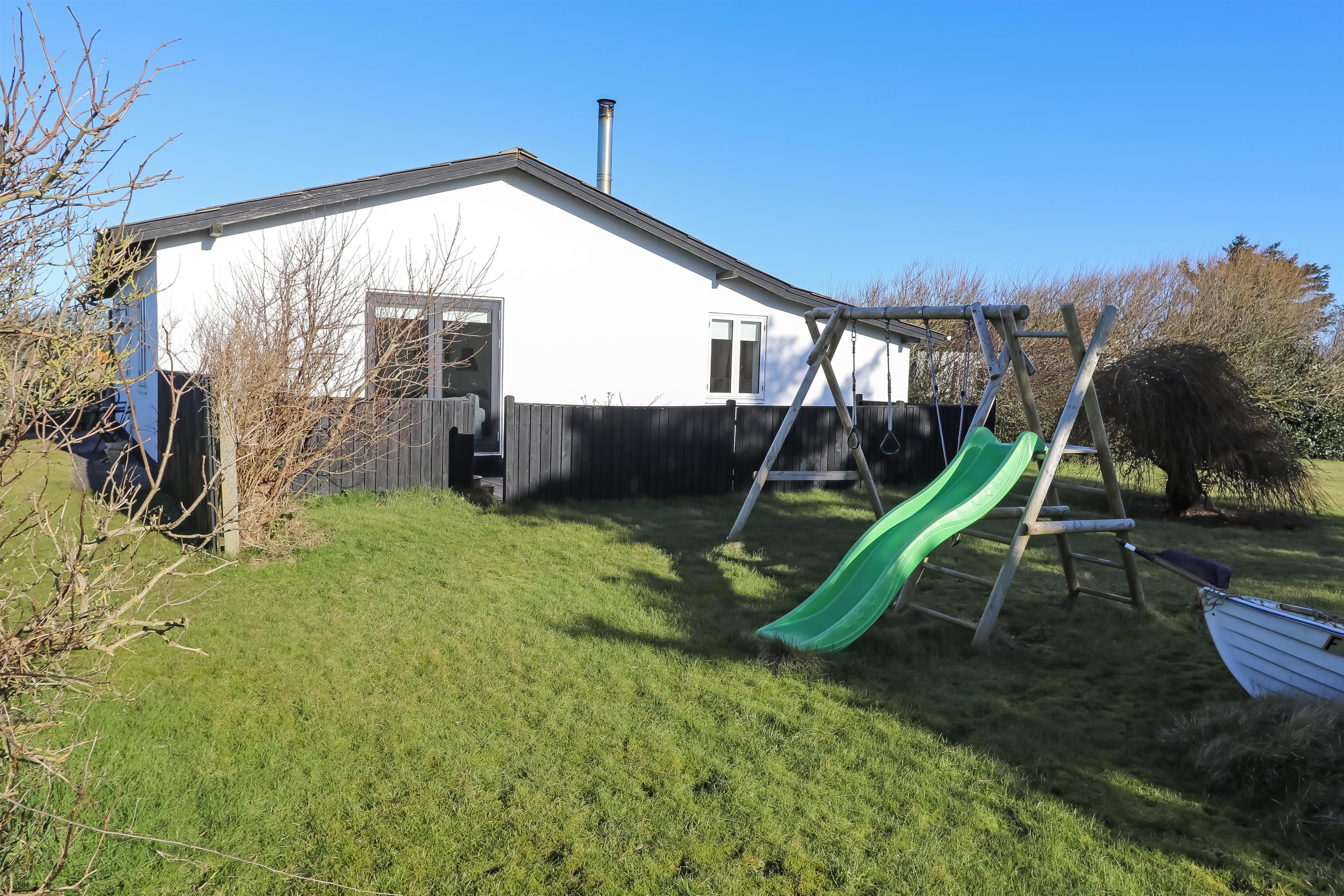 Fra stuen er der udgang til en dejlig terrasse med havemøbler, solvogne og grill. Beliggende på en ca. 1.254 m2 stor ugenert indhegnet grund. Gynger og sandkasse. På terrassen er der altid læ og god mulighed for en plads i solen. ca. 1 km fra huset er der massere af indkøbsmuligheder samt Harboøre centret hvor der er mulighed for afhentning af mad samt massere af aktivitetsmuligheder. Indenfor 10 - 15 km fra huset kan flere seværdigheder, aktiviteter og shoppingmuligheder nås. Havet ligger også tæt på med mulighed for gåture og høfter som er rigtig gode at fiske fra.