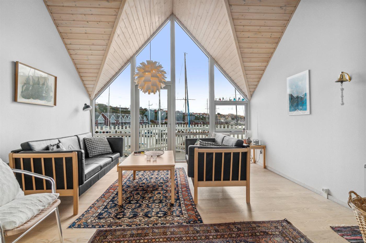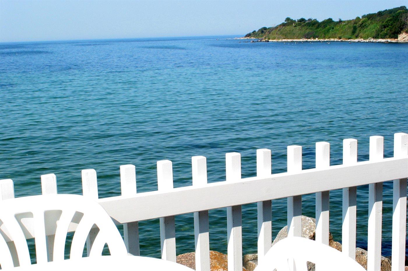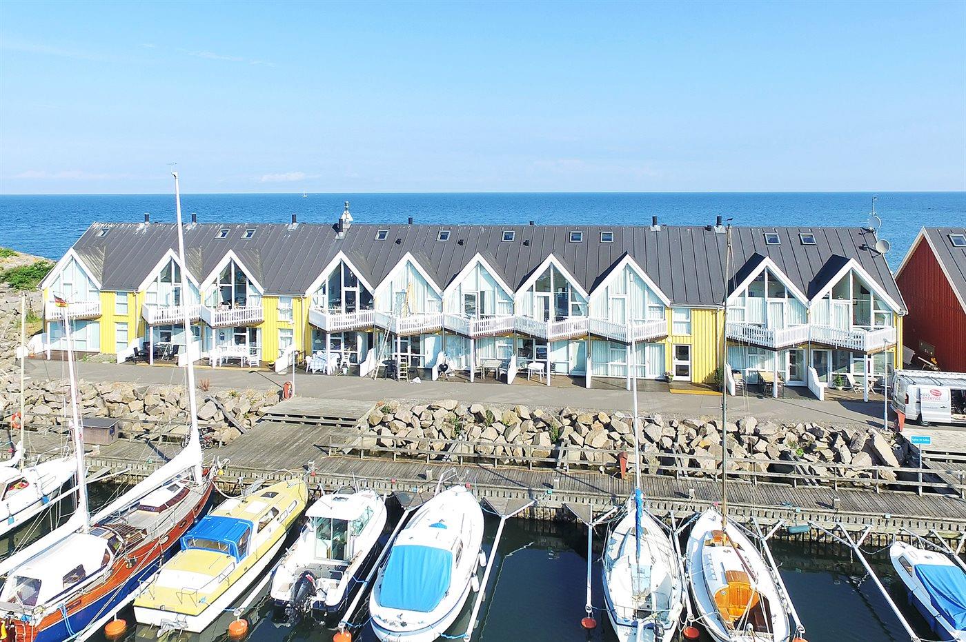Lækkert, særpræget luksussommerhus i 2 etager med unik beliggenhed og storslået havudsigt. Opført i 2003. Huset ligger på en naturgrund med såvel klipper som kajareal. Balkon med udsigt over lystbådehavnen. Stor hævet træterrasse ud mod havet. Klinkegulv på stueplan, trægulve på 1. sal. I den store udsigts- og opholdsstue er der TV og parabol (digital) med tyske programmer, DVD-afspiller og radio med CD-afspiller. Brændeovn. Køkkenet indeholder komfur med keramiske kogeplader, opvaskemaskine, mikrobølgeovn, varmluftsovn og separat fryser. 2 badeværelser med gulvvarme og brusenicher. I det ene desuden en 2-pers. spa. vaskemaskine og tørretumbler. Af yderligere udstyr kan gratis, trådløs internetforbindelse nævnes (computer skal medbringes). 3 soveværelser med dobbeltsenge. Hems med 2 sovepladser (madrasser). Barnestol og barneseng. Et dejligt rækkesommerhus nær god badestrand og Hasle By, der byder på brostensbelagte gader, røgeri, kunstgalleri og et levende maritimt liv.