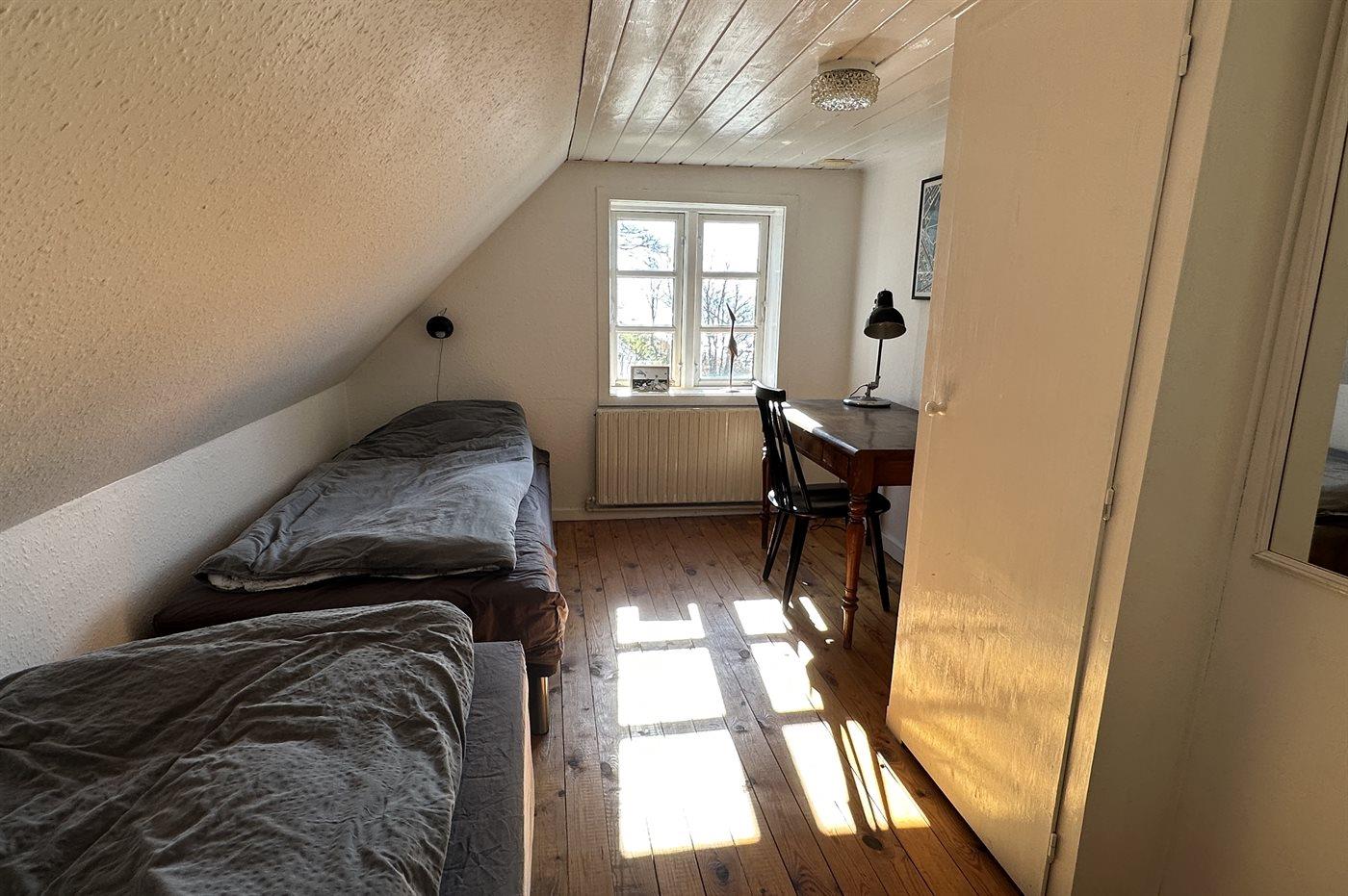 Der er i alt 3 soveværelser. Sovepladserne fordeler sig på: 4 sovepladser i dobbeltsenge. 2 sovepladser i enkeltsenge.