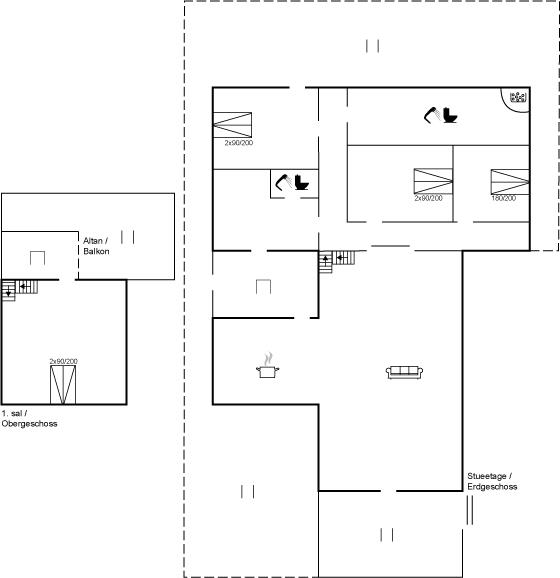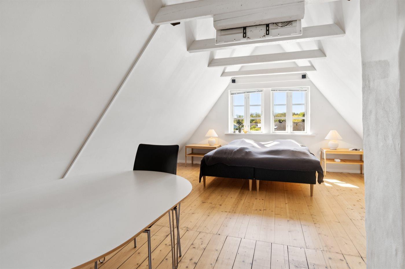 Der er i alt 4 soveværelser. Sovepladserne fordeler sig på: 8 sovepladser i dobbeltsenge. Der er gulvvarme i 3 af soveværelserne.