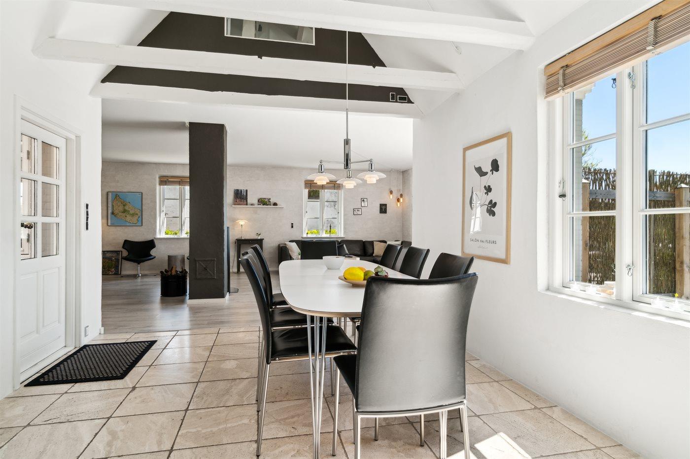 Stort og gedigent feriehus med god og moderne indretning i 2 plan. Flotte lyse farver præger gulve, vægge og lofter, der sammen med kvalitetsbevidst møblering, udstyr og rumindretning gør, at man ganske enkelt føler et godt velbefindende i dette hus. Flot møbeldesign - nøje udvalgt loftsbelysning i de forskellige rum - og netop den gode plads byder en gæst velkommen her.