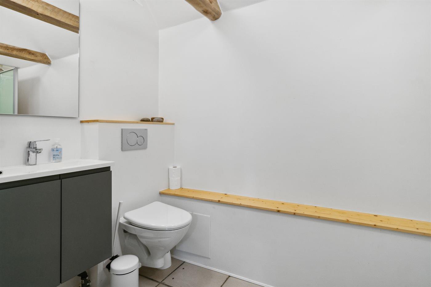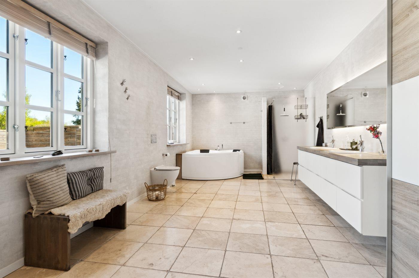 Der er 2 badeværelser med bruseniche og 2 toiletter. Der er gulvvarme på 1 badeværelse.