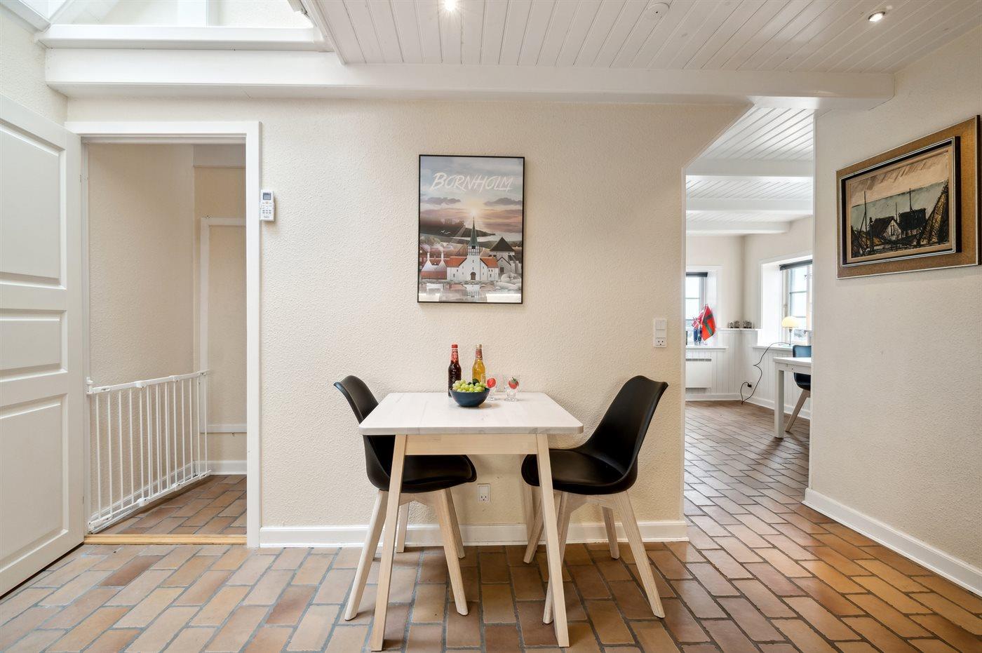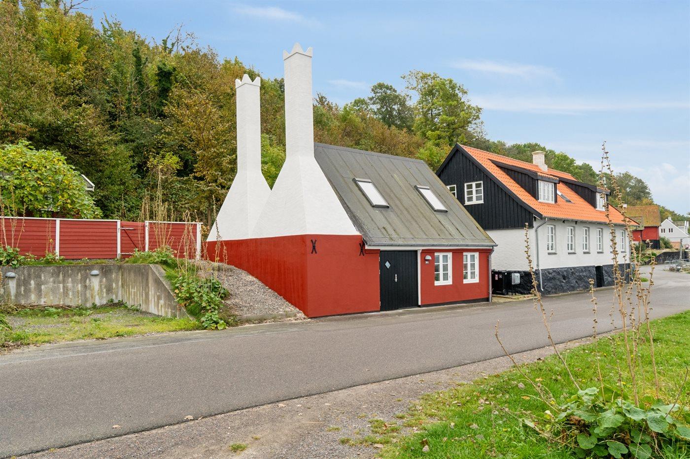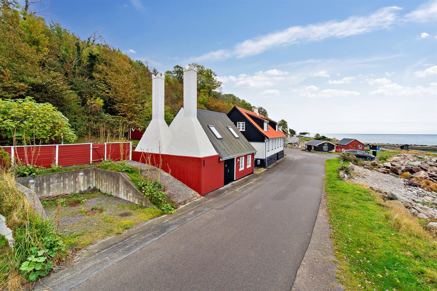 Helt ud til vandet og havet, hvor man får Bornholms bedste solnedgange ligger dette tidligere røgeri med to skorstne og troner nedenfor den stejle skråning op til markerne og det kuperede terræn.