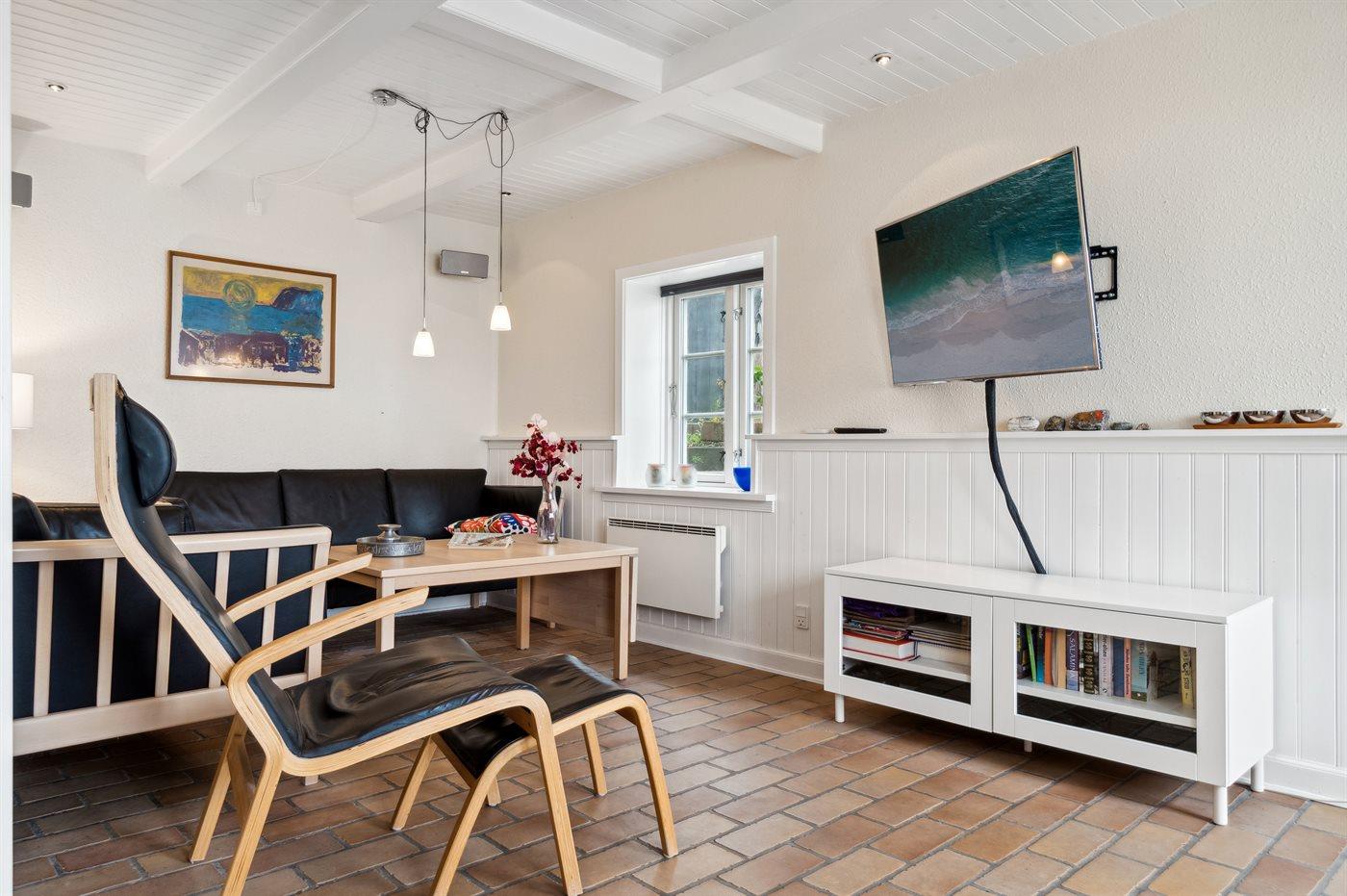 Der er et soveværelse i hovedhuset og et et i annekset, der ligger på den hævede græsplæne bagved røgeriet. Nydeligt og velfungerende badeværelse.
