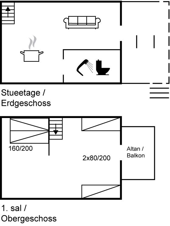 Der er i alt 1 soveværelse. Sovepladserne fordeler sig på: 2 sovepladser i dobbeltseng. 2 sovepladser i enkeltsenge.
