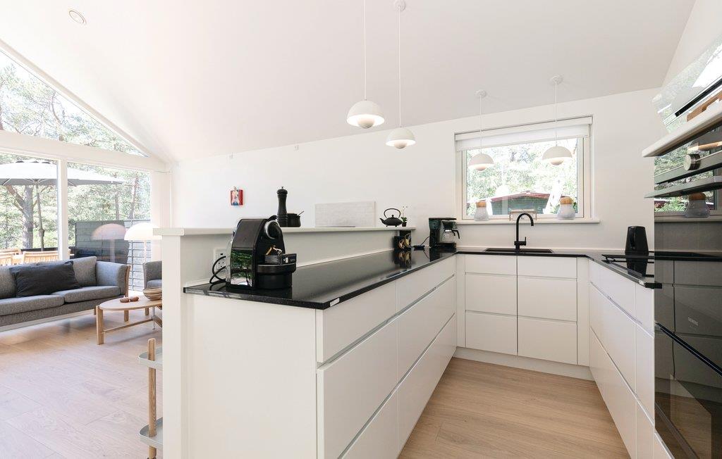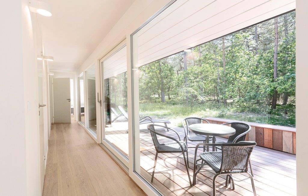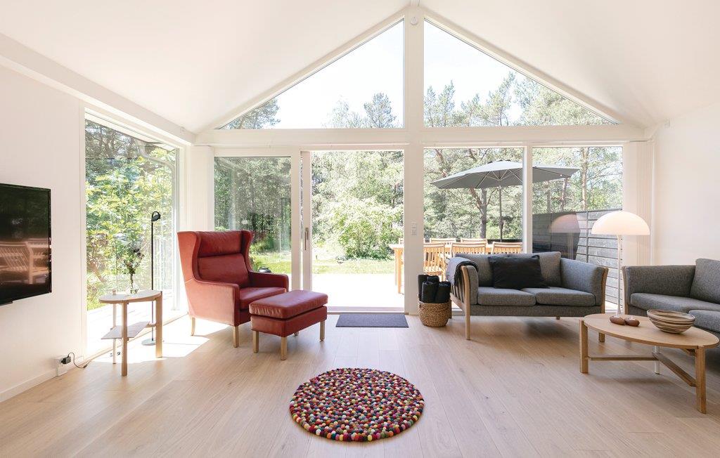 Nyopført og moderne sommerhus tæt på sandstrand og natur med stor terrasse og komfortable faciliteter.