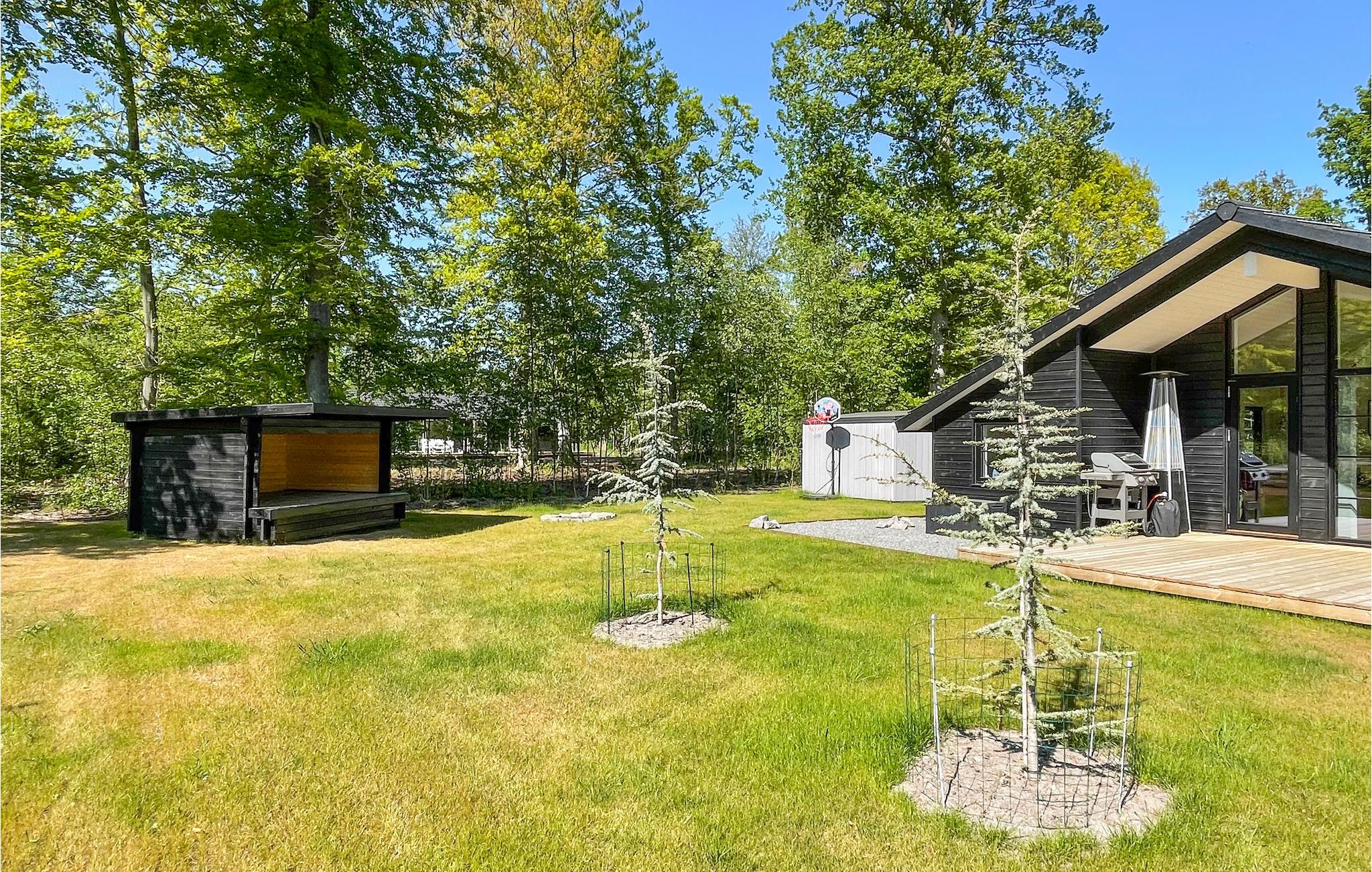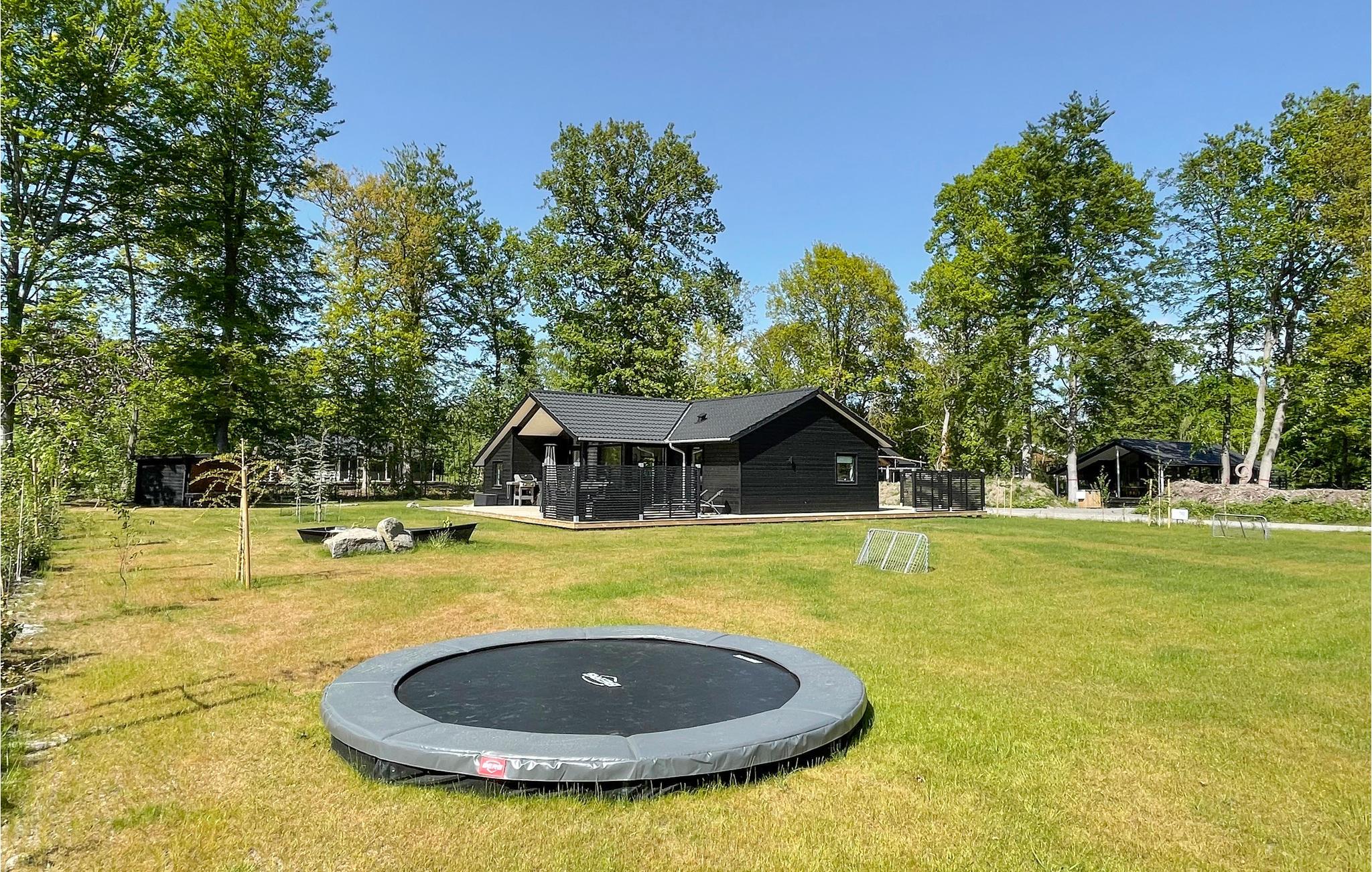 På den store, delvist overdækkede træterrasse med komfortable havemøbler kan I virkelig nyde ferien i fulde drag. Her er både pladser i solen og skyggen, og I har også en gasgrill til rådighed, så I kan tilberede lækre feriemåltider. I haven er der masser af plads til at lege og spille bold, og her finder I også et hyggeligt shelter og en trampolin til børnenes underholdning (på eget ansvar).