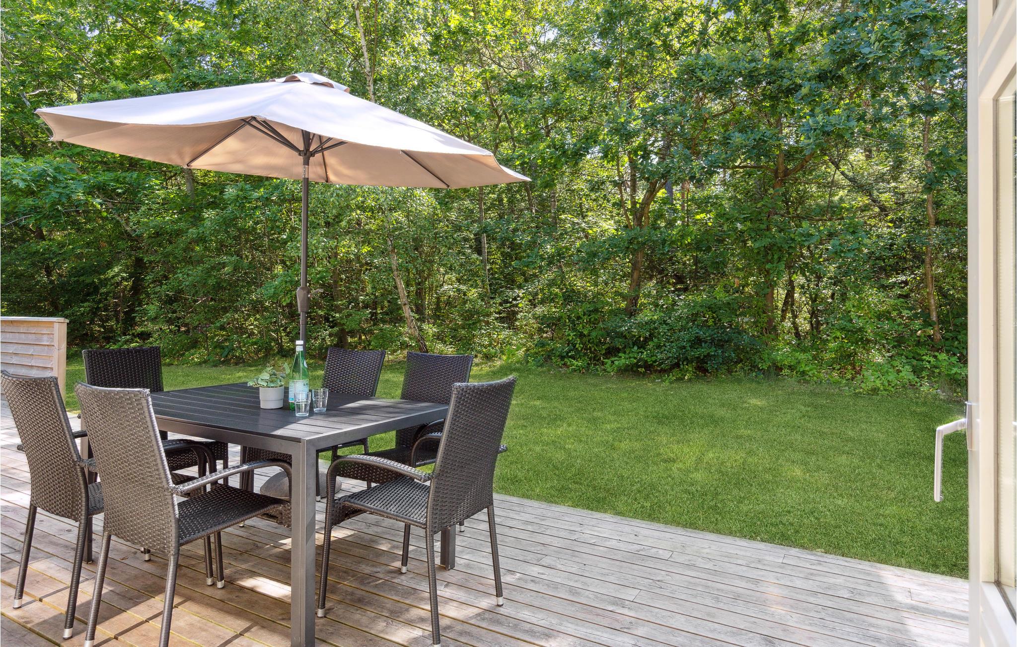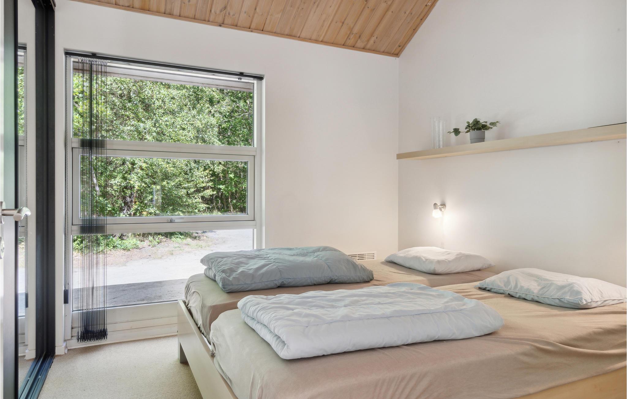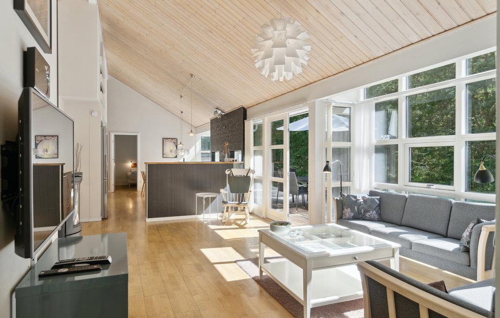 Moderne og indbydende kvalitetssommerhus med mange flotte detaljer og masser af plads. Huset er rummeligt, og fremtræder overalt velindrettet og er beliggende i et større og meget børnevenligt sommerhusområde nær skov og strand. Huset byder på en dejlig stor opholdsstue med nydelige møbler, brændeovn og varmepumpe, og her er naturligvis også gratis wifi til rådighed samt fire fjernsyn. I det flotte og moderne, åbne køkken er det en leg at tilberede de mange feriemåltider, og den hyggelige spisestue, med udsigt til naturen lige udenfor, er også et rart sted at sidde. Dejligt luksusbadeværelse med spabad og sauna, et pænt gæstetoilet og tre gode soveværelser er også med til at øge ferieoplevelsen. Fra husets åbne stueareal har I direkte udgang til en skøn og rummelig træterrasse med dejlige havemøbler og en grill, her er god plads til mange afslappende feriestunder med familie og venner. Dette kvalitetssommerhus er med de mange moderne faciliteter og høje komfort velegnet til skønne ferieophold uanset årstid.