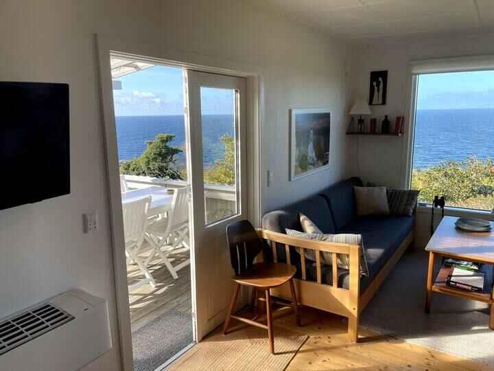 Charmerende sommerhus i Vang med panoramaudsigt over Østersøen og moderne anneks.