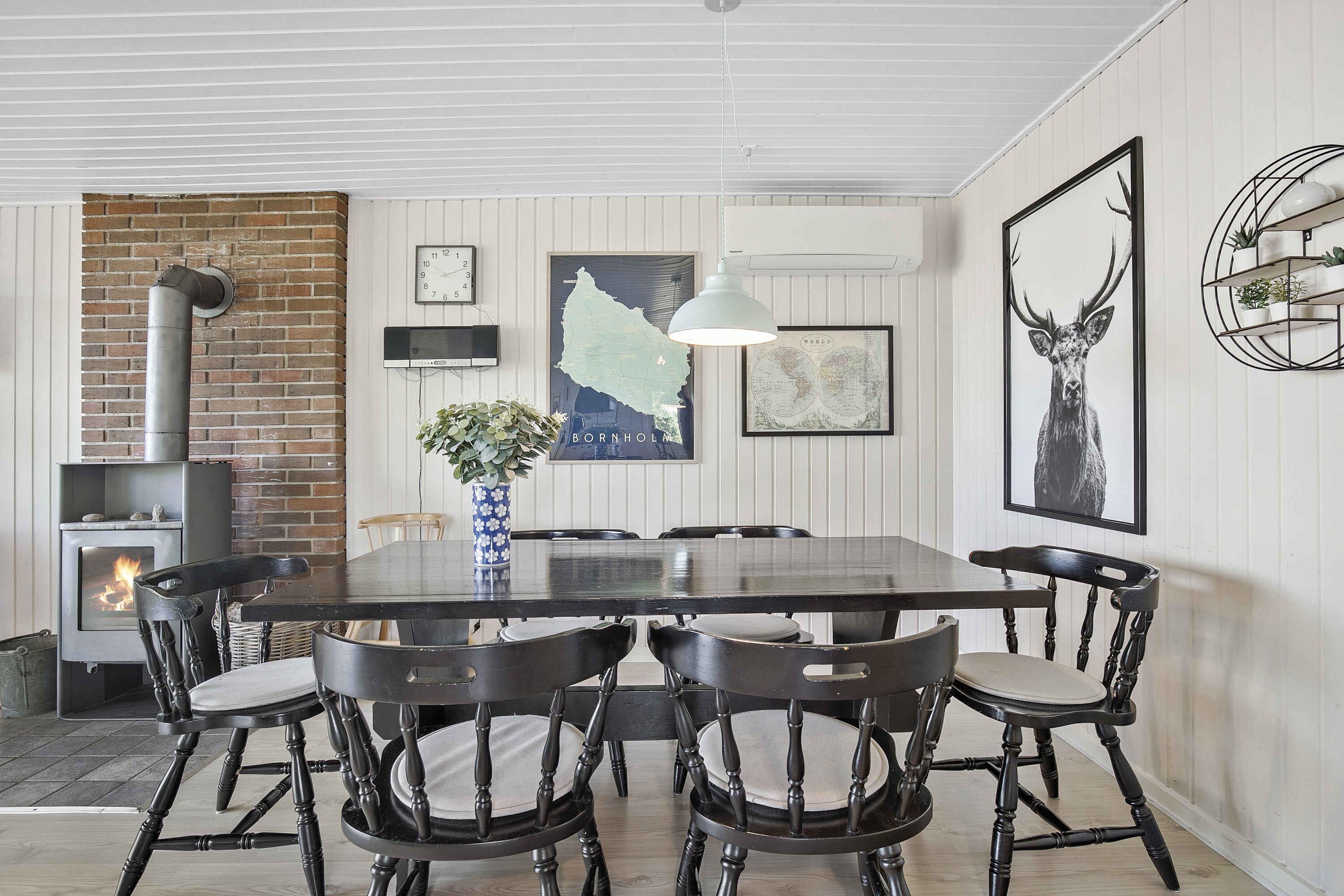 Nyd solnedgangen på terrassen med et godt glas vin, snup en dukkert i poolen eller tag på vandretur til Hammershus. Lad sommerhuset ‘Solsorten’ danne ramme om skønne feriestunder på smukke Bornholm! INDENDØRS Huset har en stor lys stue med udsigt til Østersøen, der indbyder til hygge med en god bog eller et spil foran brændeovnen. Stuens TV har Chrome Cast samt en række skandinaviske og tyske kanaler. De tre soveværelser er hjemligt indrettet og har gulvtæppe, mørklægningsgardiner og skabe til opbevaring. Køkkenet er veludstyret med bl.a. opvaskemaskine, mikroovn og kaffemaskine. Husets badeværelse har toilet, bruseniche og gulvvarme. Til familier med mindre børn findes der i huset 1 højstol, 1 weekendseng samt 1 sammenklappeligt puslebord. Foruden brændeovn er der varmepumpe i huset samt elradiatorer på værelserne, så huset også kan opvarmes i de kolde måneder. Der er WIFI i sommerhuset. UDENDØRS Sommerhuset har en overdækket vestvendt terrasse med havudsigt og en østvendt terrasse med morgensol. På den store tilhørende plæne er der god plads til, at børn og voksne kan hygge sig med leg, bål og boldspil. Bilen kan parkeres ved sommerhuset. ‘Solsorten’ ligger på den rolige sommerhusvej Fuglebakken, hvor der fra medio juni til medio september er adgang til en fælles, solopvarmet pool, en sauna og en mindre legeplads. I sommerhalvåret er der desuden adgang til et fælles møntvaskeri. BELIGGENHED Huset har hjemme i det lille, charmerende fiskerleje Vang. Stedet er kendt for det storslåede stenbrud Ringebakkebruddet. Foruden stenbruddet er den gamle havn i Vang et besøg værd. Her kan man i sommerhalvåret nyde en kop kaffe eller en is på en af de to lokale caféer. Vang huser desuden gourmetrestauranten Le Port, hvor I kan spise en lækker frokost eller middag med en af Danmarks smukkeste udsigter. Området er oplagt til billedskønne vandre- eller cykelture langs kysten på de mange afmærkede cykelstier og vandreruter. Bl.a. kan man vandre til Nordeuropas største borgruin, Hammershus, på ca. 1 time.