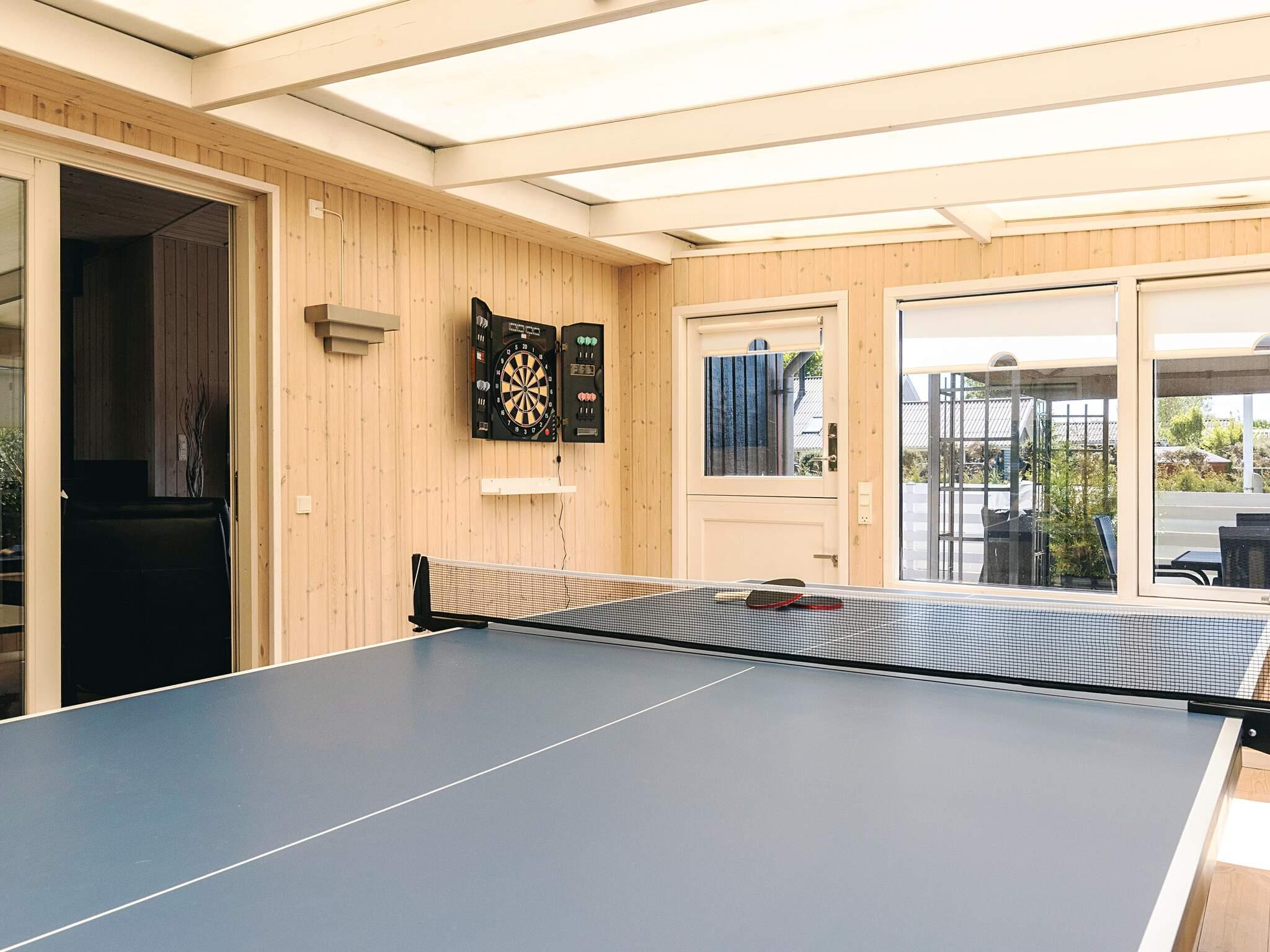 Badeværelset har bruser, håndvask og toilet, mens elvarme og en luft-til-luft-varmepumpe sikrer komfort året rundt. En indhegnet have med udendørs møbler og en kulgrill er perfekt til afslappende eftermiddage. I den lyse udestue kan gæsterne spille bordtennis eller dart. Huset har også danske og tyske tv-kanaler og er røgfrit overalt.