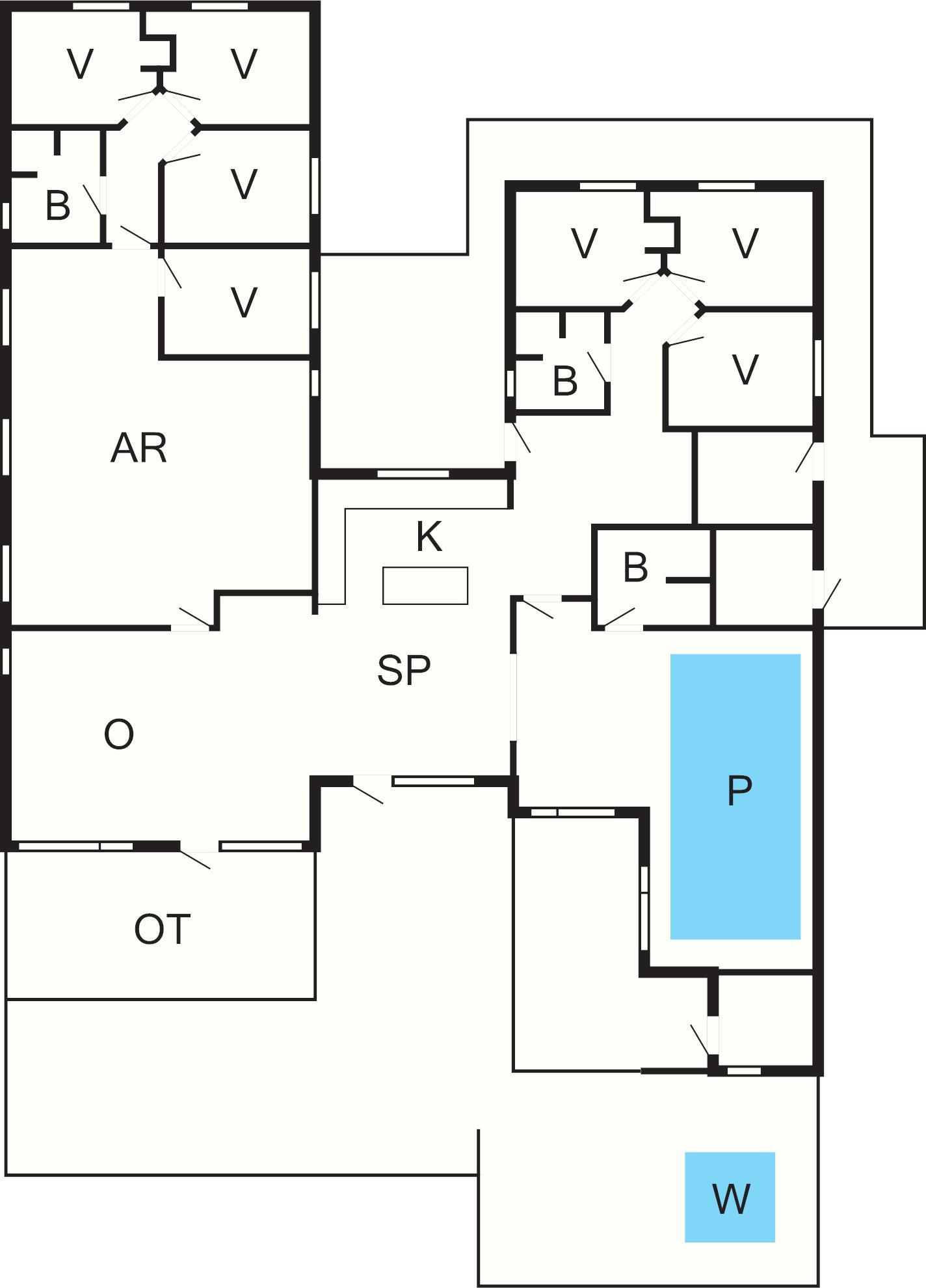 6 Soveværelser: (1DS)+(1DS)+(2S)+(2S)+(2S)+(2S)