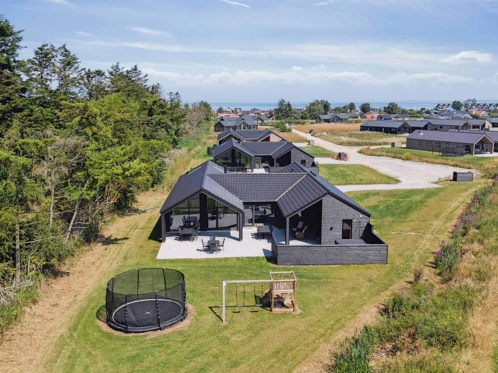Udendørsområdet er lige så imponerende som indendørsområdet. Du kan grille lækre måltider, slappe af i havemøblerne eller loungesættet, og se børnene more sig på legetårnet, gynge og rutsje. Der er endda en trampolin i jorden til de eventyrlystne.