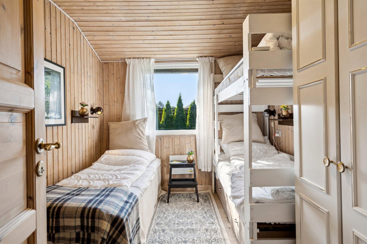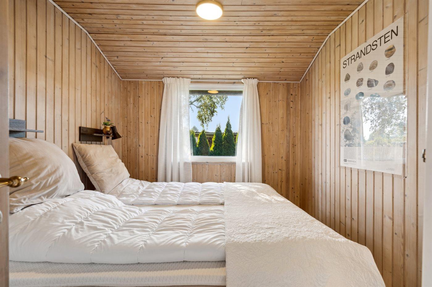 Der er i alt 2 soveværelser. Sovepladserne fordeler sig på: 2 sovepladser i dobbeltseng. 1 soveplads i enkeltseng. 2 sovepladser i køjeseng. 2 sovepladser i sovesofa (dobbelt). 2 af disse sovepladser befinder sig i stuen.