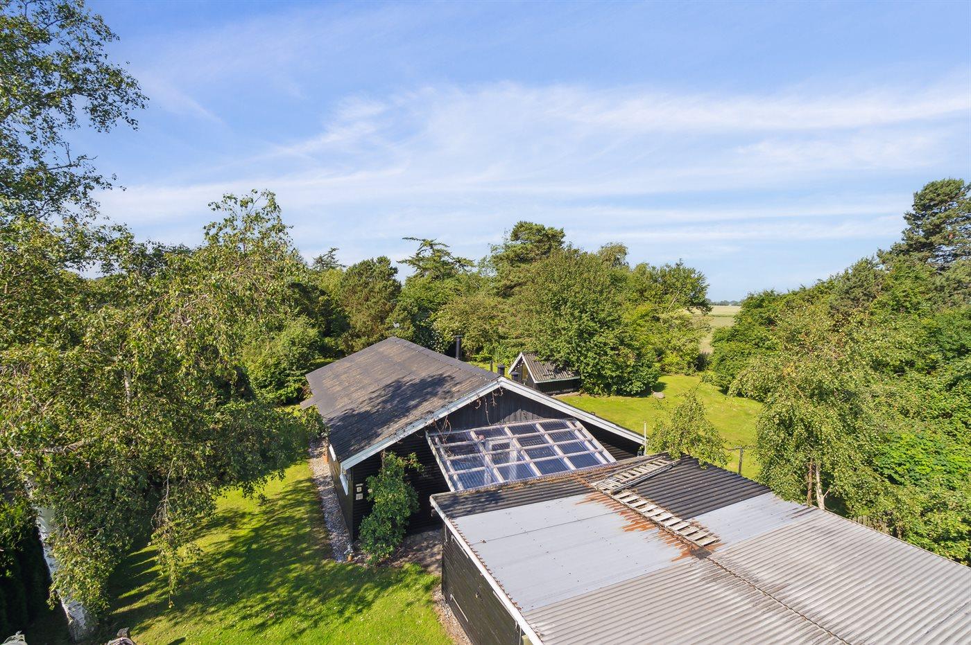 Huset ligger tilbagetrukket fra vejen og har derfor en meget ugenert beliggenhed, og fra bagerst i haven er der udsigt over åbne marker. På den store grund er der god plads til udendørs aktiviteter.
