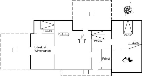 Der findes 7 sovepladser i alt, men huset må kun bookes til maks. 6 voksne.