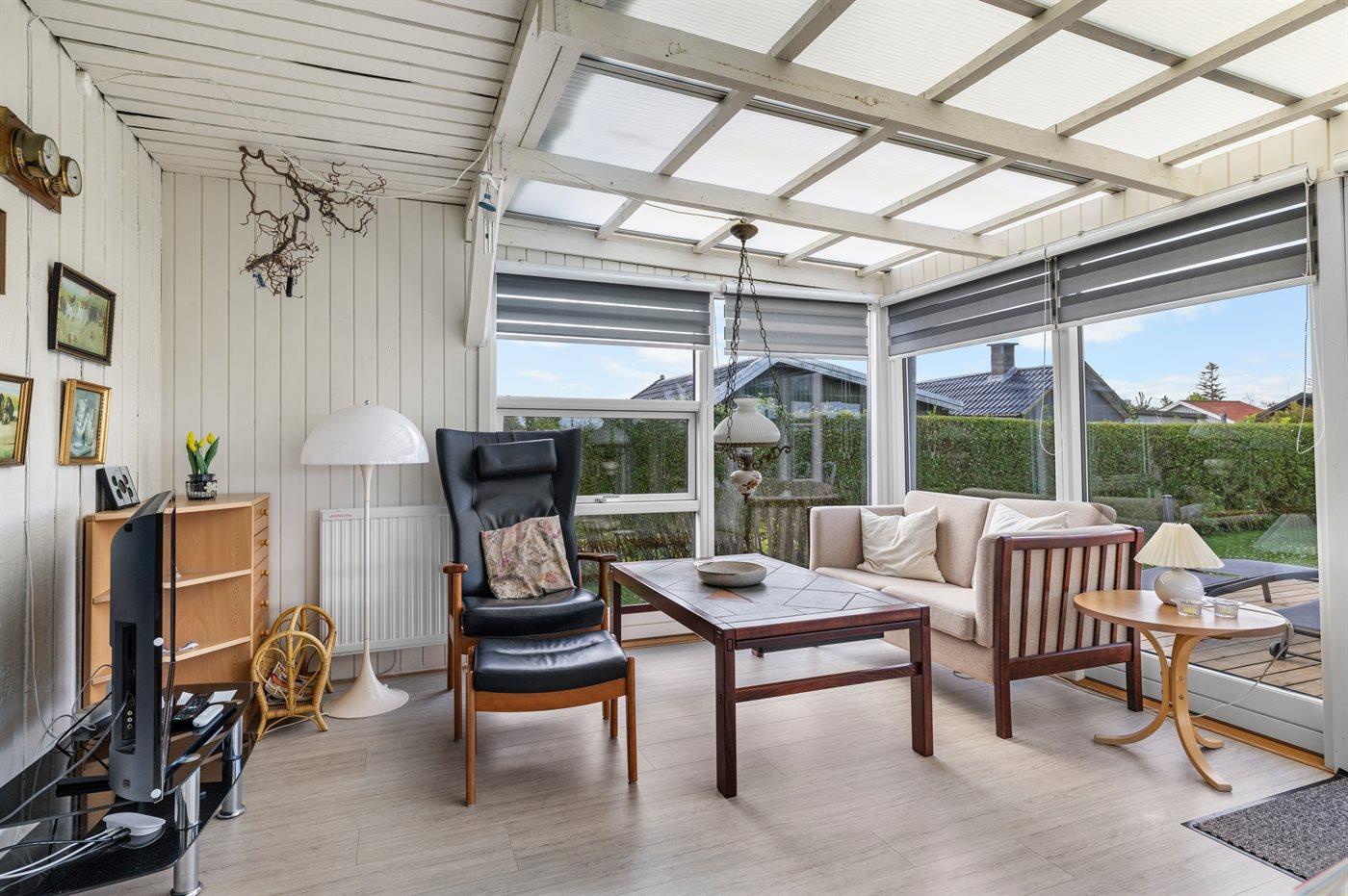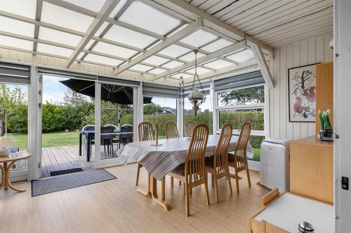 Der findes en stor udestue i boligkvalitet, som ligger i forlængelse af stuen og forbinder stue, udestue og det tidligere anneks.