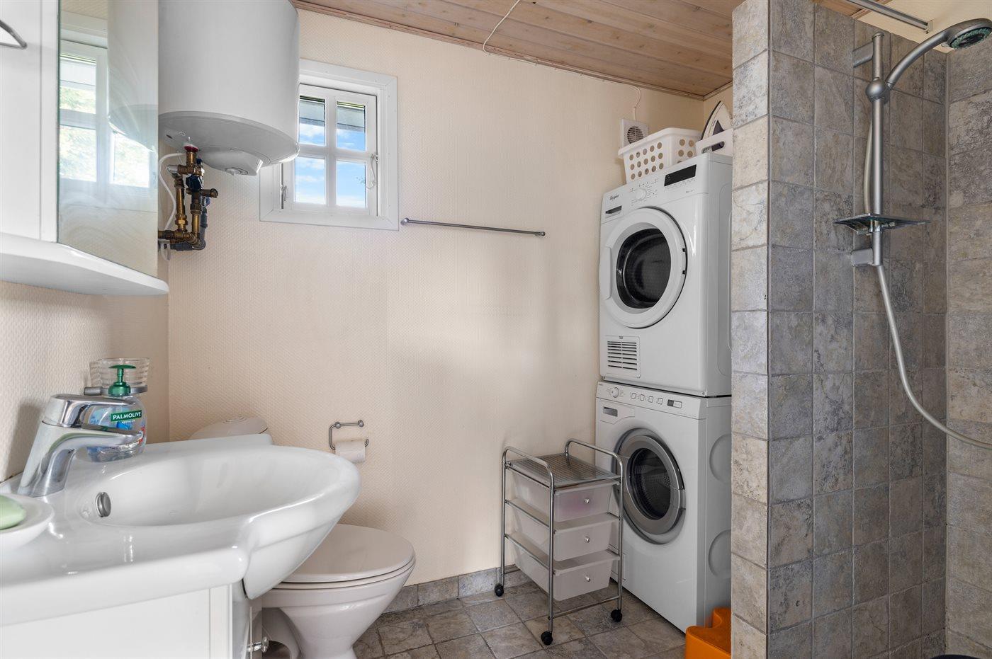 Der er 2 badeværelser med bruseniche og 2 toiletter. Der er gulvvarme på 1 badeværelse.