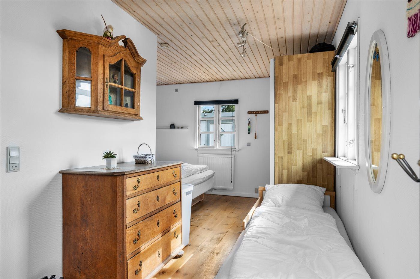 I det tidligere anneks er der både en dobbeltseng og en juniorseng, og et separat badeværelse.