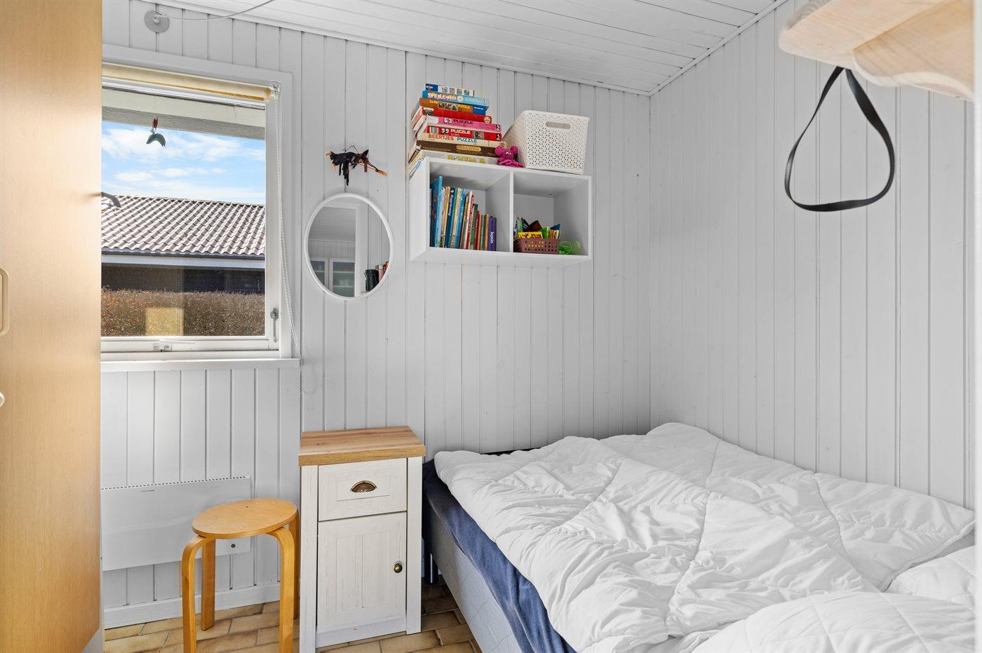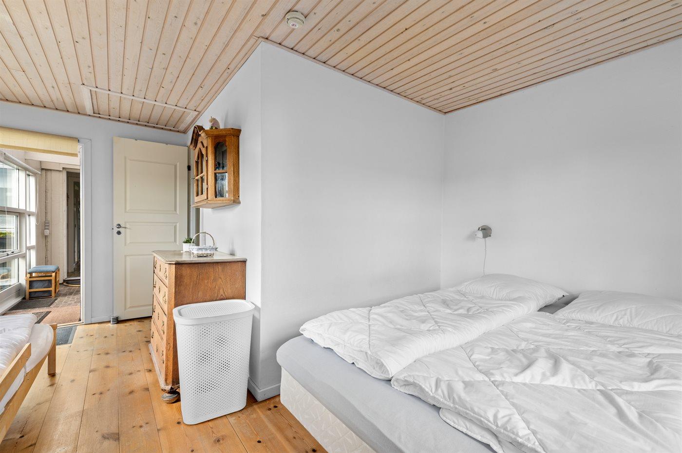 Der er i alt 3 soveværelser. Sovepladserne fordeler sig på: 4 sovepladser i dobbeltsenge. 2 sovepladser i enkeltsenge. Derudover er der 1 stk. barneseng.