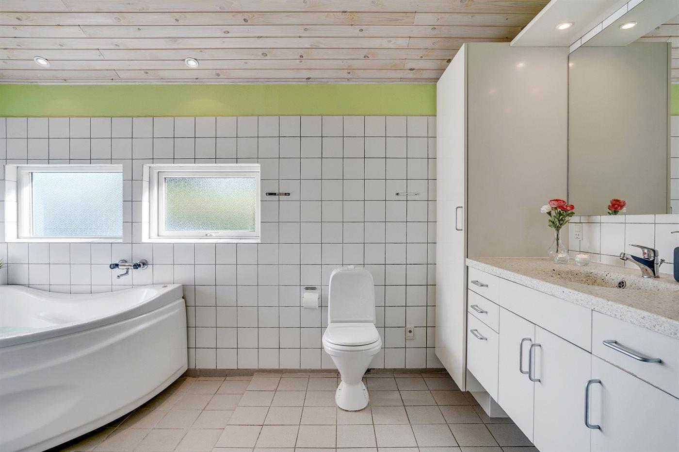 Der er 2 badeværelser med bruseniche og 2 toiletter I saunaen er der mulighed for afslapning.
