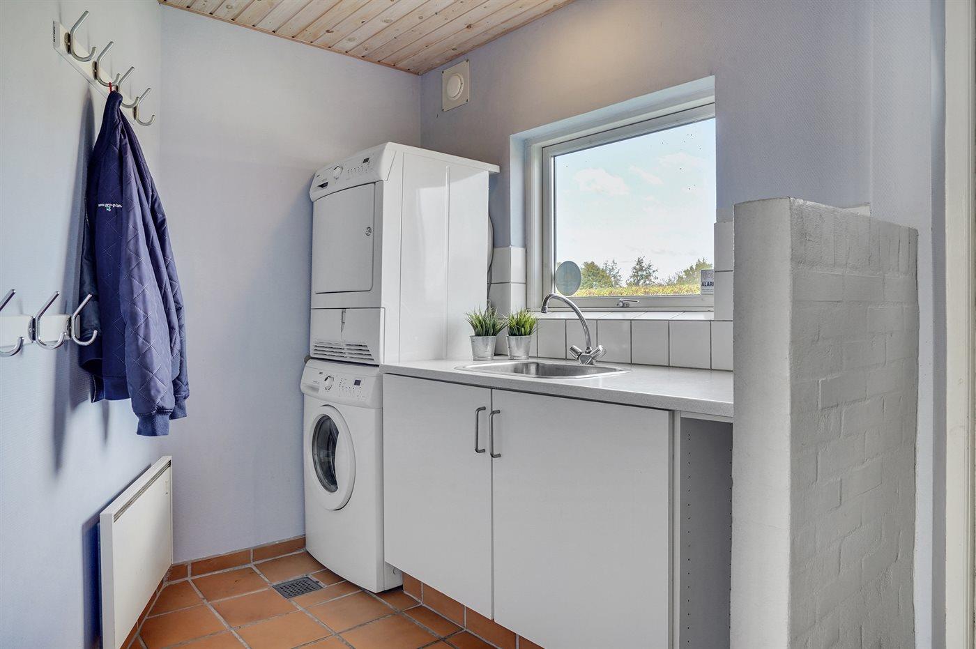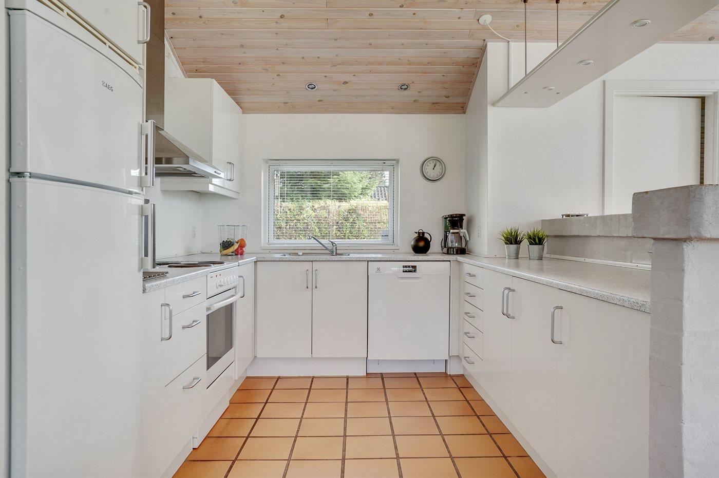 Køkkenet er udstyret med 1 køleskab. Der er 4 elkogeplader, bageovn, mikrobølgeovn samt opvaskemaskine.