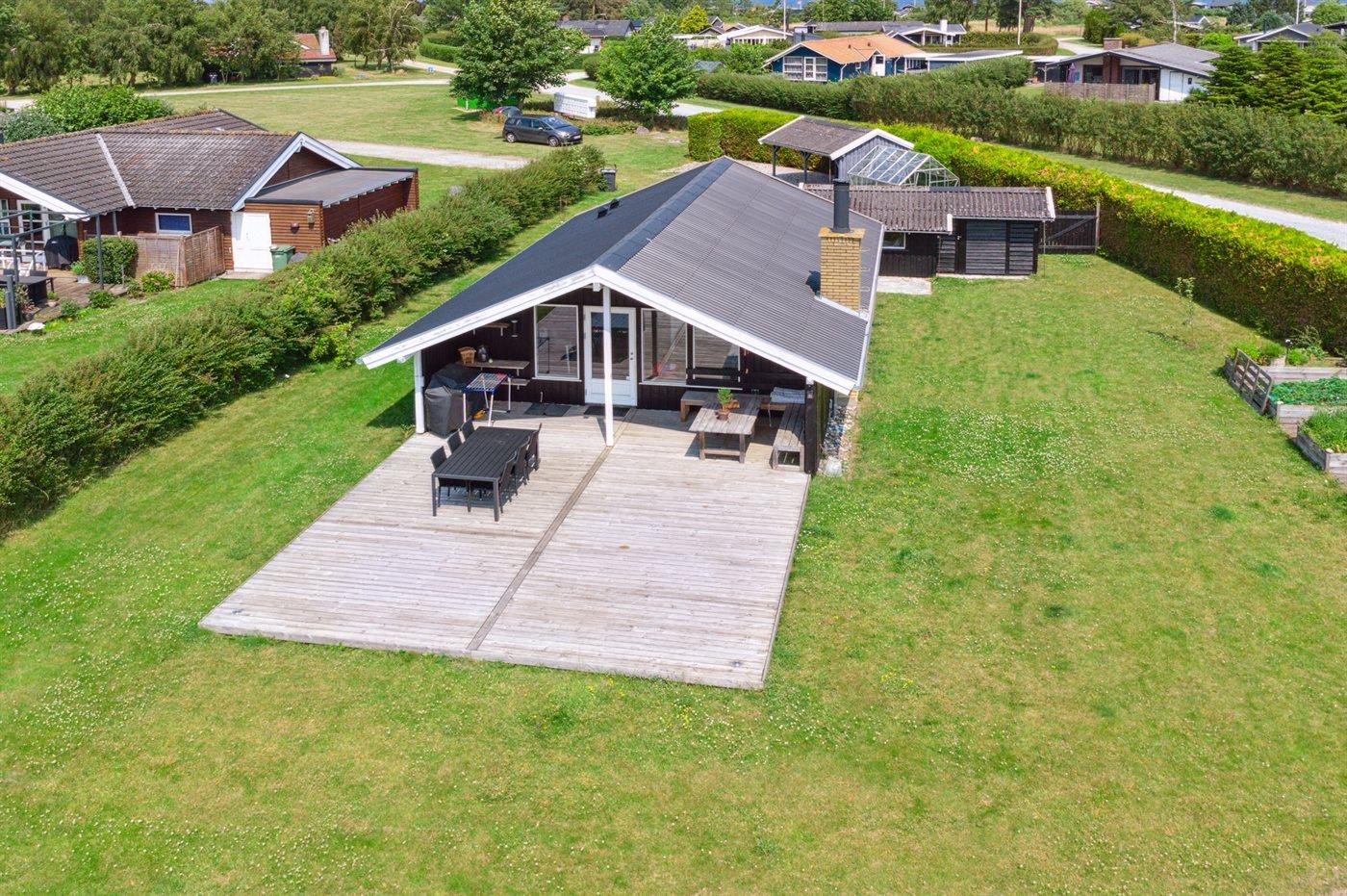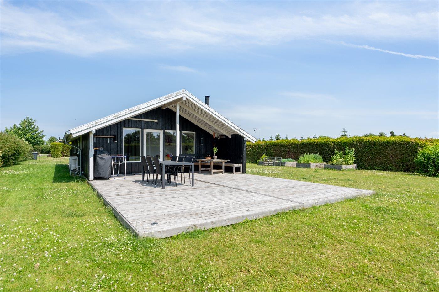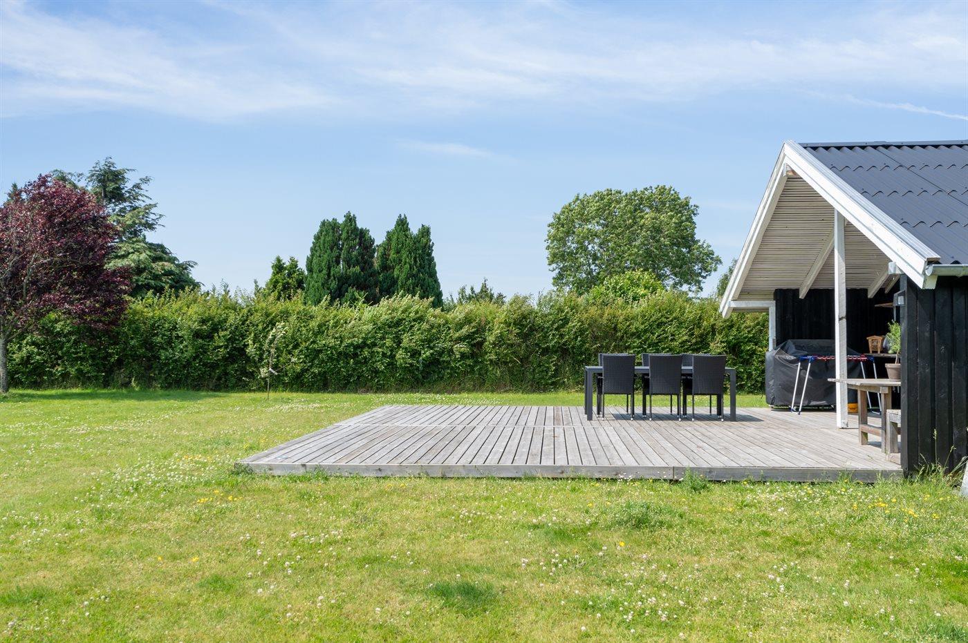 Ferieboligen er beliggende på en 1306 m² stor havegrund. Der er 400 m til havet. Nærmeste forretning er beliggende i en afstand af 6200 m. Til ferieboligen hører åbent terrasseareal. Desuden er der overdækket terrasse. Gynge. Trampolin. Bålsted. Grill til rådighed. Parkering ved ferieboligen.