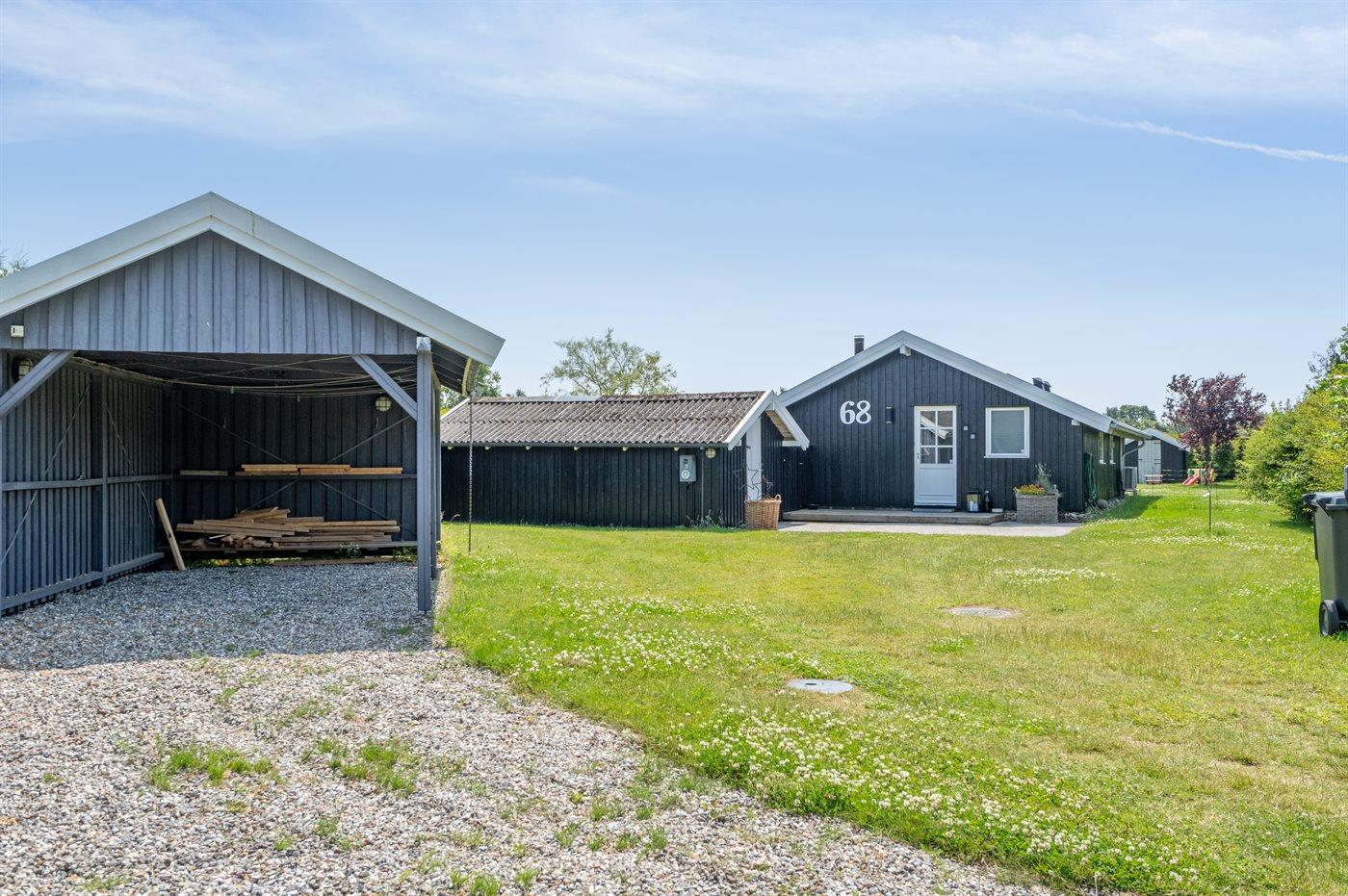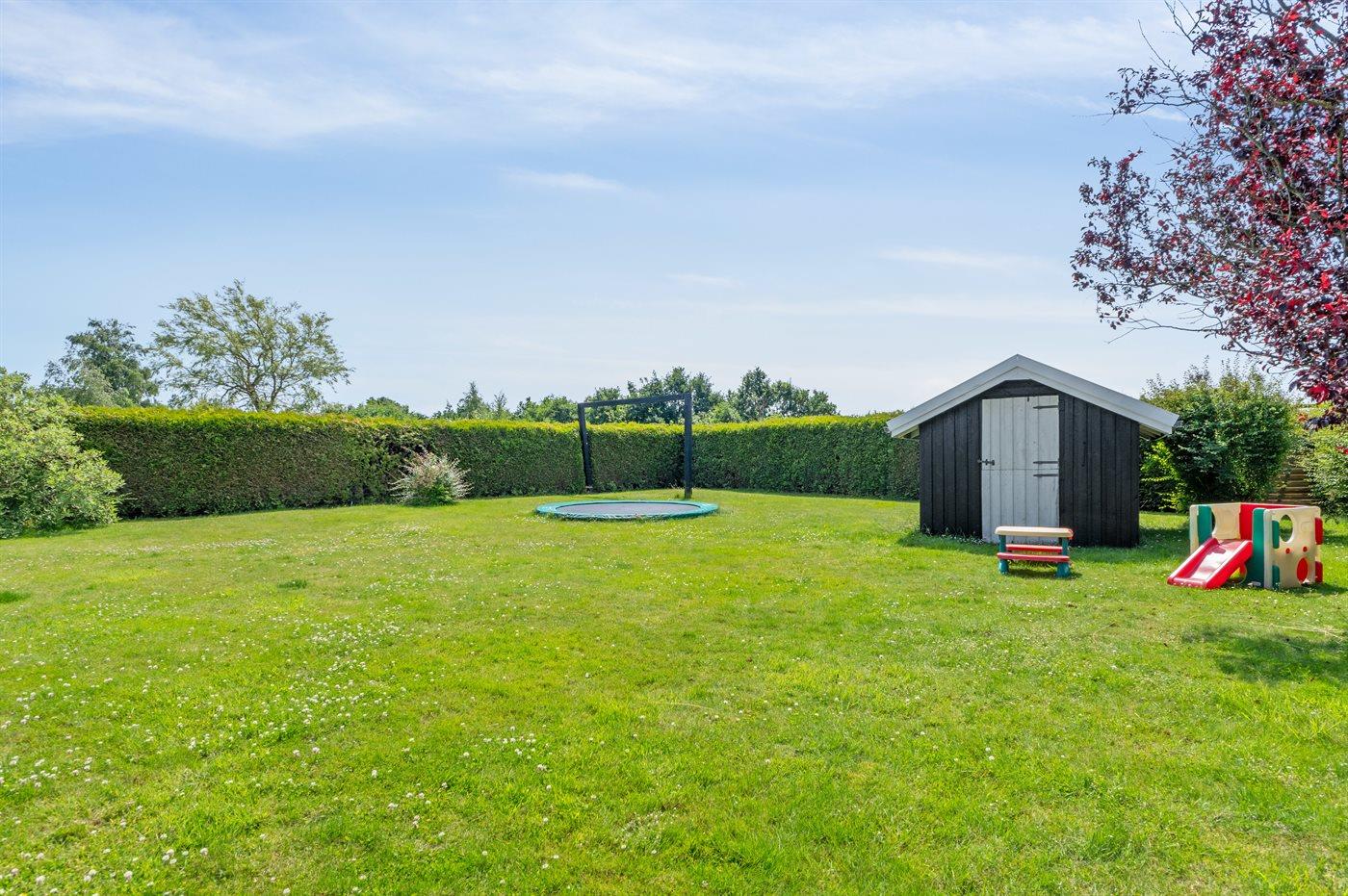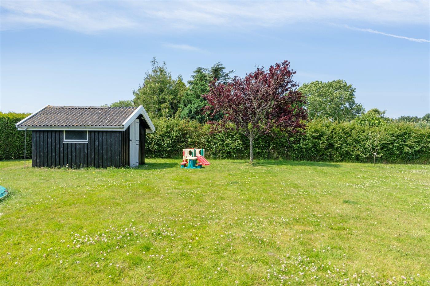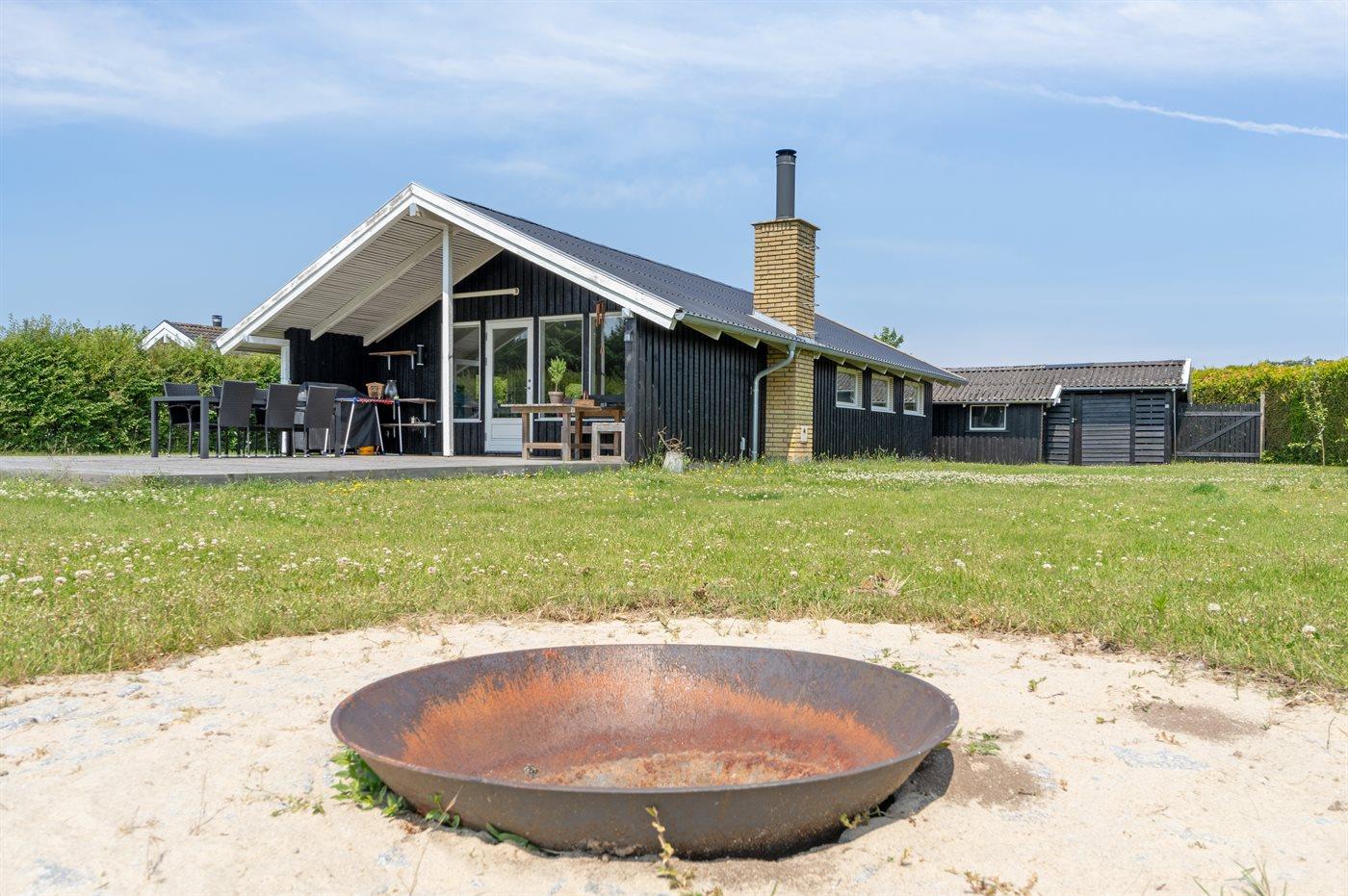 Ferieboligen er beliggende på en 1306 m² stor havegrund. Der er 400 m til havet. Nærmeste forretning er beliggende i en afstand af 6200 m. Til ferieboligen hører åbent terrasseareal. Desuden er der overdækket terrasse. Gynge. Trampolin. Bålsted. Grill til rådighed. Parkering ved ferieboligen.
