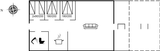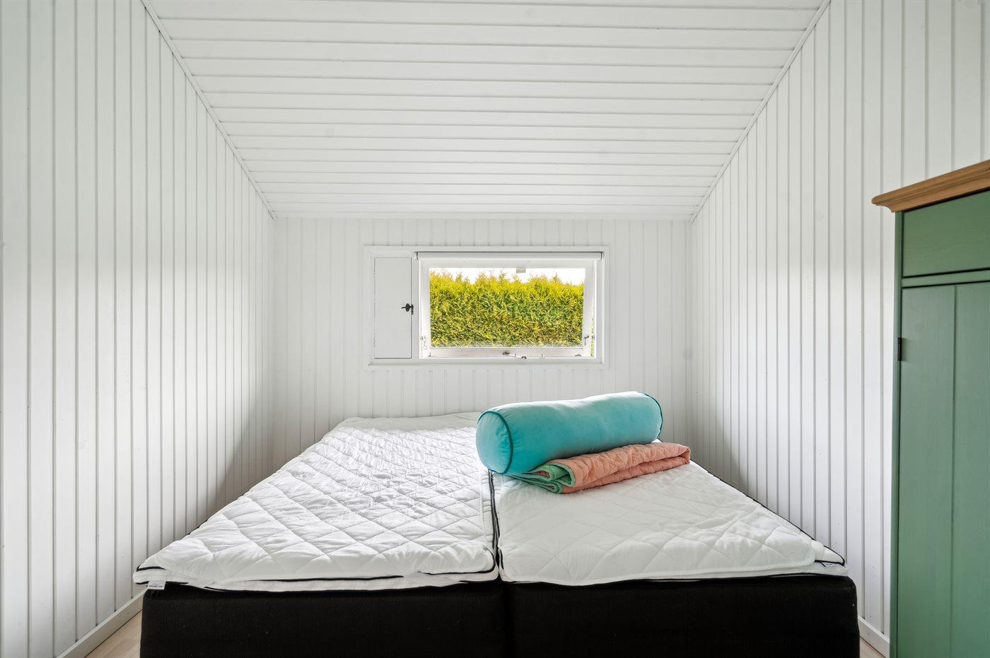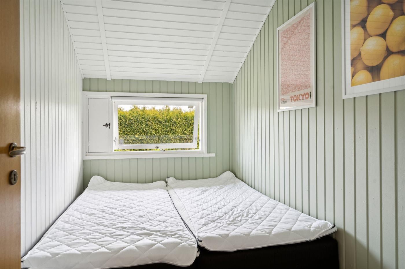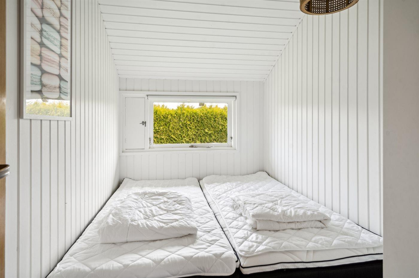 Der er i alt 3 soveværelser. Sovepladserne fordeler sig på: 4 sovepladser i dobbeltsenge. 2 sovepladser i enkeltsenge. Derudover er der 1 stk. barneseng.