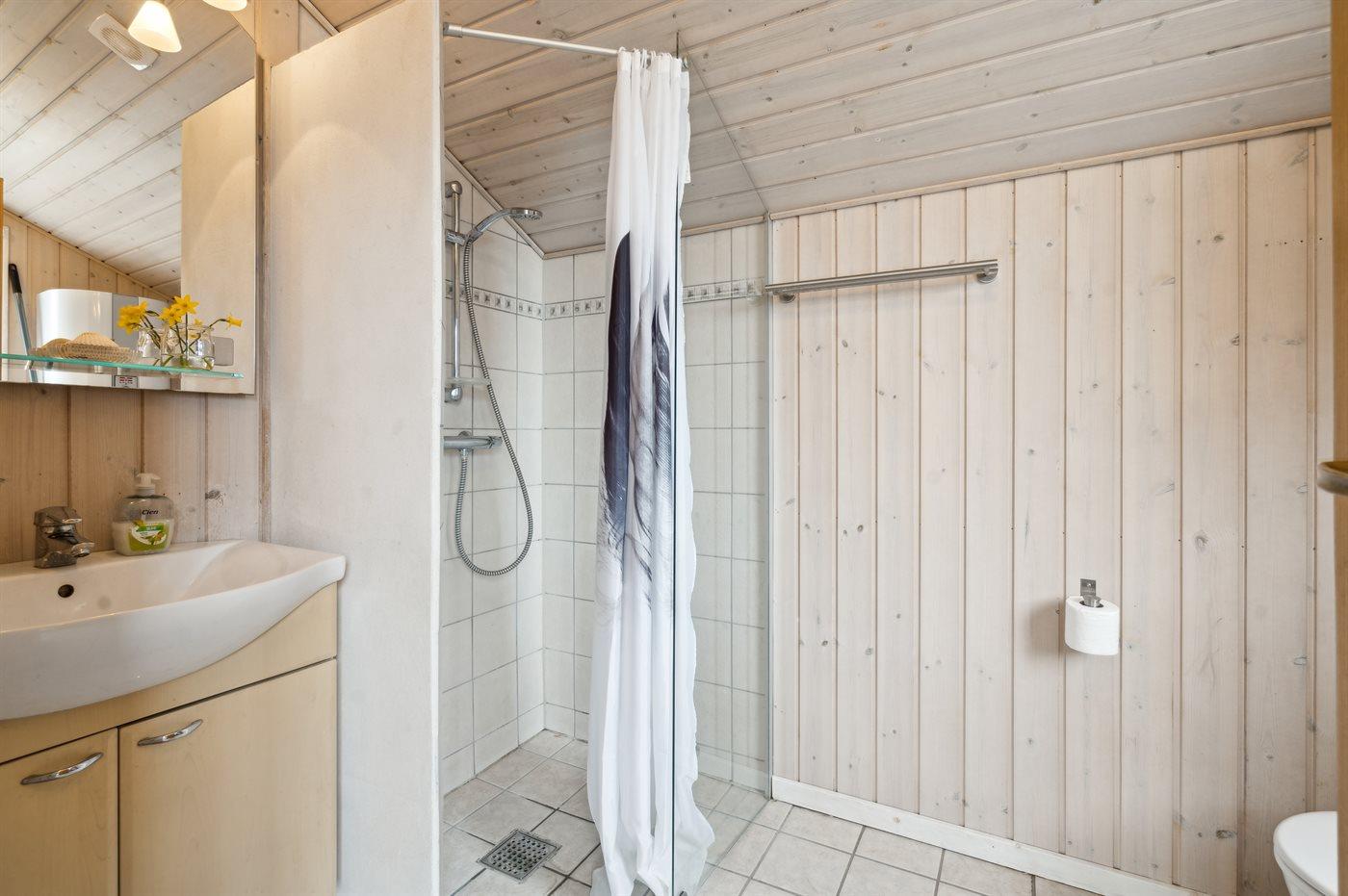 Der er 1 badeværelse med bruseniche og 1 toilet.. Der er gulvvarme på 1 badeværelse.