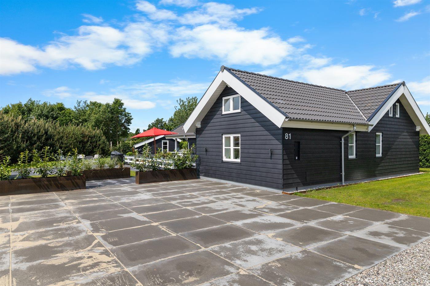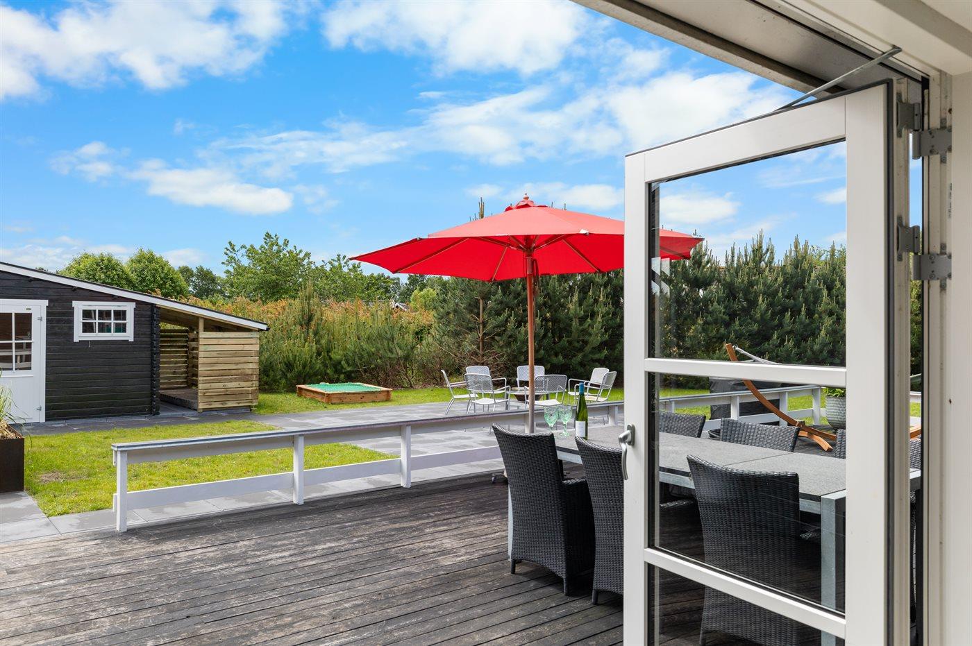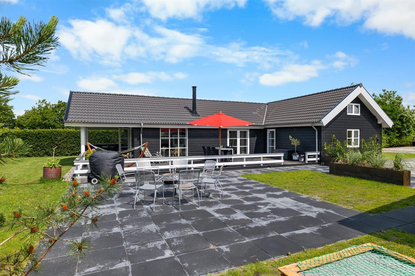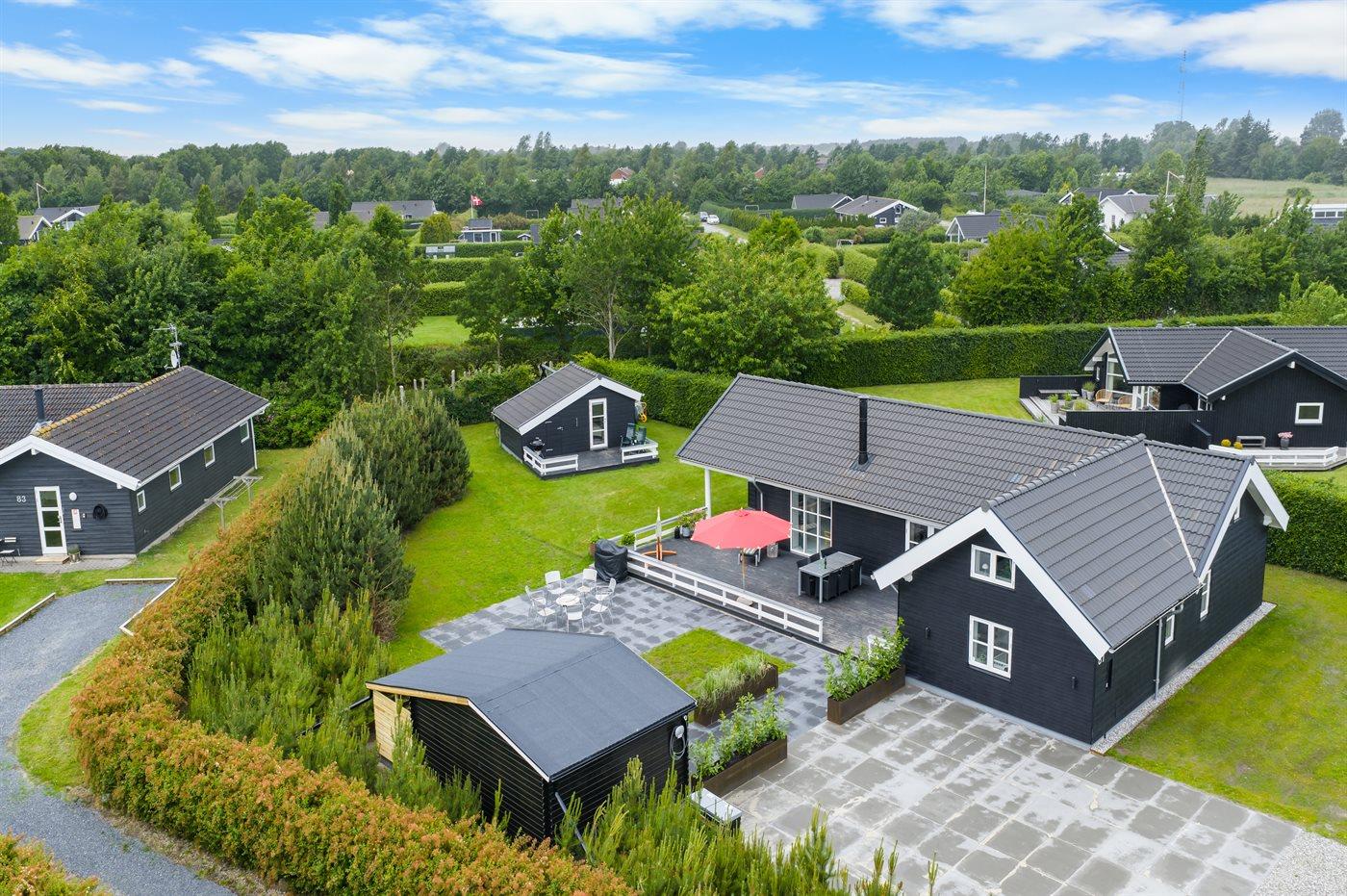 Ferieboligen er beliggende på en 1173 m² stor havegrund. Der er 320 m til havet. Nærmeste forretning er beliggende i en afstand af 4500 m. Til ferieboligen hører åbent terrasseareal. Desuden er der overdækket terrasse. Gynge. Sandkasse. Bålsted. Grill til rådighed. Der er installeret stik til opladning af elbil. Parkering ved ferieboligen.